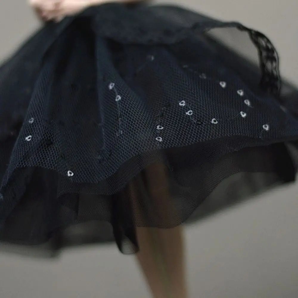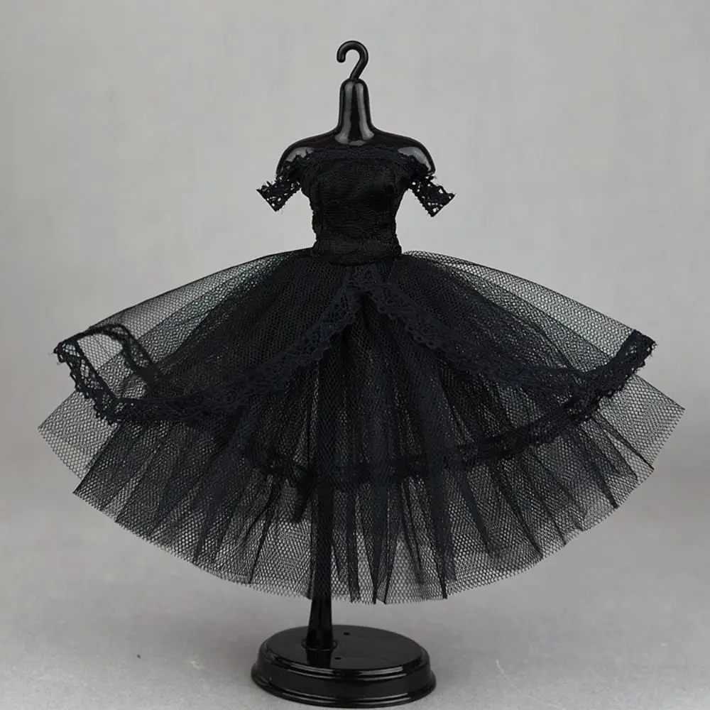 Dress Up Doll Dress Evening Party Prom Dress Lace Dolls Clothes Mini Black Tutu Dotted Doll Princess Dress Doll Accessories