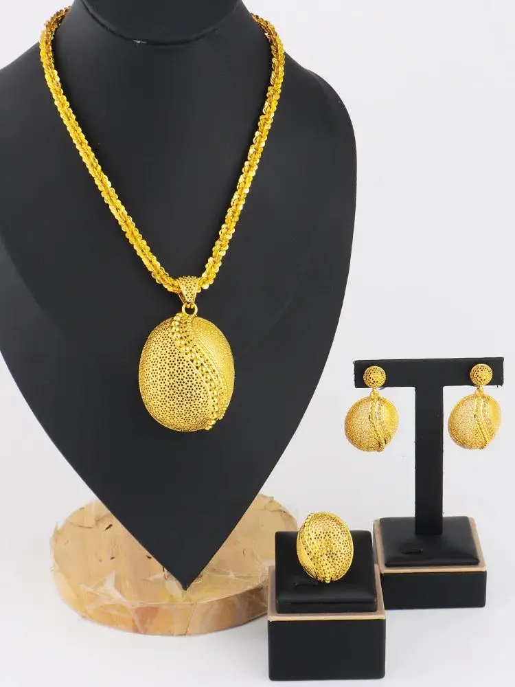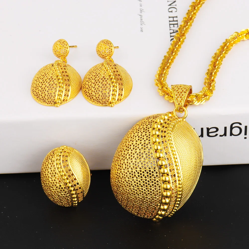 Dubai Arab Bridal 2Pcs Jewelry Set 24K Gold Plated Hollow Vase Shape Earrings Necklace Wedding Jewelery Accessories Wholesale