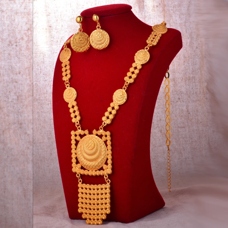 Dubai Fashion Bridal Jewelry Set Indian Wedding 24k Gold Plated Necklace&Earrings Set for Arab Party Gifts