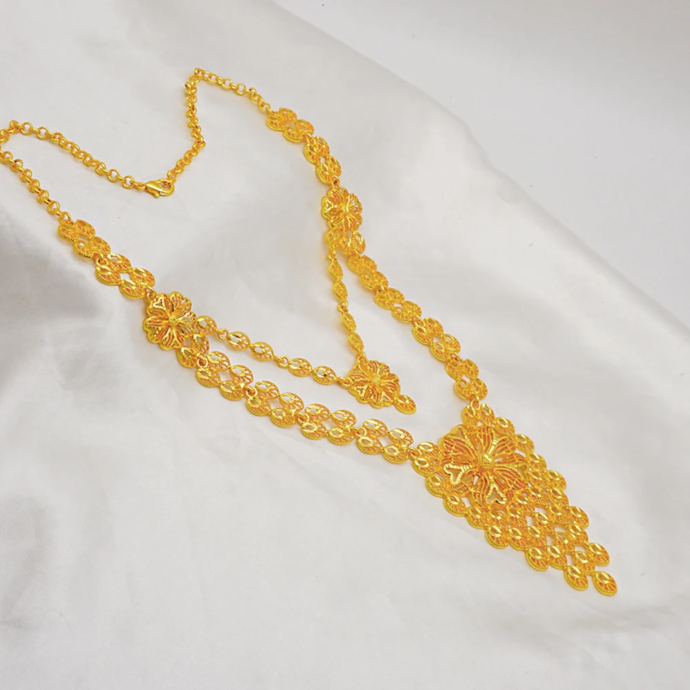 Dubai Women's Jewelry Sets Fashionable Gold Plated Gold Earrings And Necklace Set for Women Girls Wedding Engagement Anniversa