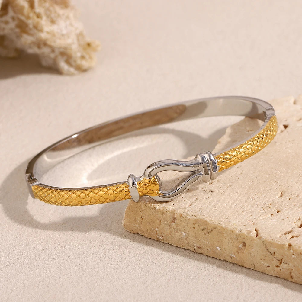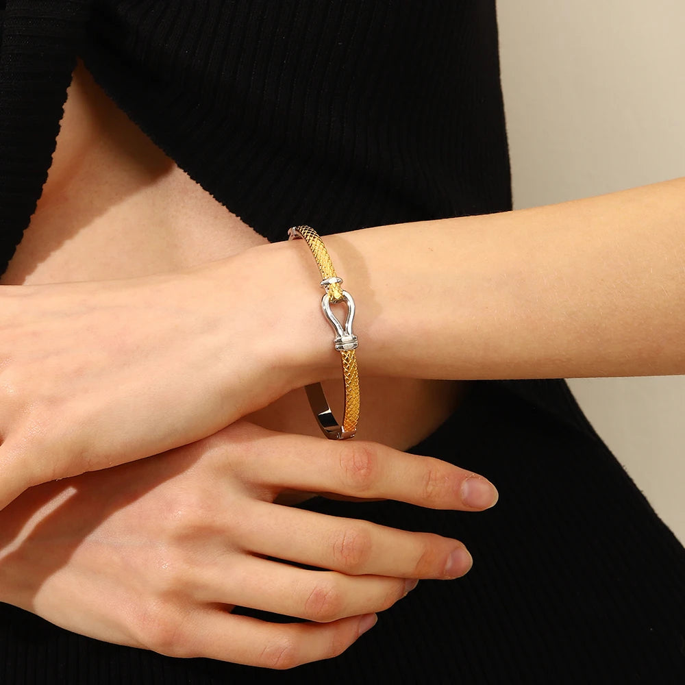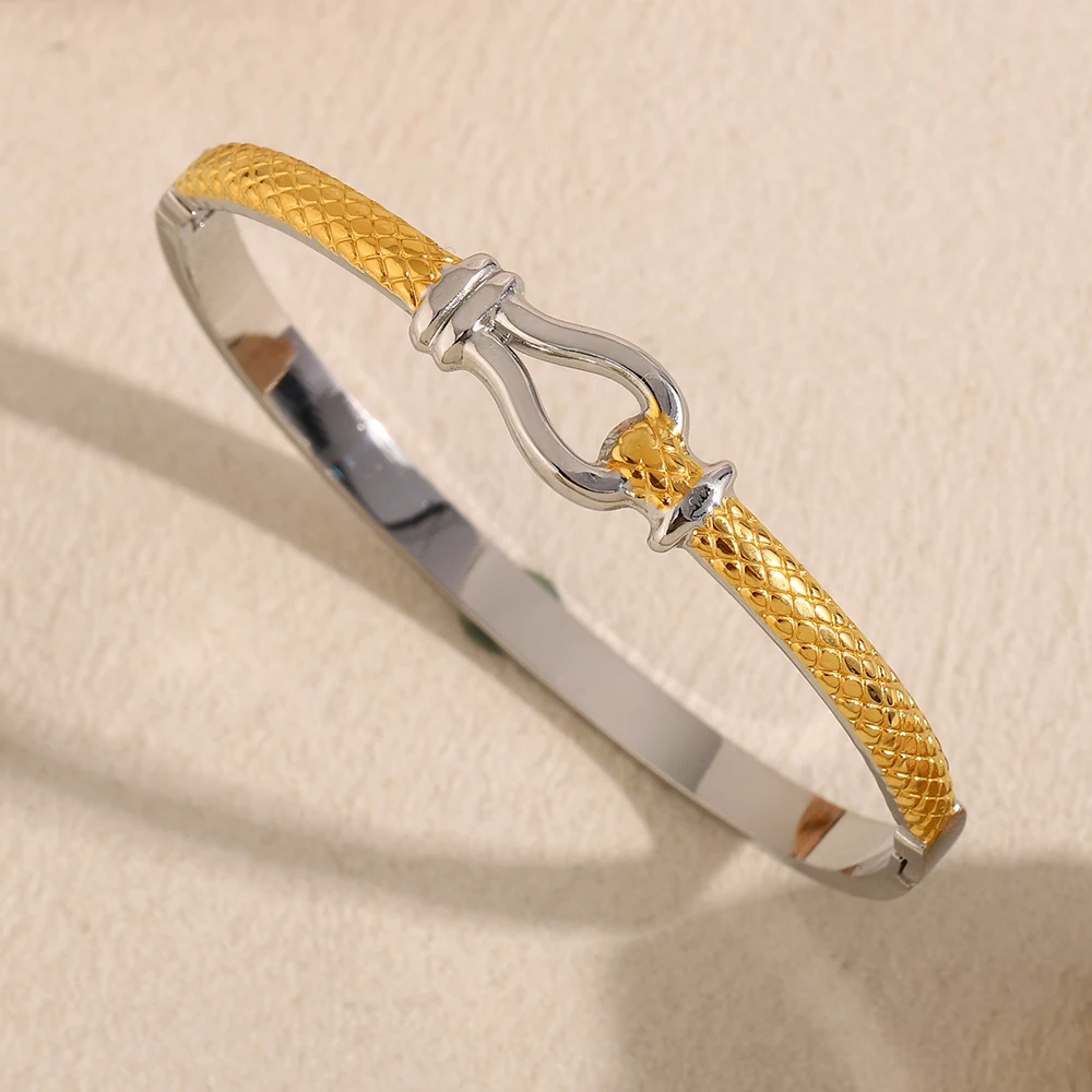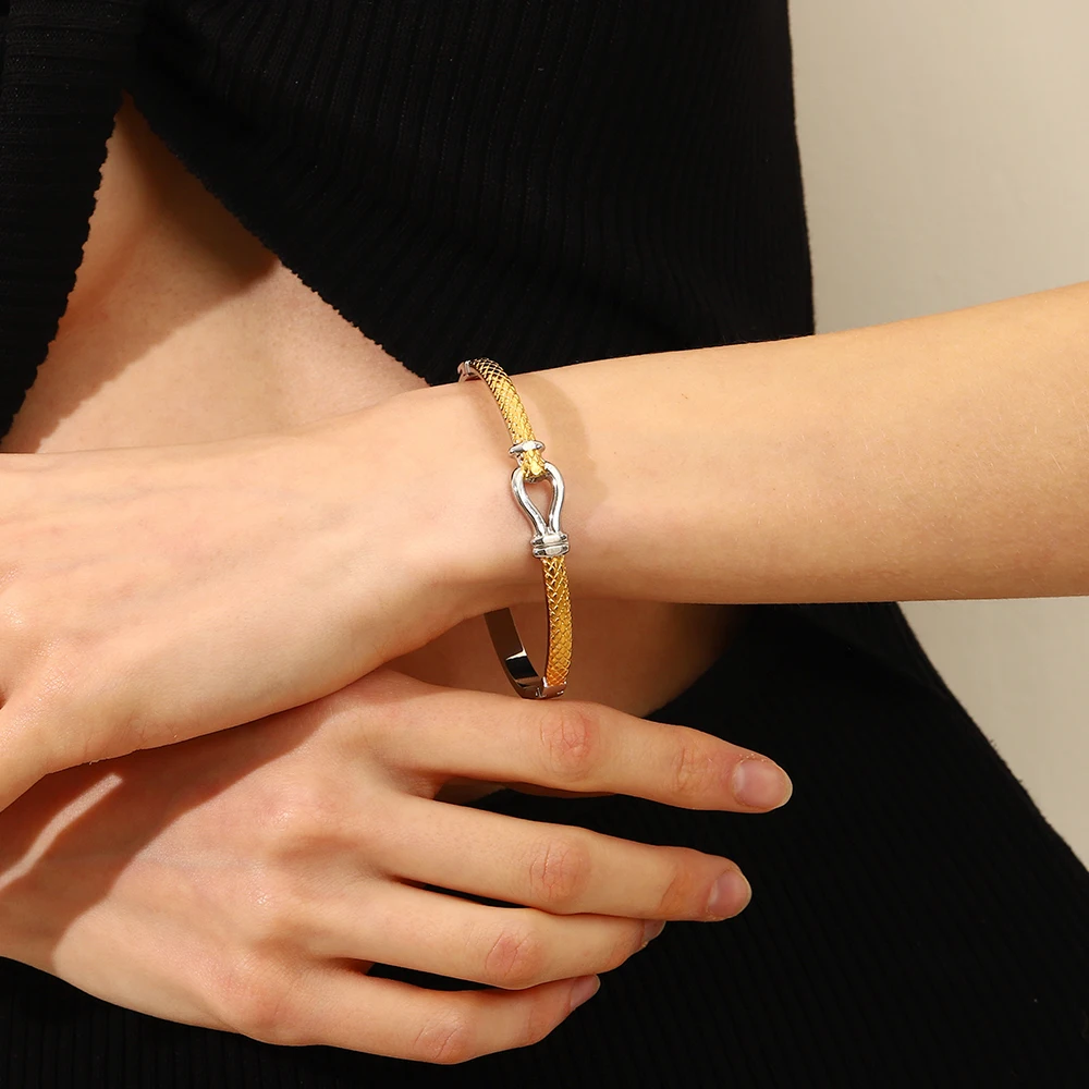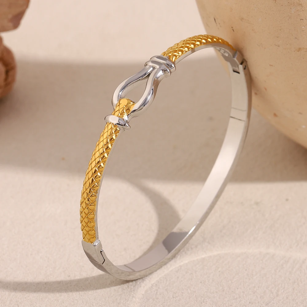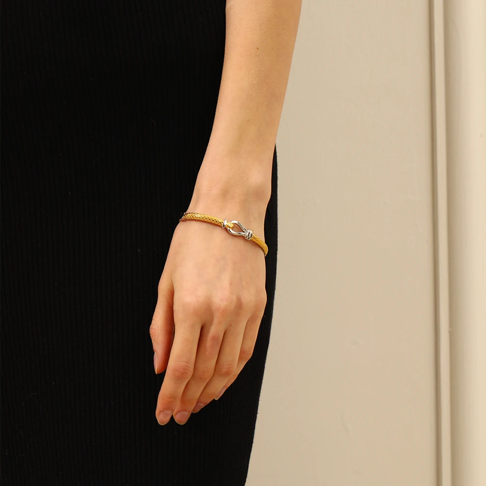 E.B.belle New Design Double Color Lines knot Bangles 18K Gold Plated Stainless Steel Waterproof Fashion Women Statement Jewelry