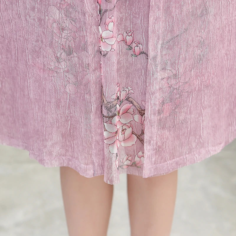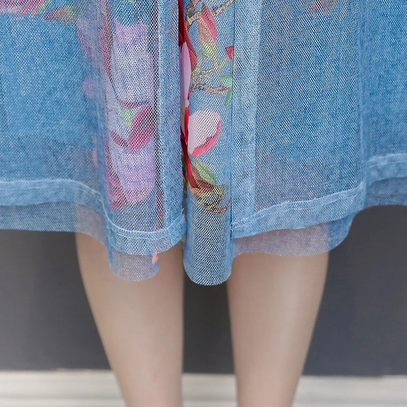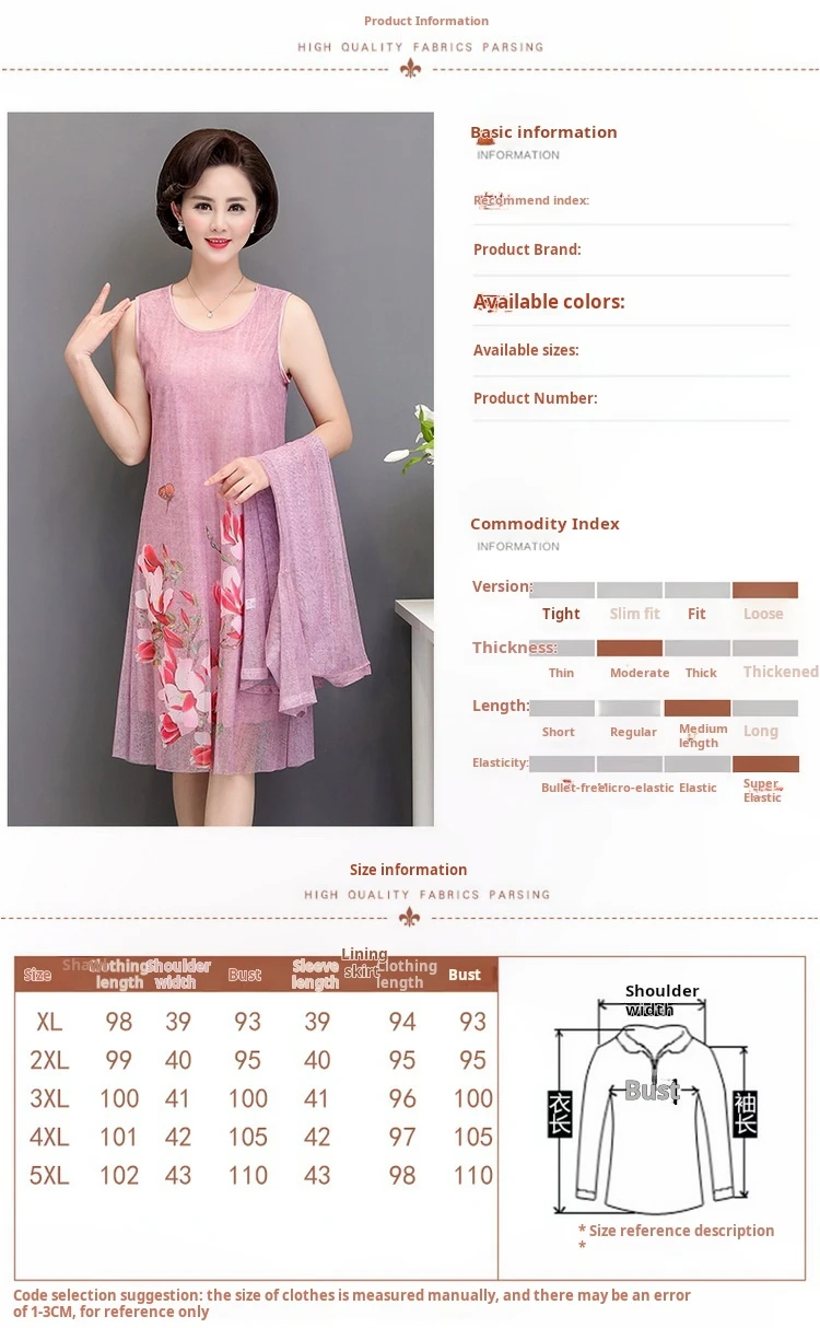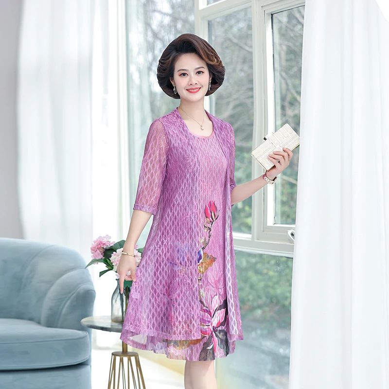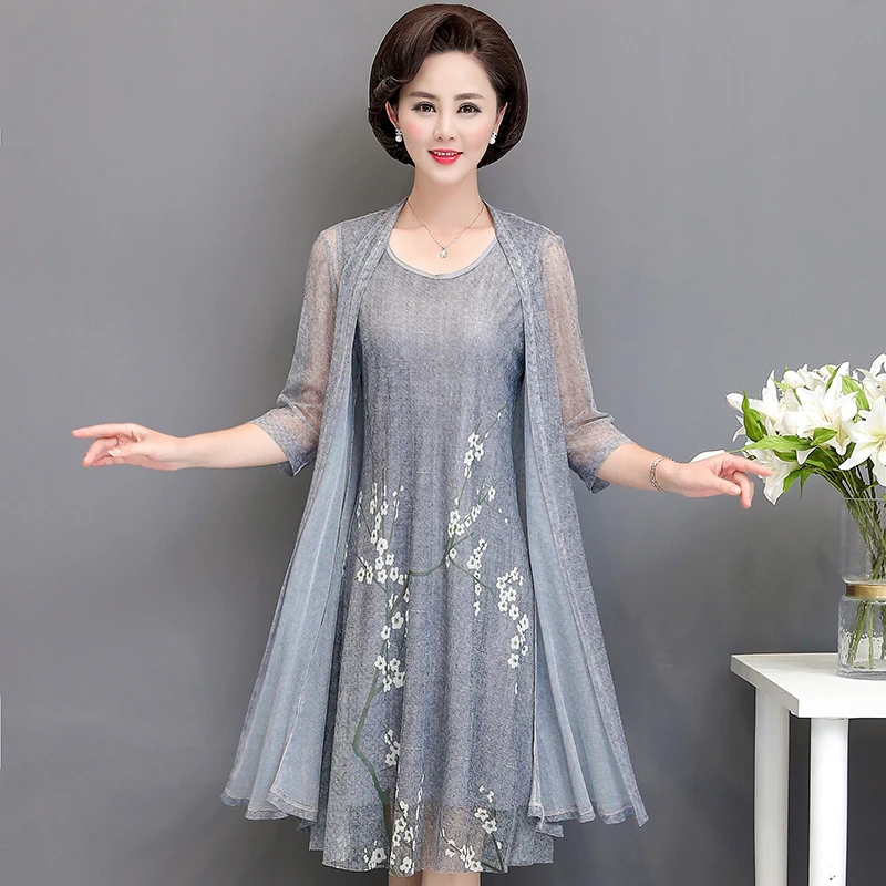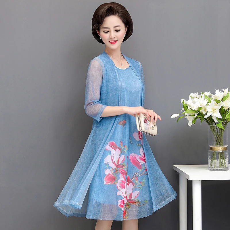 Elegant Dresses Women NEW Summer Casual Retro Temperament printing two Piece Set Dress Mother Dress plus Size
