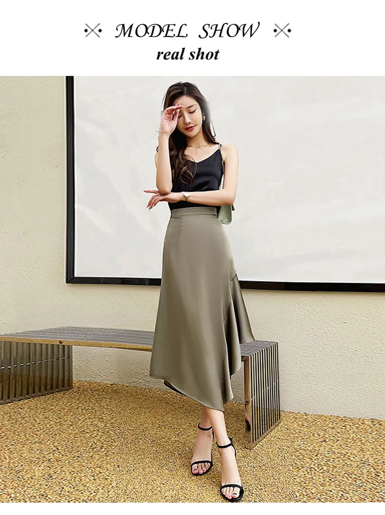 style: fashion women skirts 2025,bright and soft smooth satin skirts,female long skirts,high waist irregular skirts women,ladies casual A-Line skirts,elegant office skirts,women mermaid skirts,Leisure beach skirt women,drape and comfortable women skirts