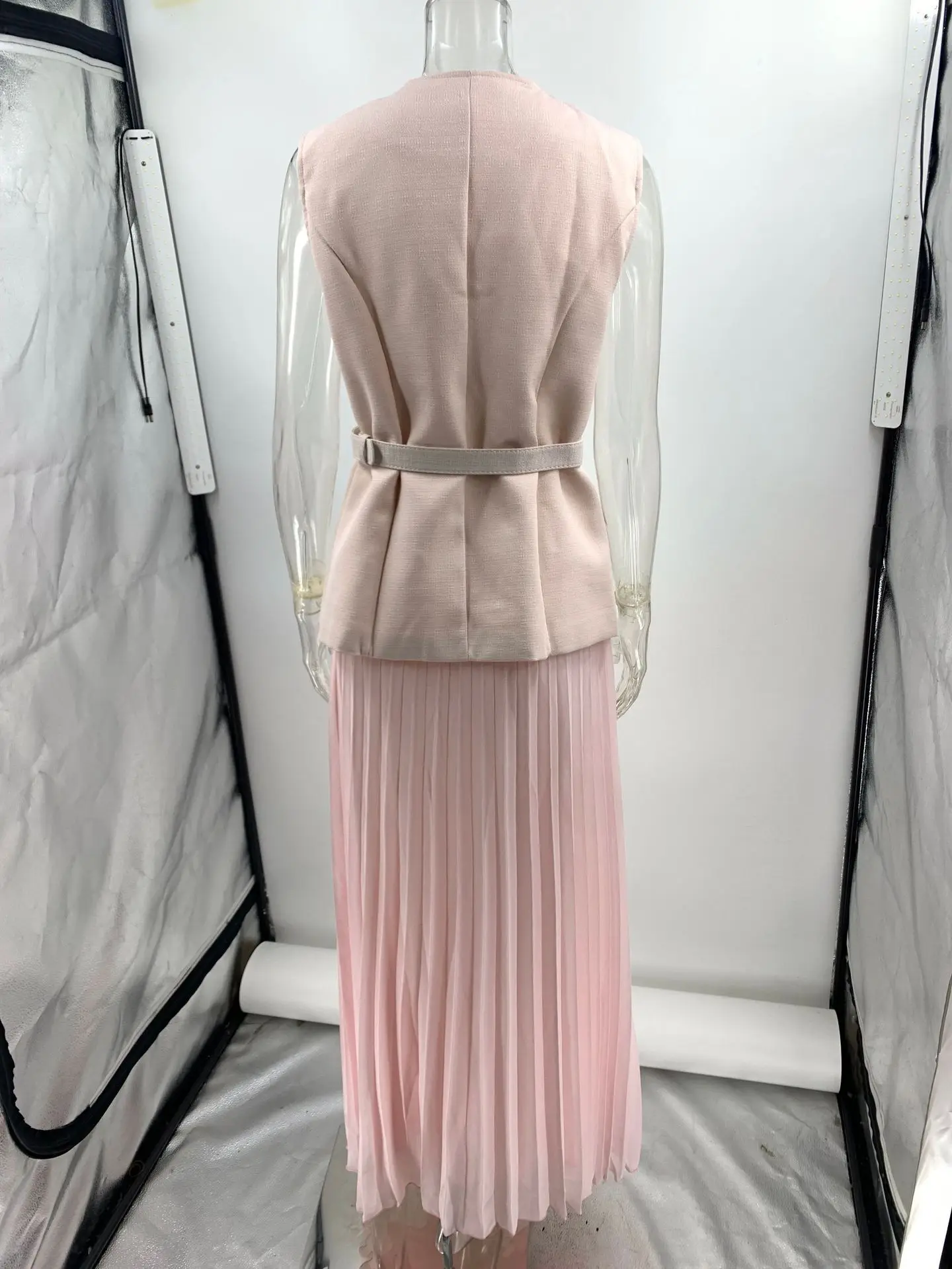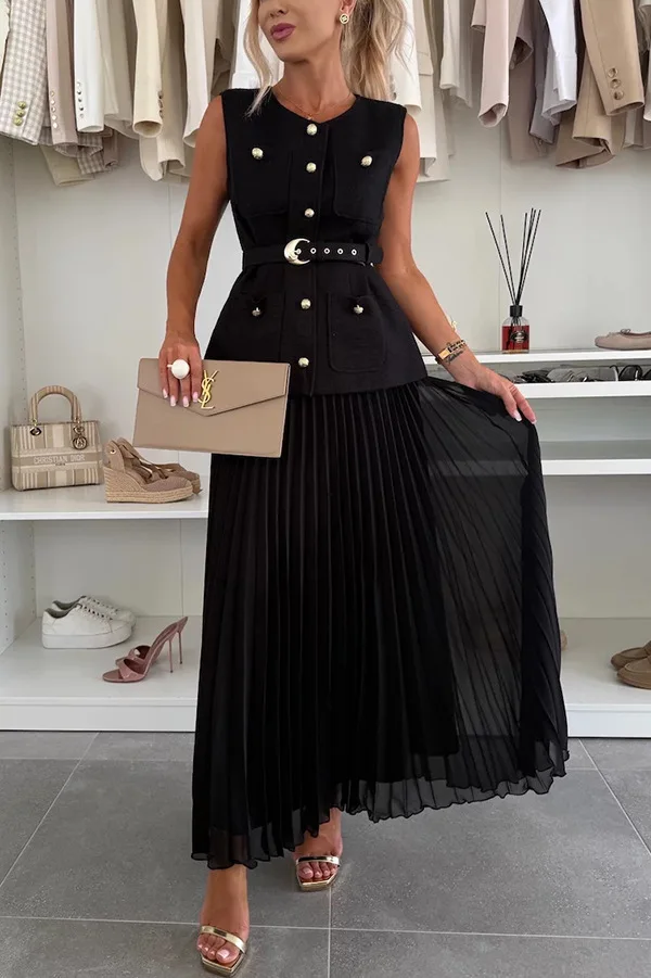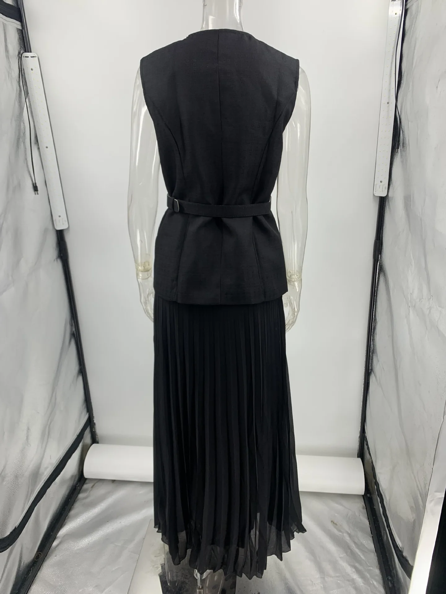 Elegant Long Dresses 2 Piece Set Women Summer Autumn Top Single Breasted Tweed Jacket A Line Chiffon Maxi Skirts Suits Outfits