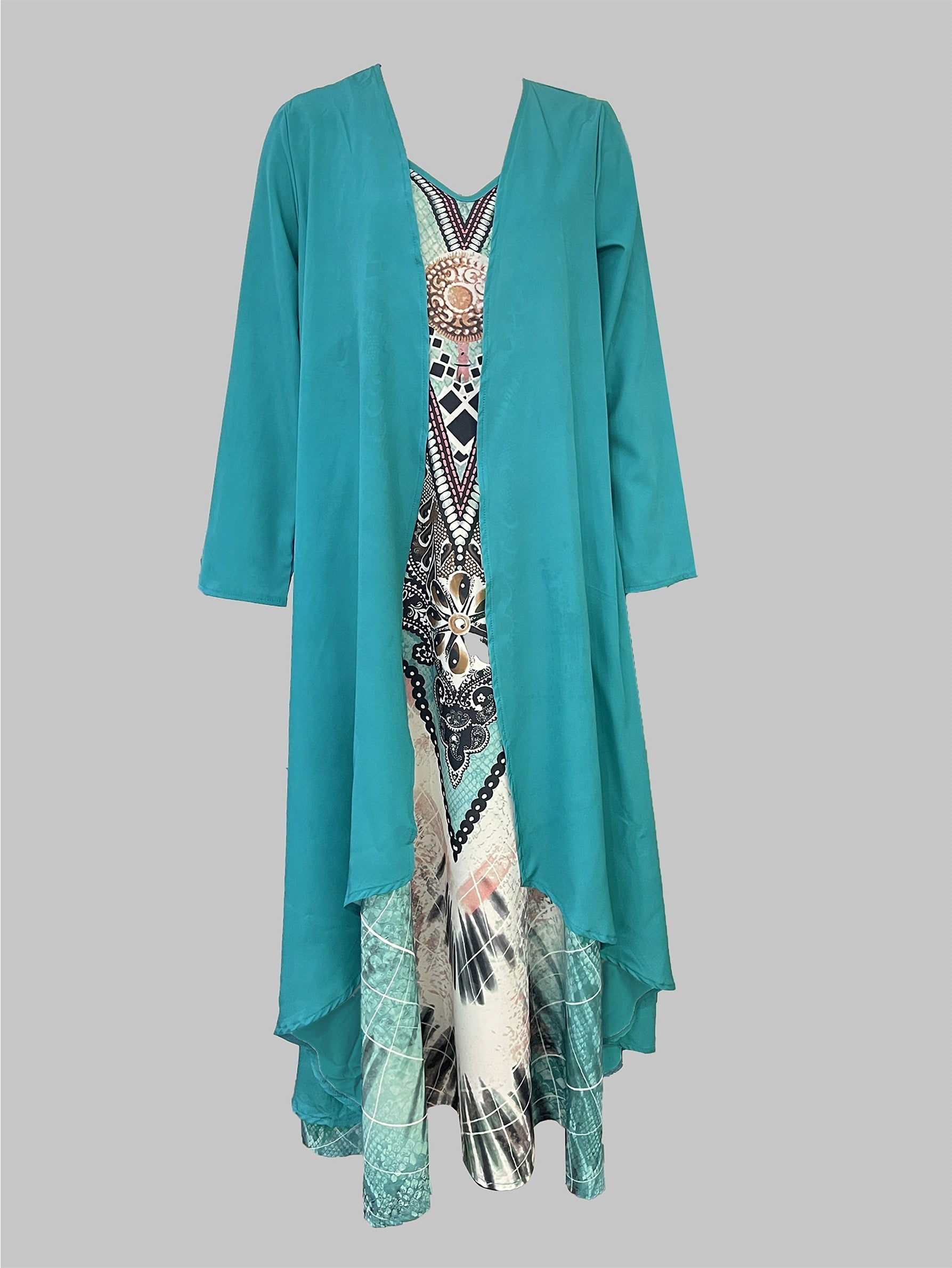Elegant Slim Two-piece Dress Set, Solid Long Sleeve Open Front Top & Floral Print Sleeveless Spaghetti Strap Dress Outfits, Women's Clothing