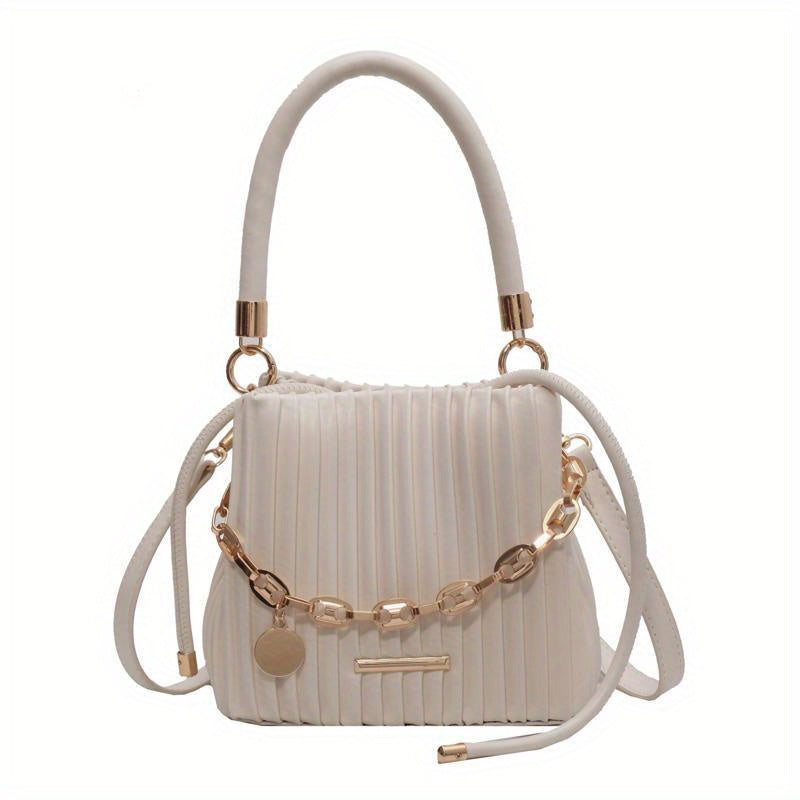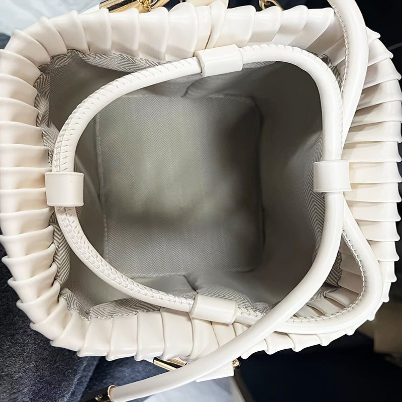 Elegant White Pleated Bucket Bag for Women – Chic Summer Crossbody Shoulder Handbag with Golden-Tone Hardware & Braided Handle, Versatile All-Match Design, Ladies Handbags