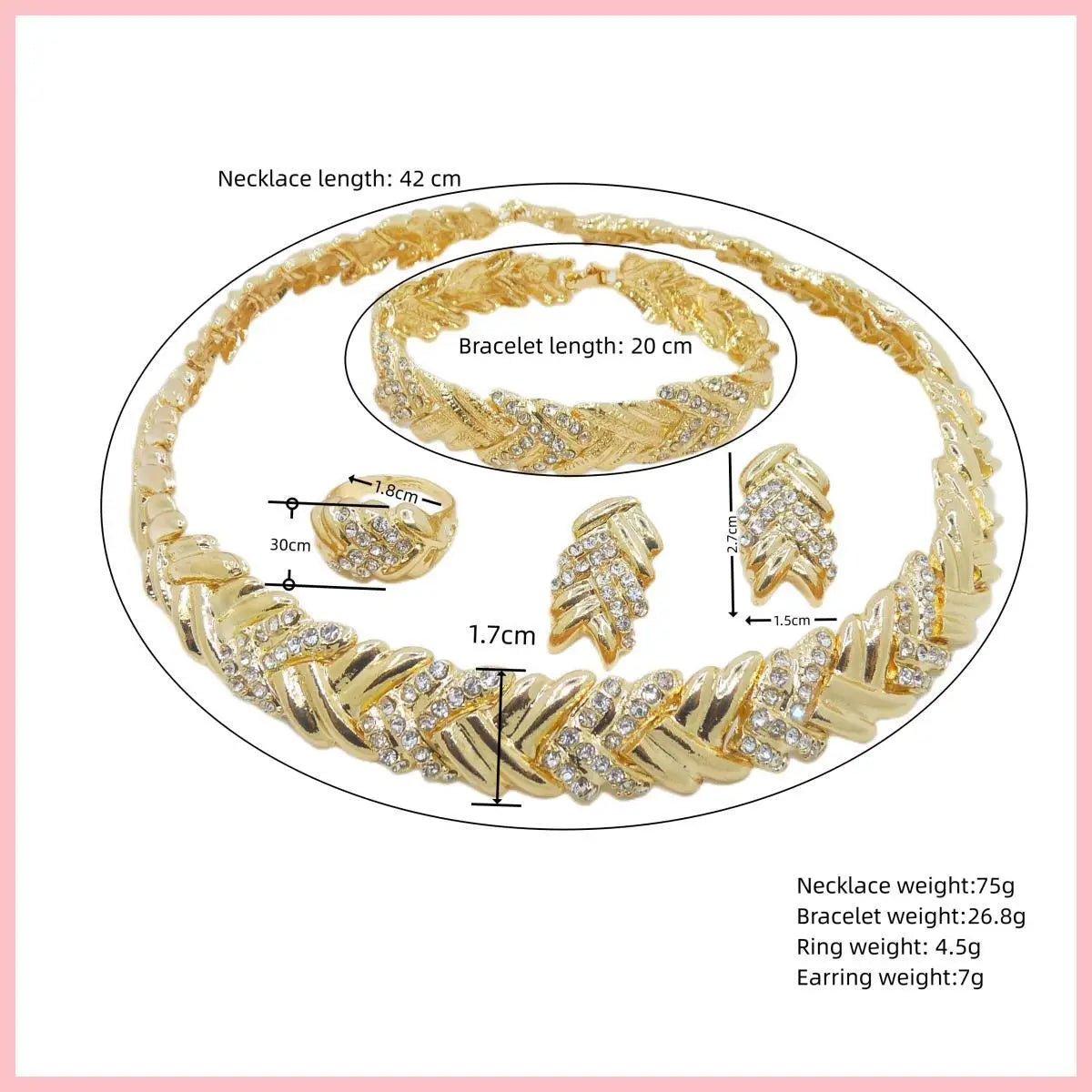 Sophisticated and luxurious design: Women's jewelry with a beautiful design and sturdy construction, each crystal is set by excellent craftsmanship. Dubai gold jewelry set, this is stylish matching, deep and perfectly customized.