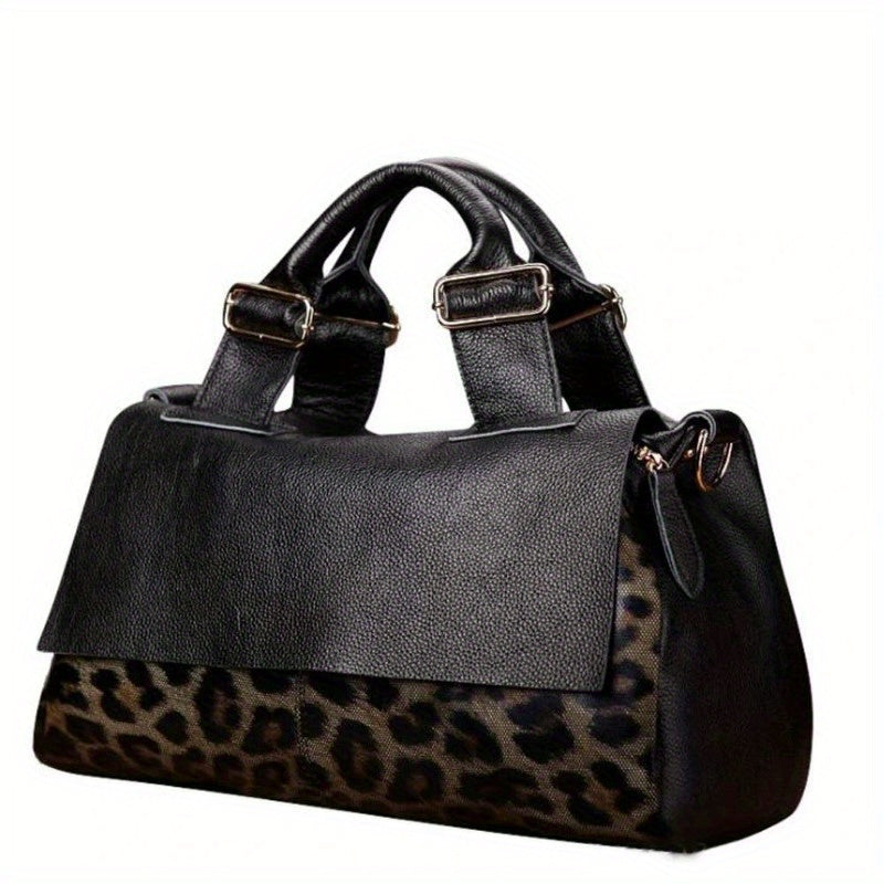Fashion Genuine Leather Big Tote Handbags Leopard Pattern Soft Ladies Shoulder Bags