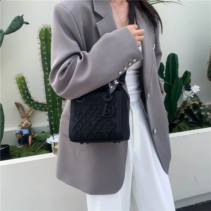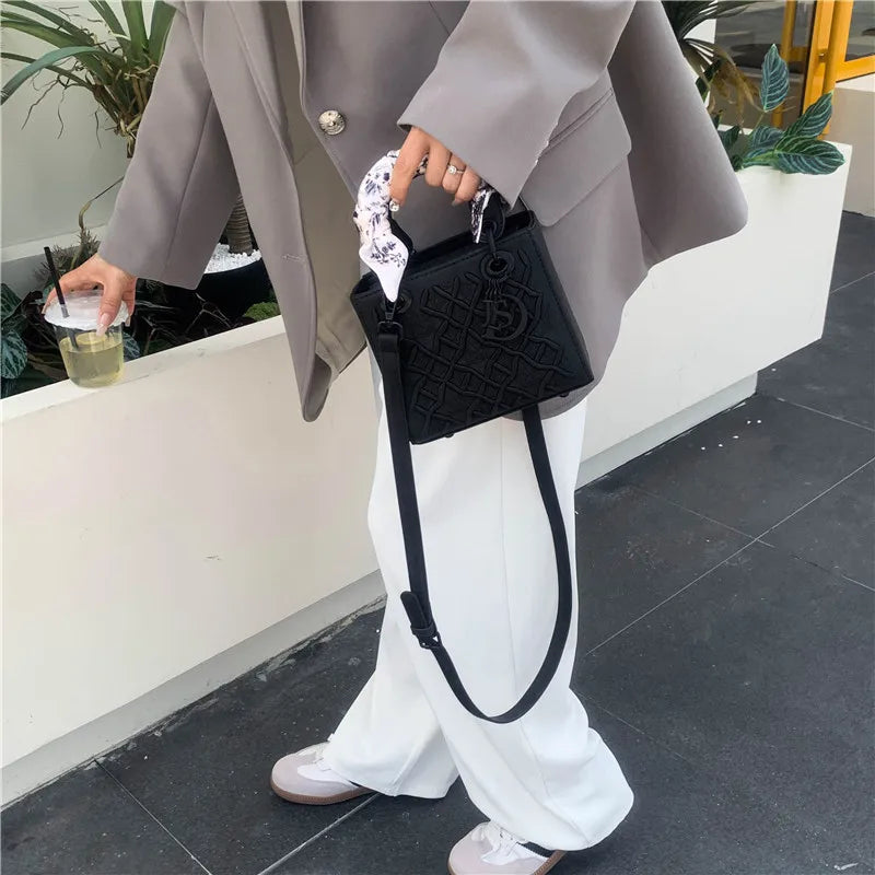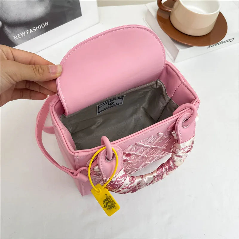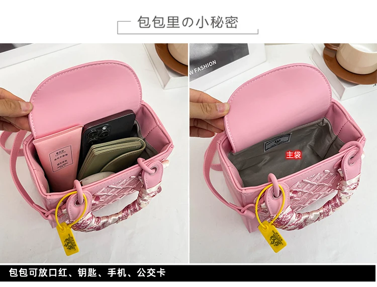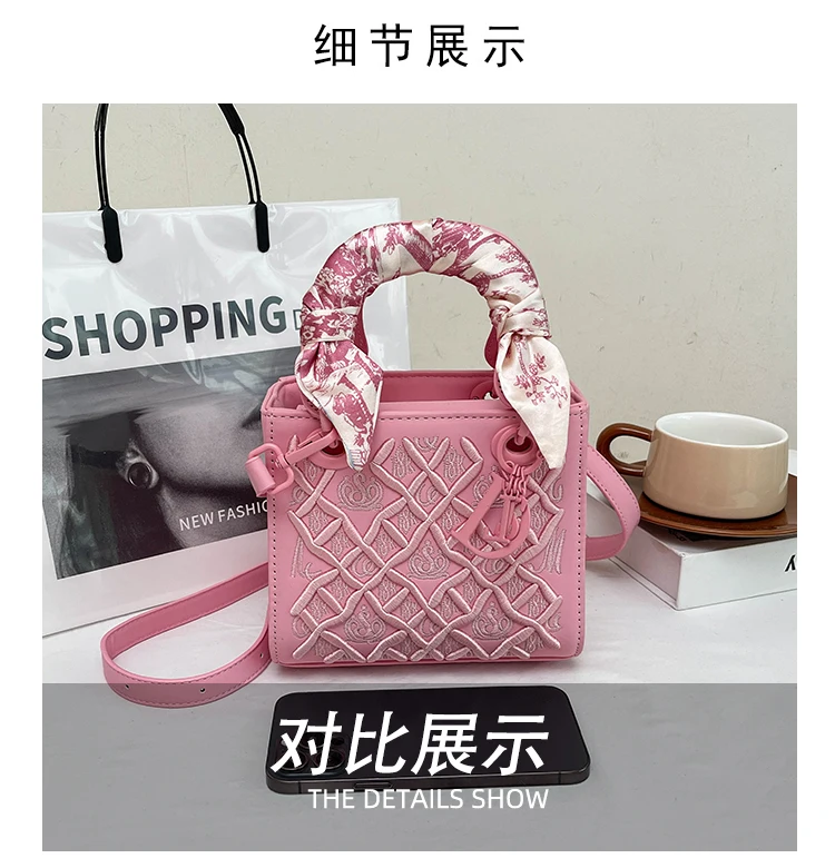 Fashionable and Luxurious Women's Single-shoulder Bag, Embroidered Checkered Silk Scarf Decorated Handbag, 8560