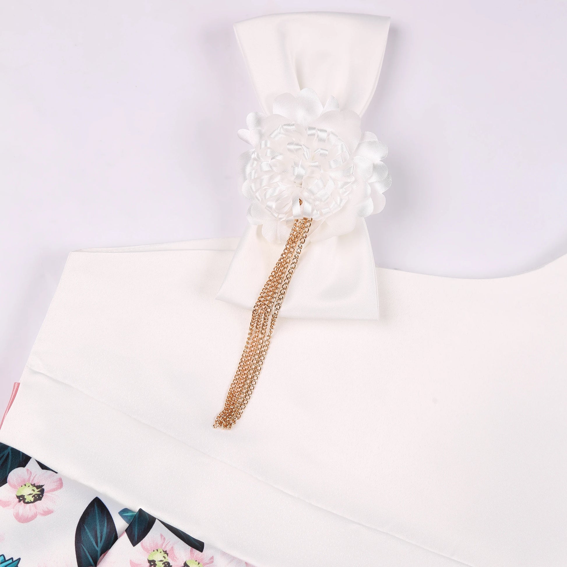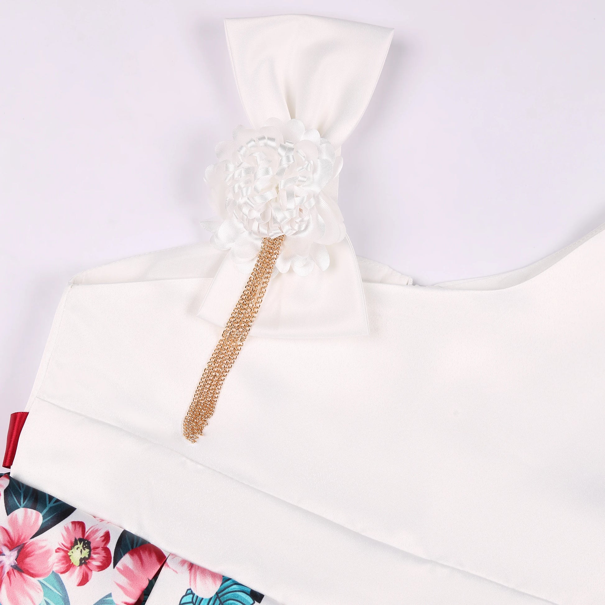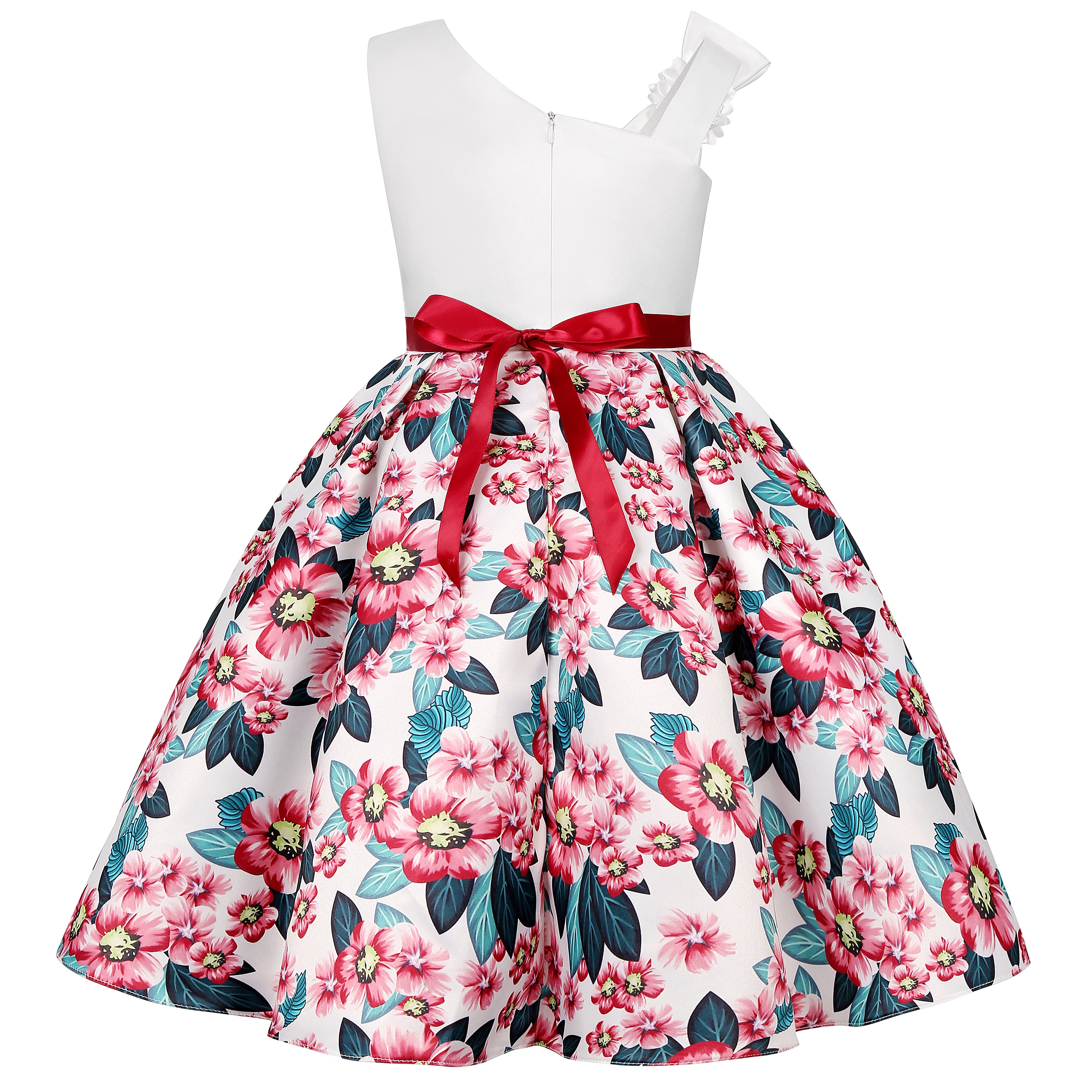 Fashionable floral off-the-shoulder dress, flower girl outfit, graduation dance dress, elegant evening gown, beauty pageant gown