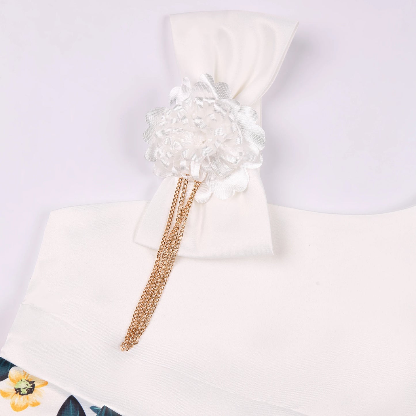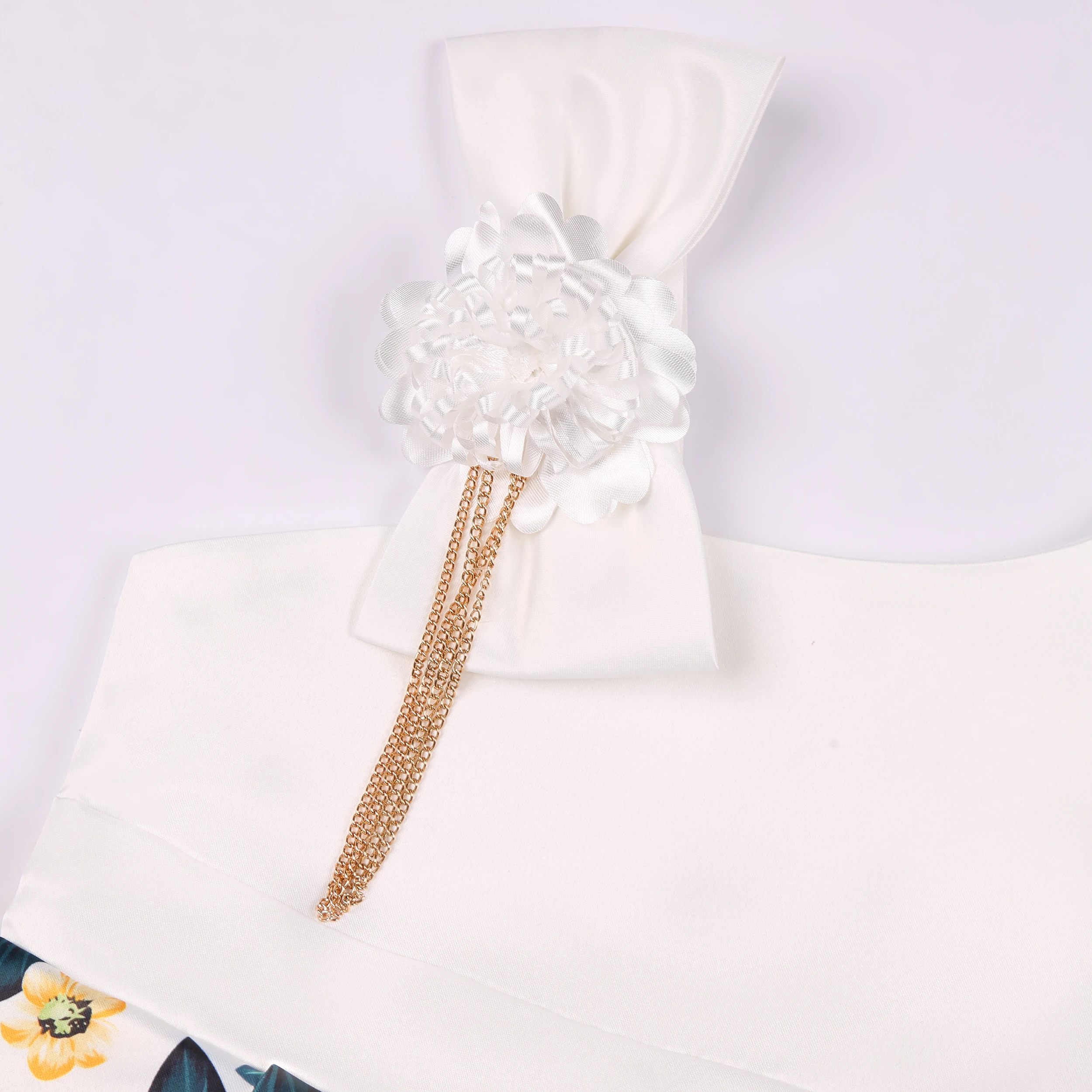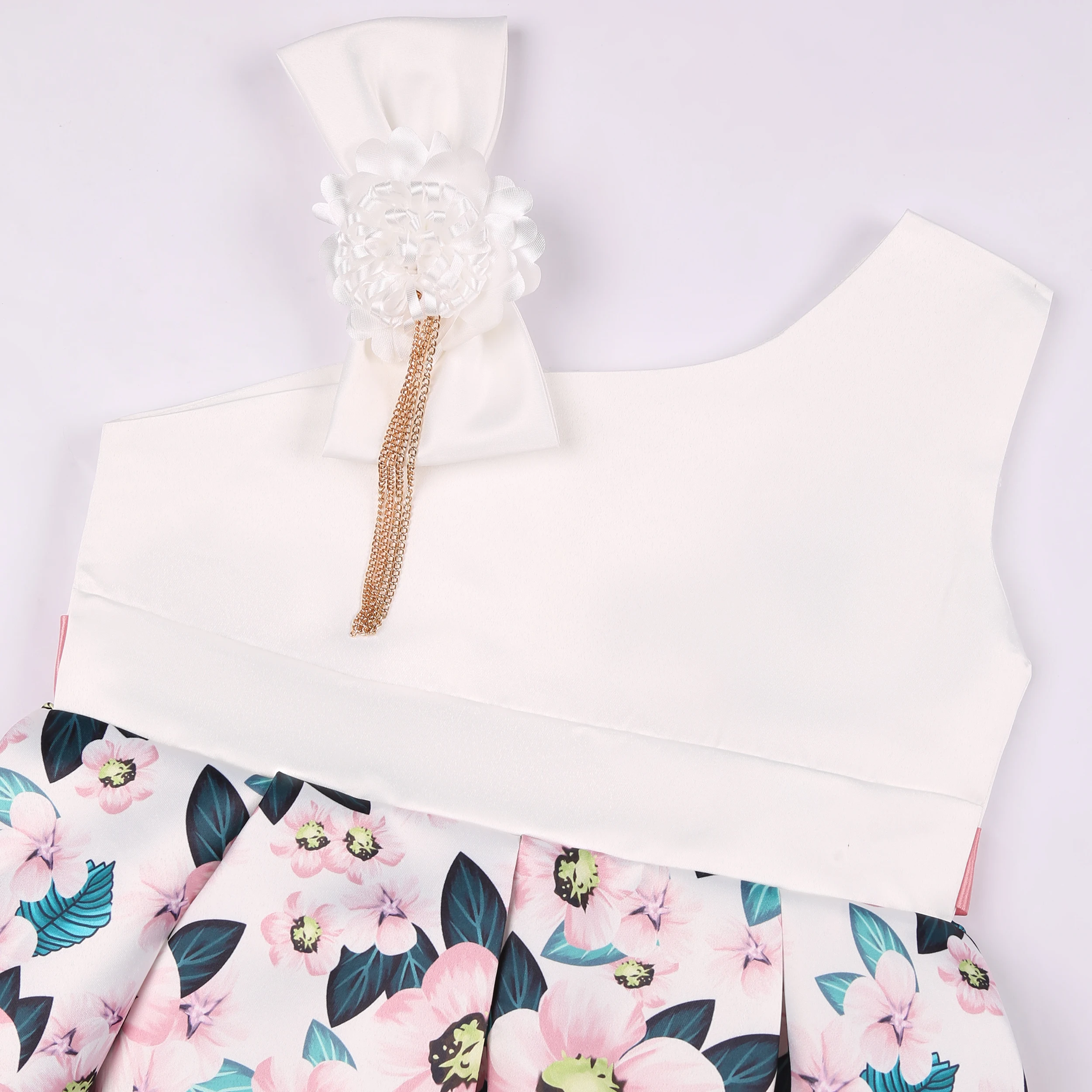 Fashionable floral off-the-shoulder dress, flower girl outfit, graduation dance dress, elegant evening gown, beauty pageant gown