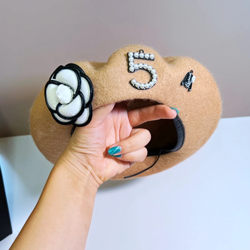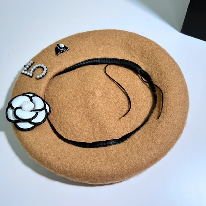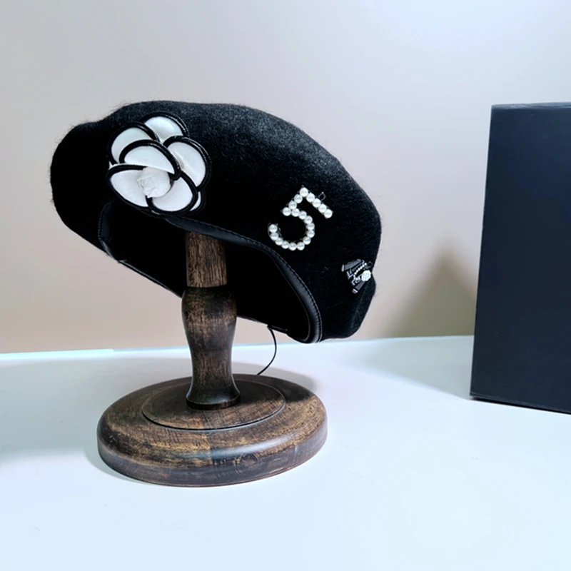 French women hats in winter hats woman Wool Classic Flower Beret Hat Women Keep Warm Brand Beanie Adjustable gorras para mujer