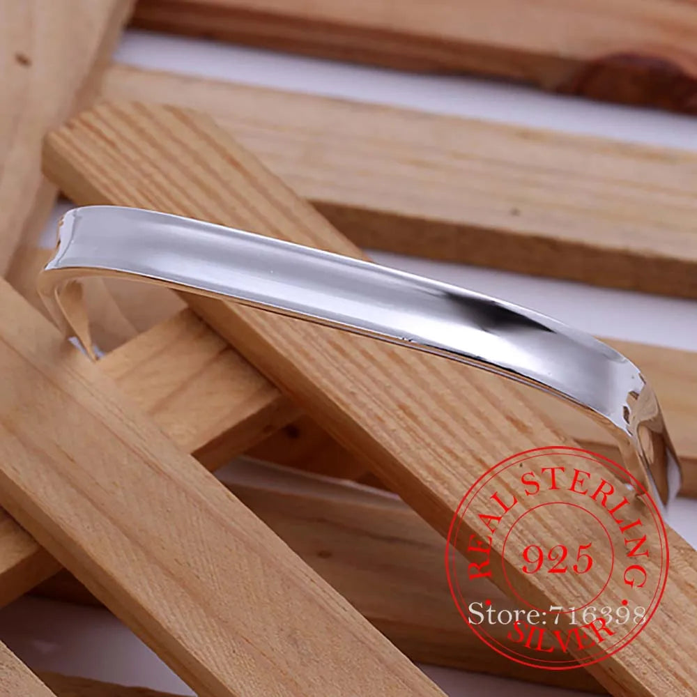 Genuine 925 Sterling Silver Bangles For Women Wedding Engagement Party Style Small Square Bangle-no words Bracelet Jewelry