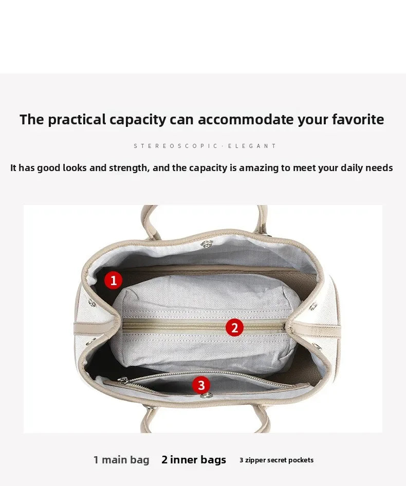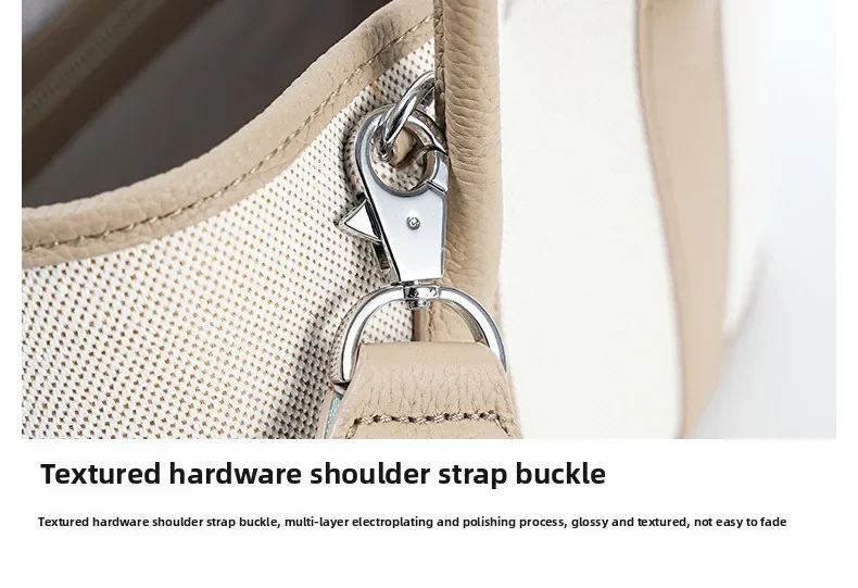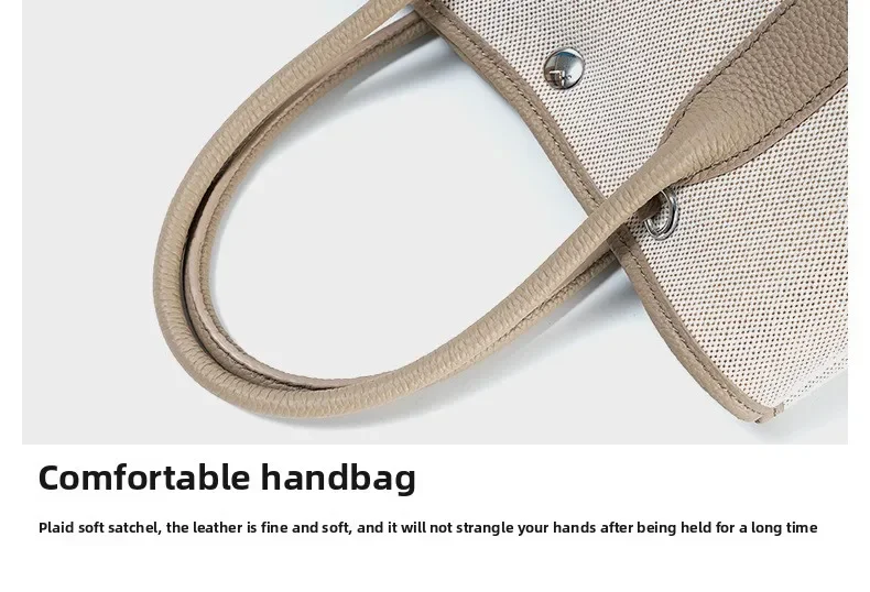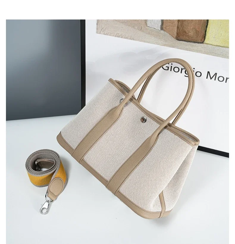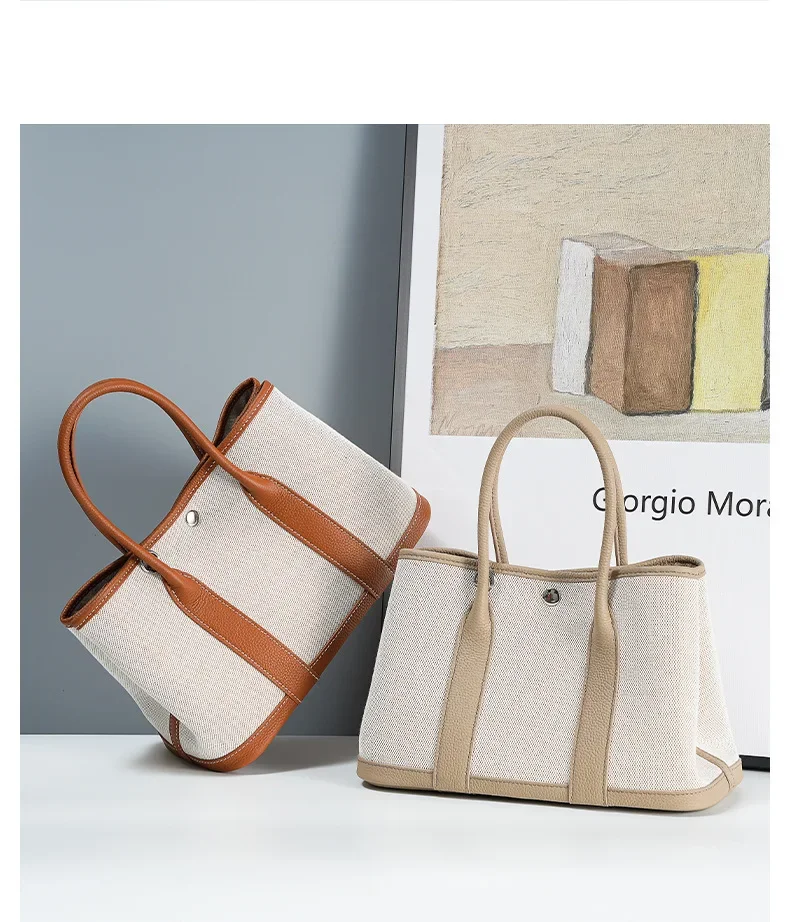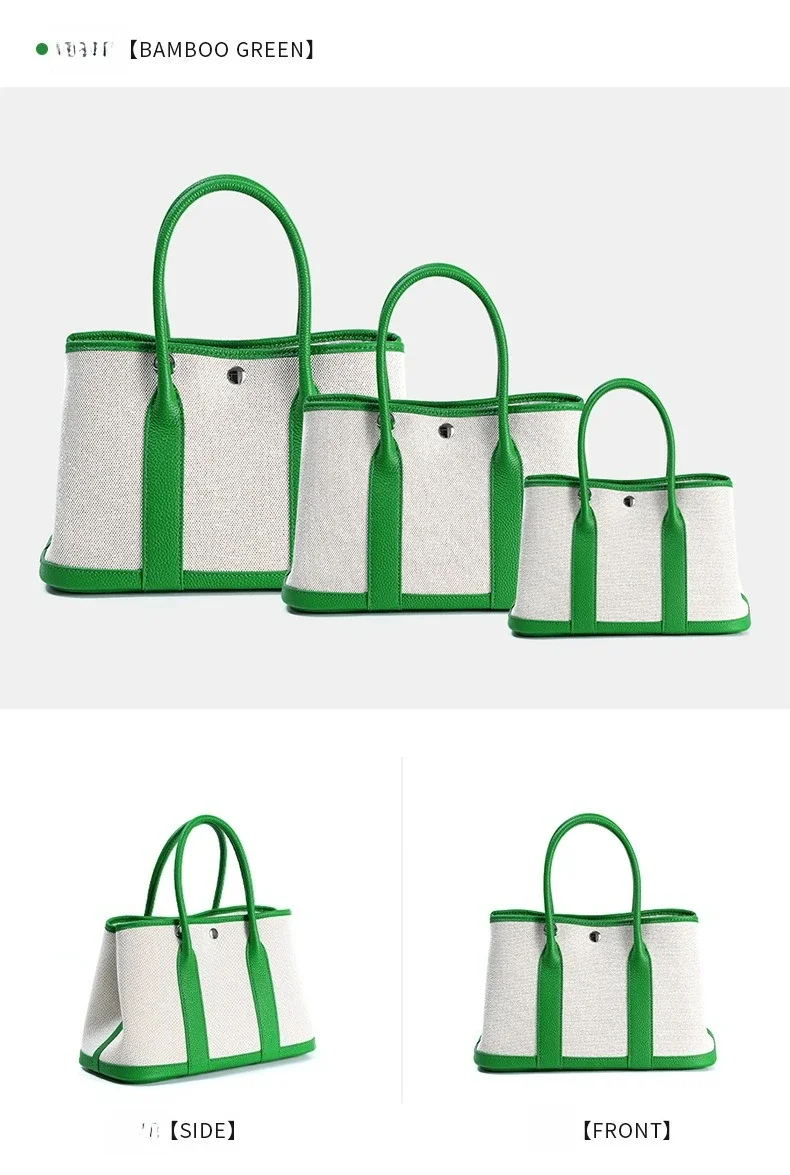 2024新款帆布配头层牛皮女包花园手提包大容量真皮撞色单肩托特包