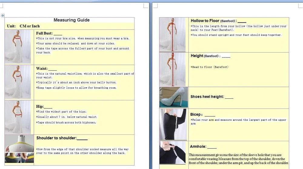 4.We strongly recommend that you have your measurements taken by a professional before buying any gown online. Please follow the measurement instructions, and measure yourself carefully.