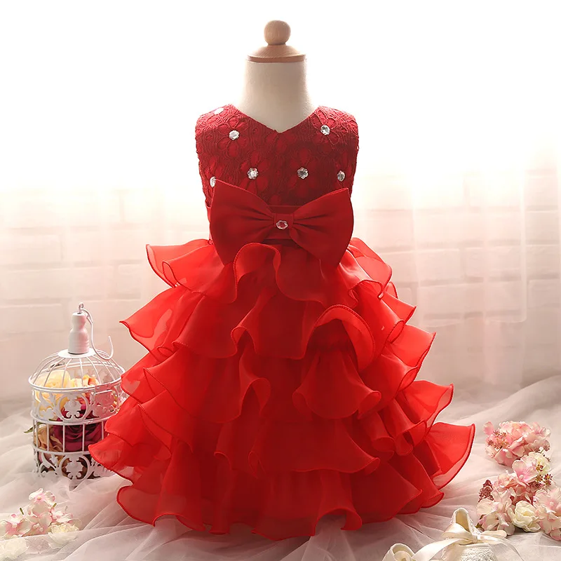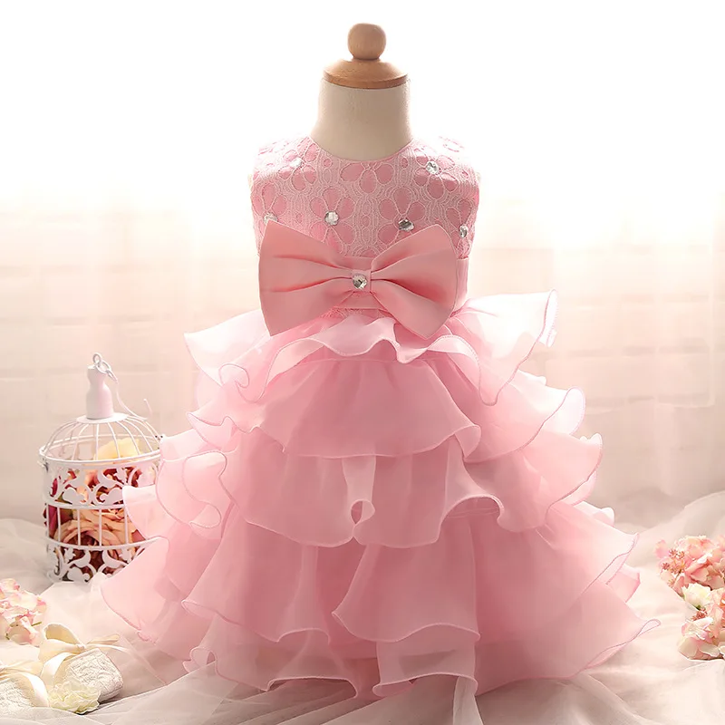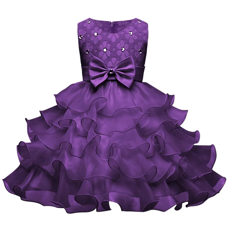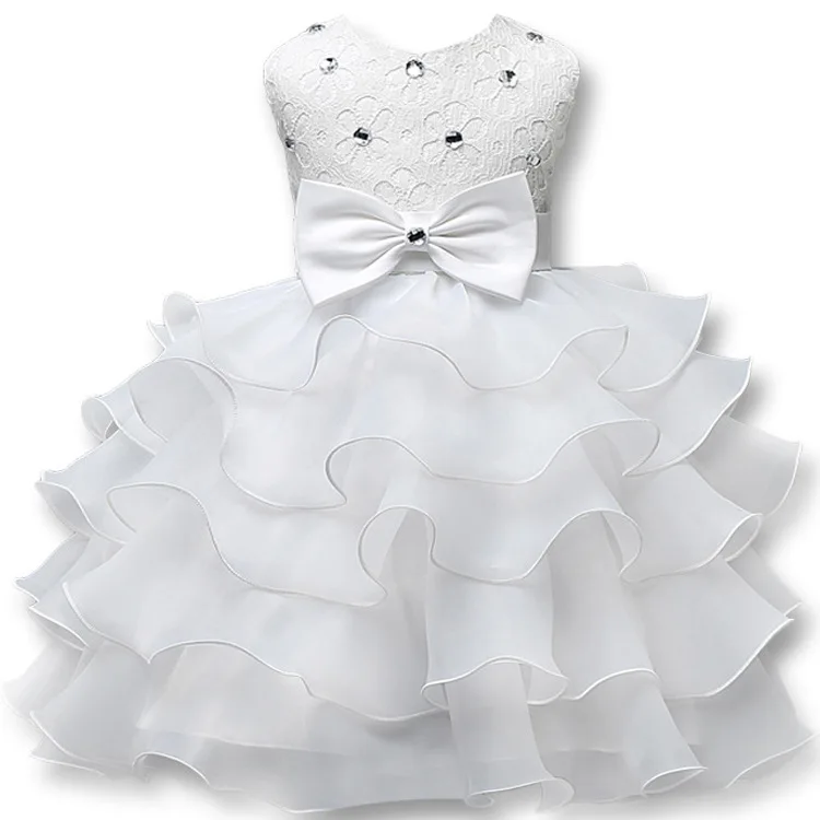 Girls Elegant Dresses Flower Tutu Cake Dress Baby Gown Vestidos Wedding Party Kids Clothes Birthday Ceremonial Baptism Ball Gown