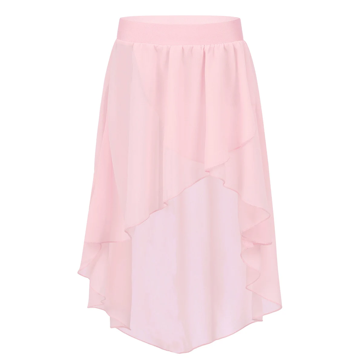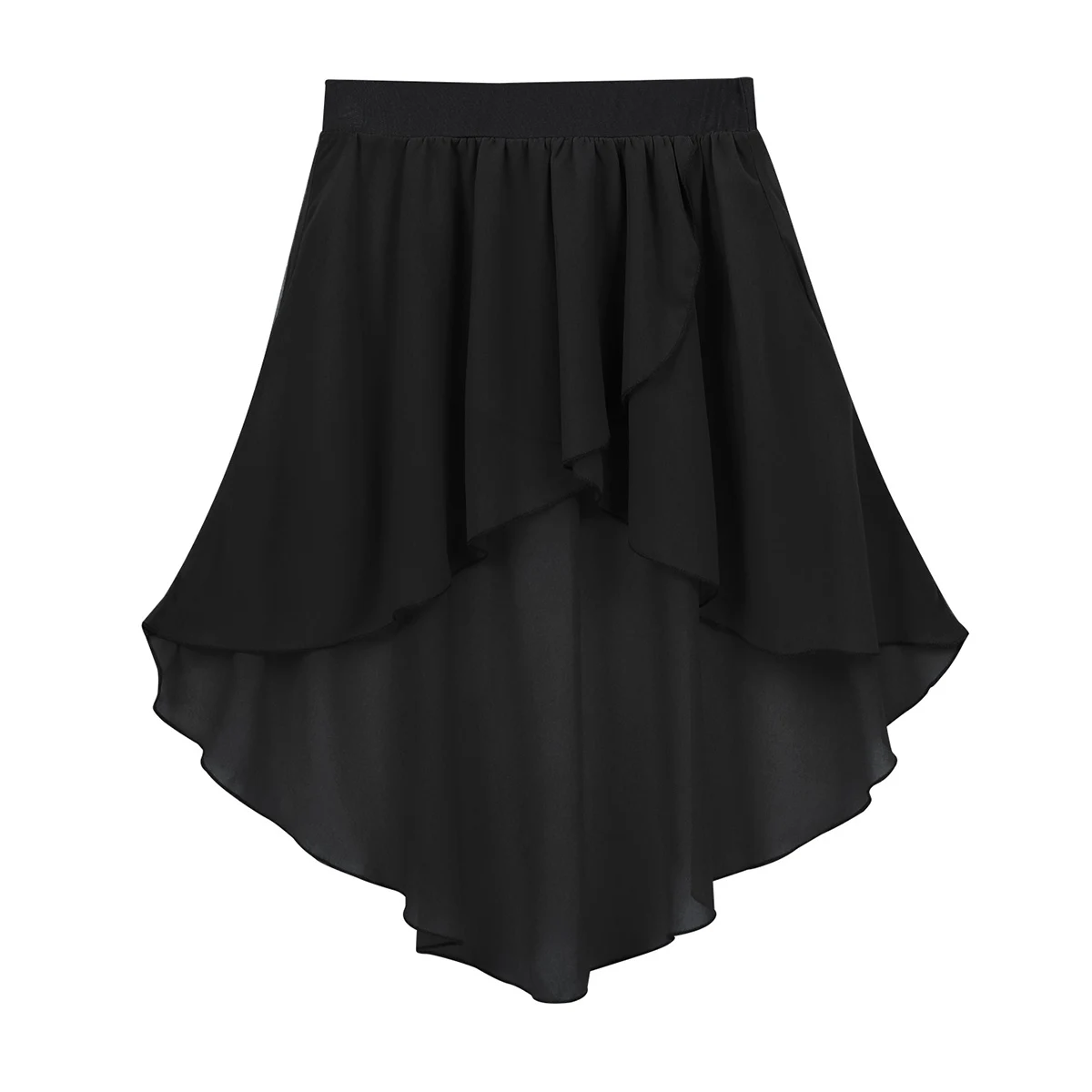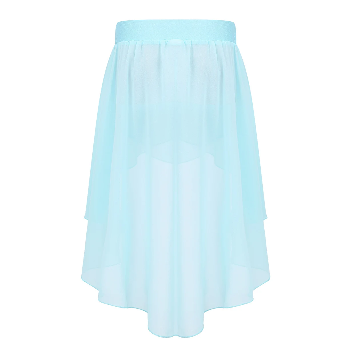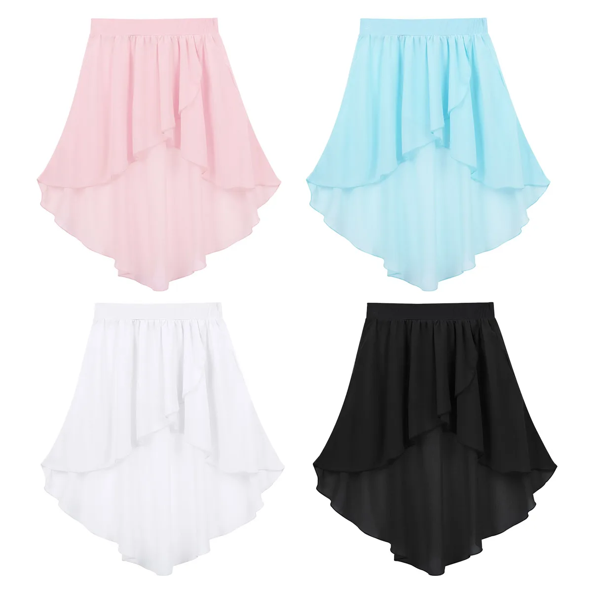 Girls Skirts High-Low Chiffon Skirt for Girl Elastic Waistband Ballet Modern Lyrical Dance Leotards Wrap Skirt Child Dancewear