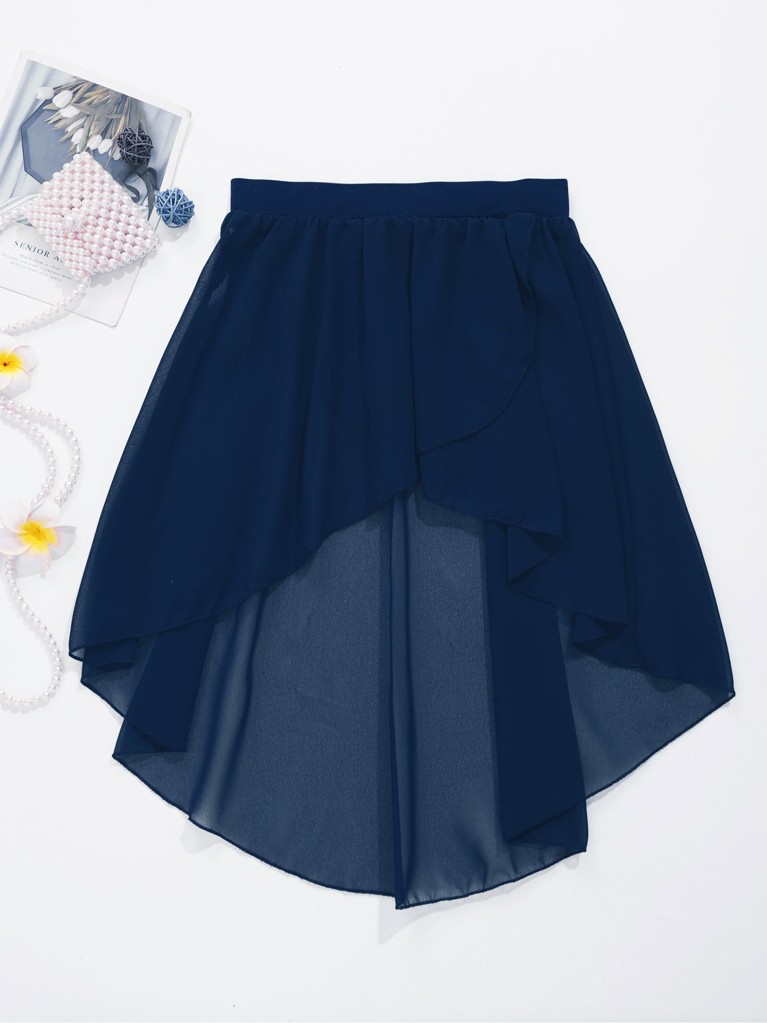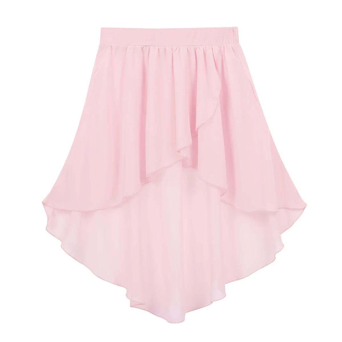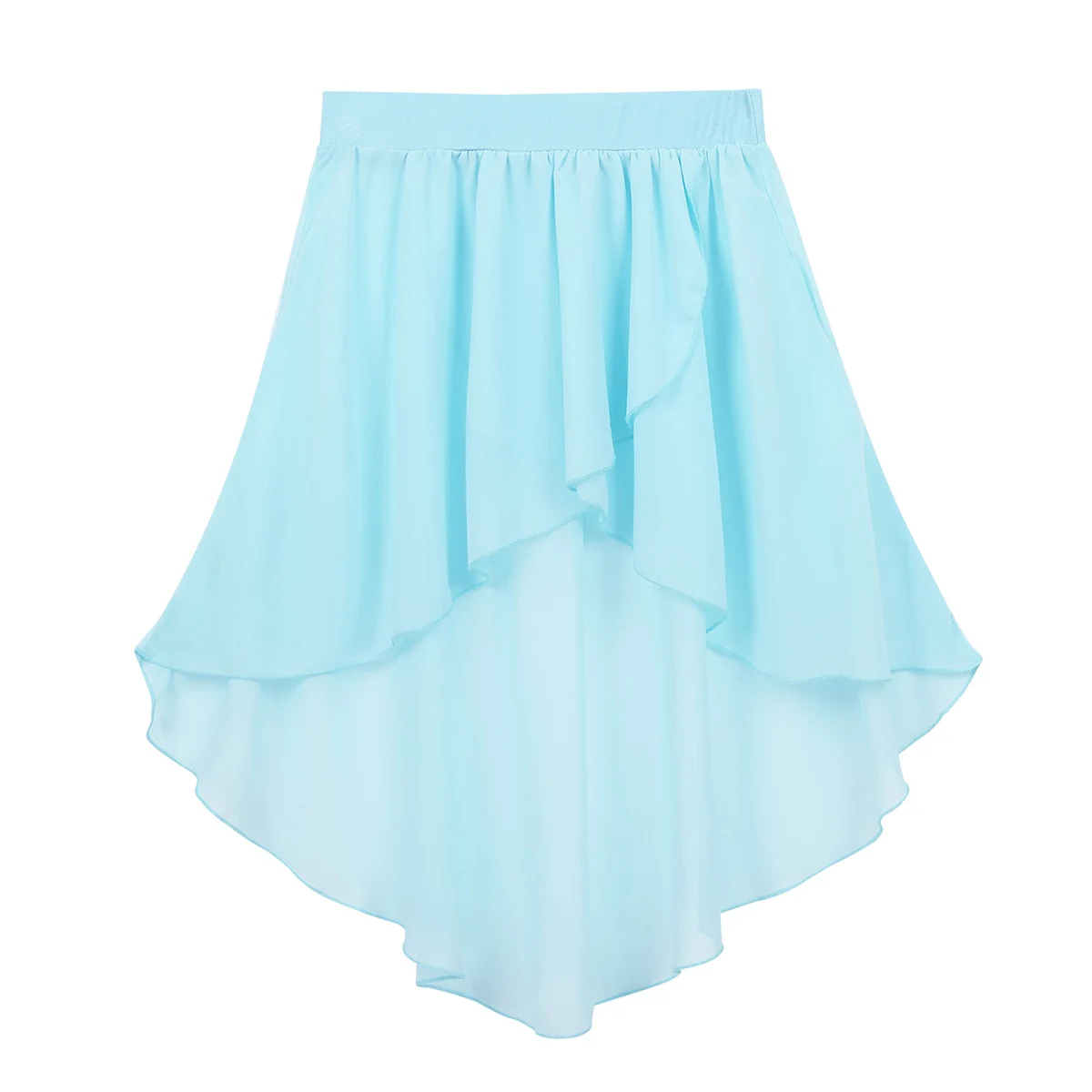 Girls Skirts High-Low Chiffon Skirt for Girl Elastic Waistband Ballet Modern Lyrical Dance Leotards Wrap Skirt Child Dancewear