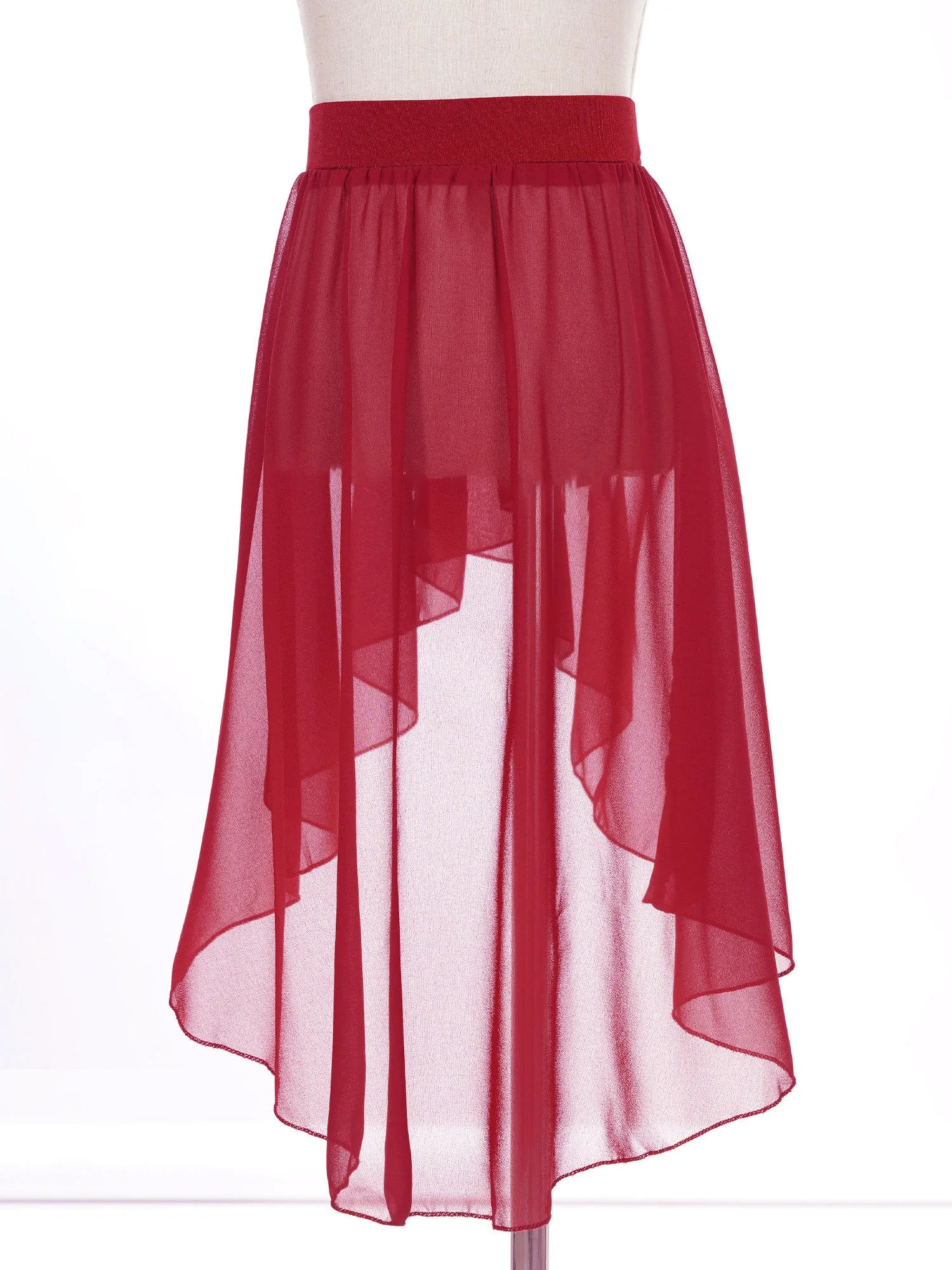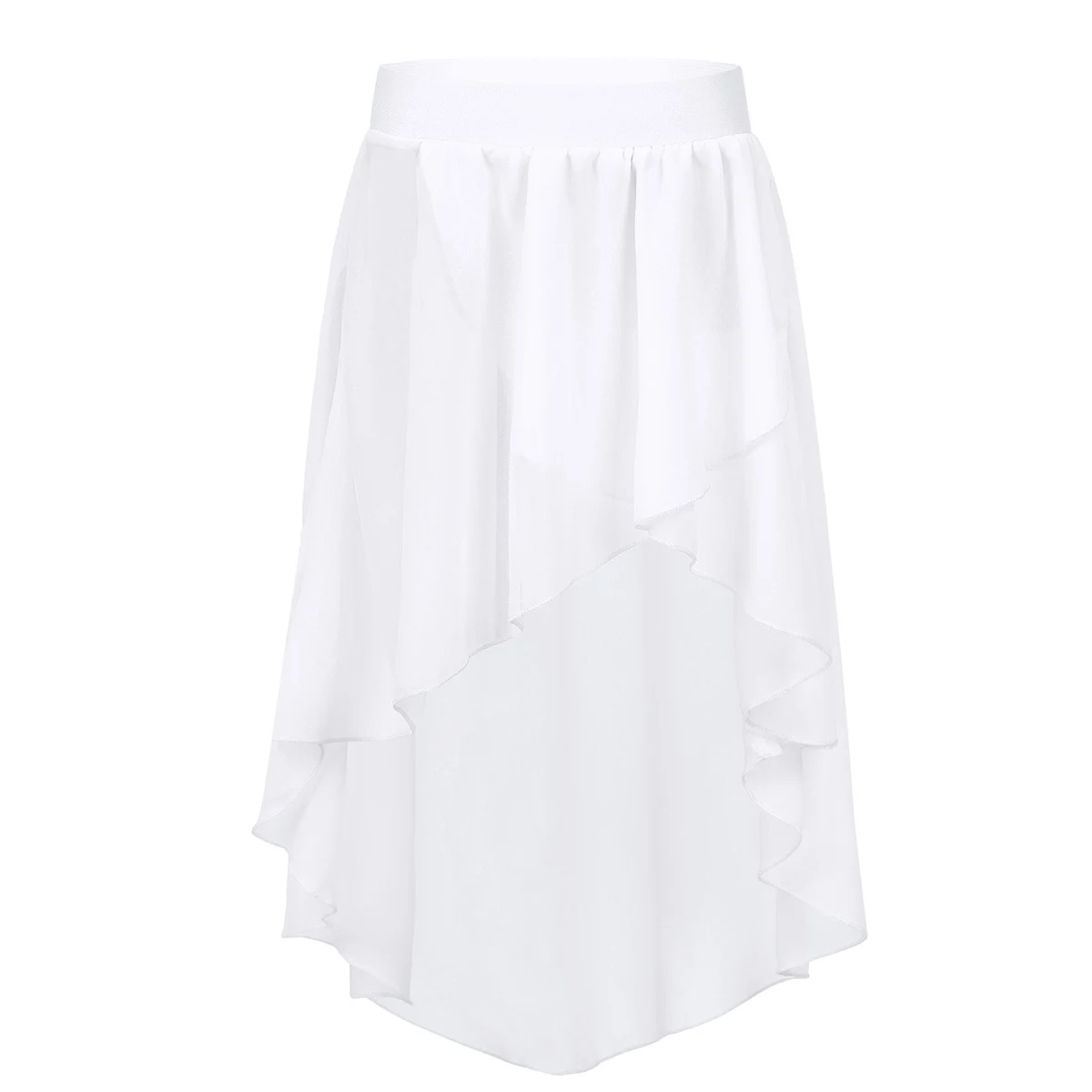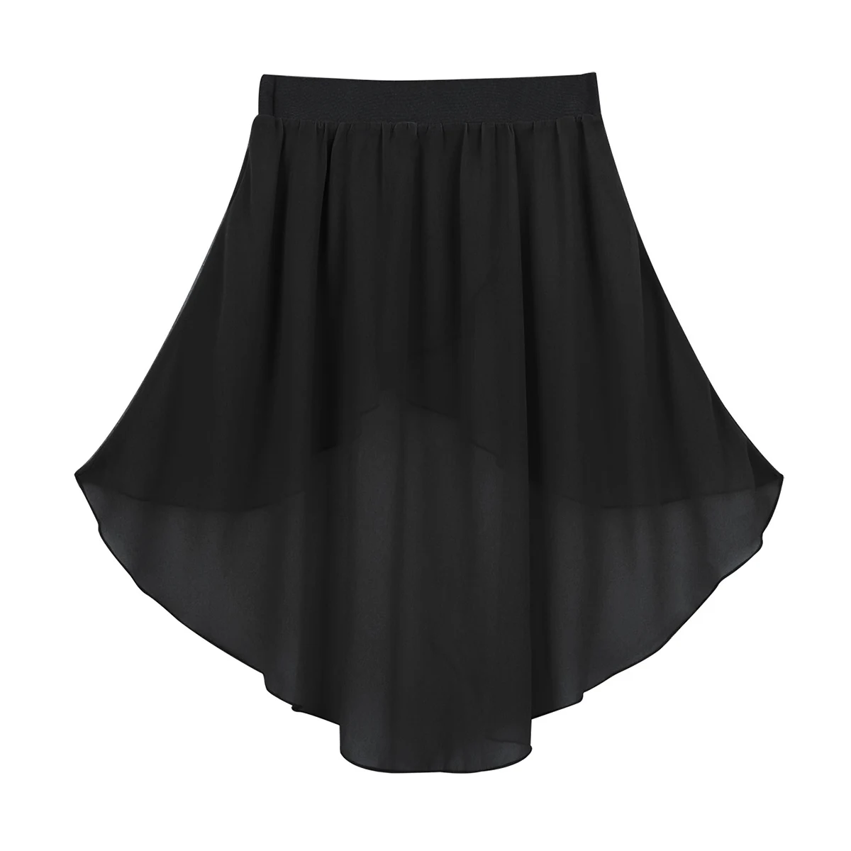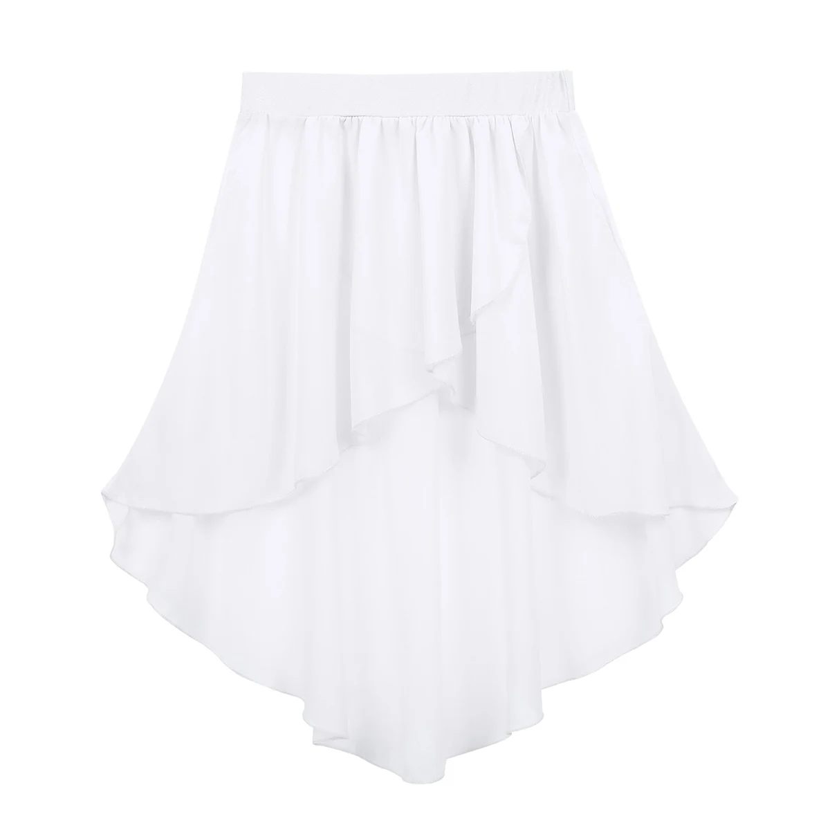 Girls Skirts High-Low Chiffon Skirt for Girl Elastic Waistband Ballet Modern Lyrical Dance Leotards Wrap Skirt Child Dancewear