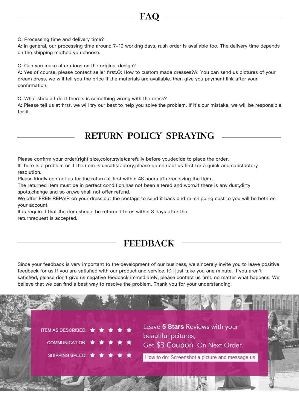 E. Dress can be made in Custom Size, Color, Design.F. All dresses are not in stock, production begins after the order is confirmed.