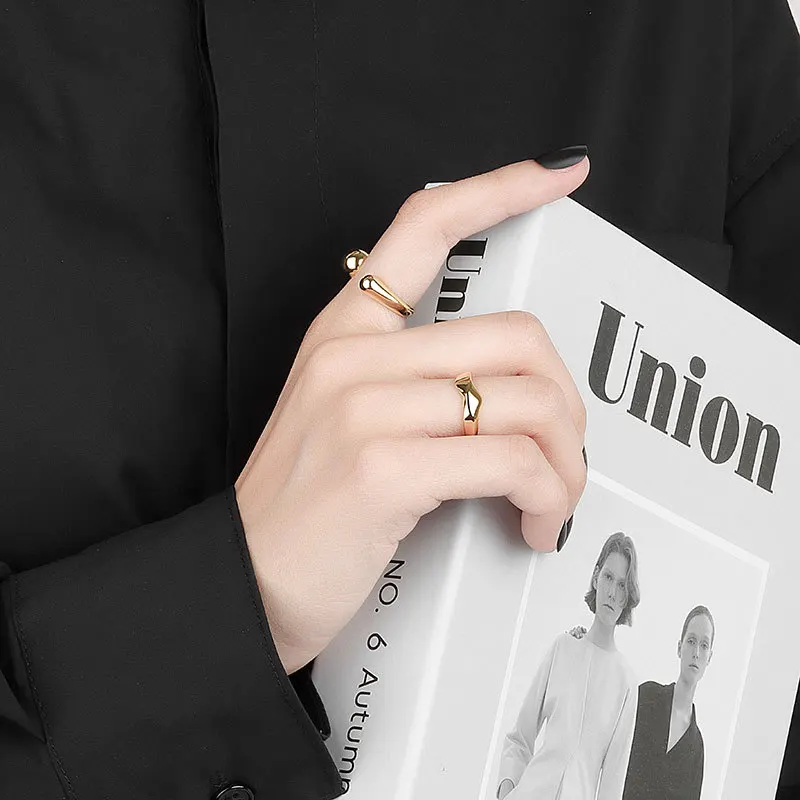 Gold Color Smooth Geometric Ring For Women Couples Minimalist Exaggerated Classic Elegant Wedding Bride Jewelry