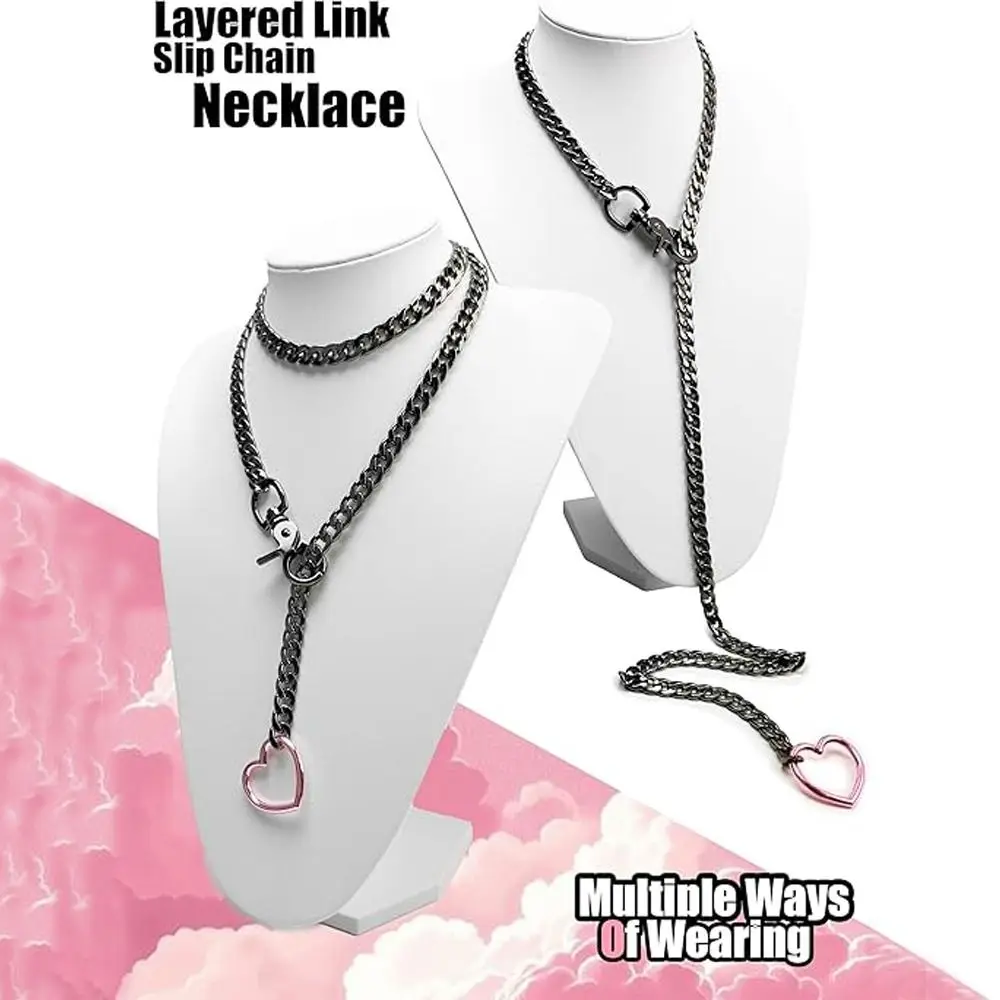 Heart Y-Necklace Link Chain Necklace No Fading Durable Choker with Tail Necklace Scratch Resistant Adjustable