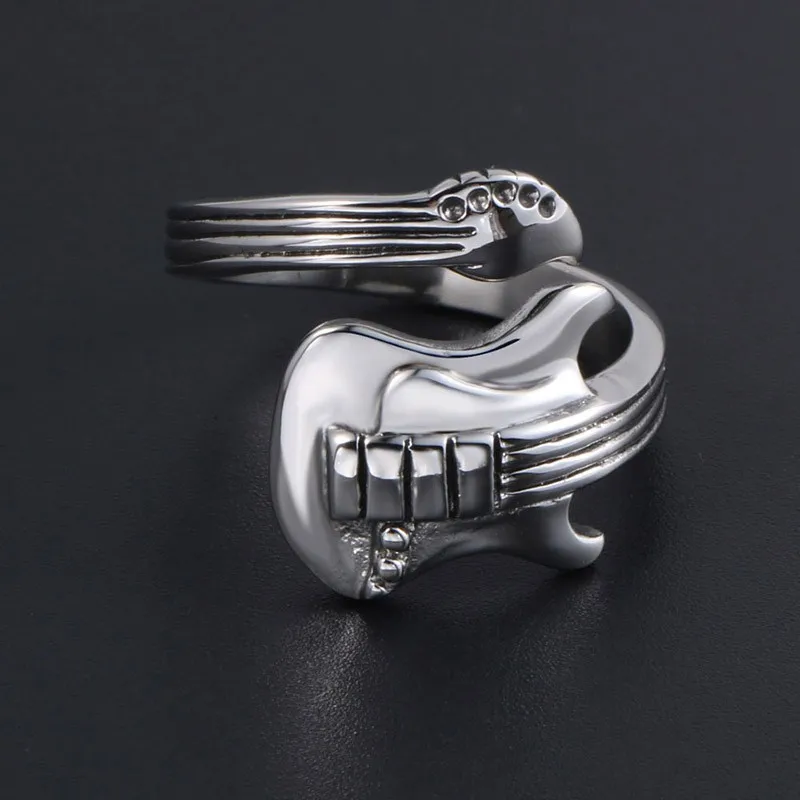 Hip Hop Rock Music Electric Guitar Men'S Rings 2024 Trend Adjustable Finger Rings Party Jewelry Gifts Fashion Accessories