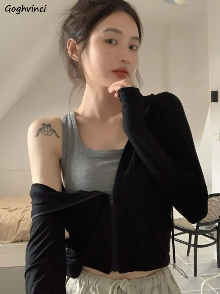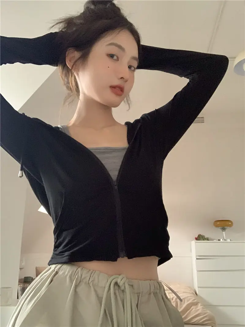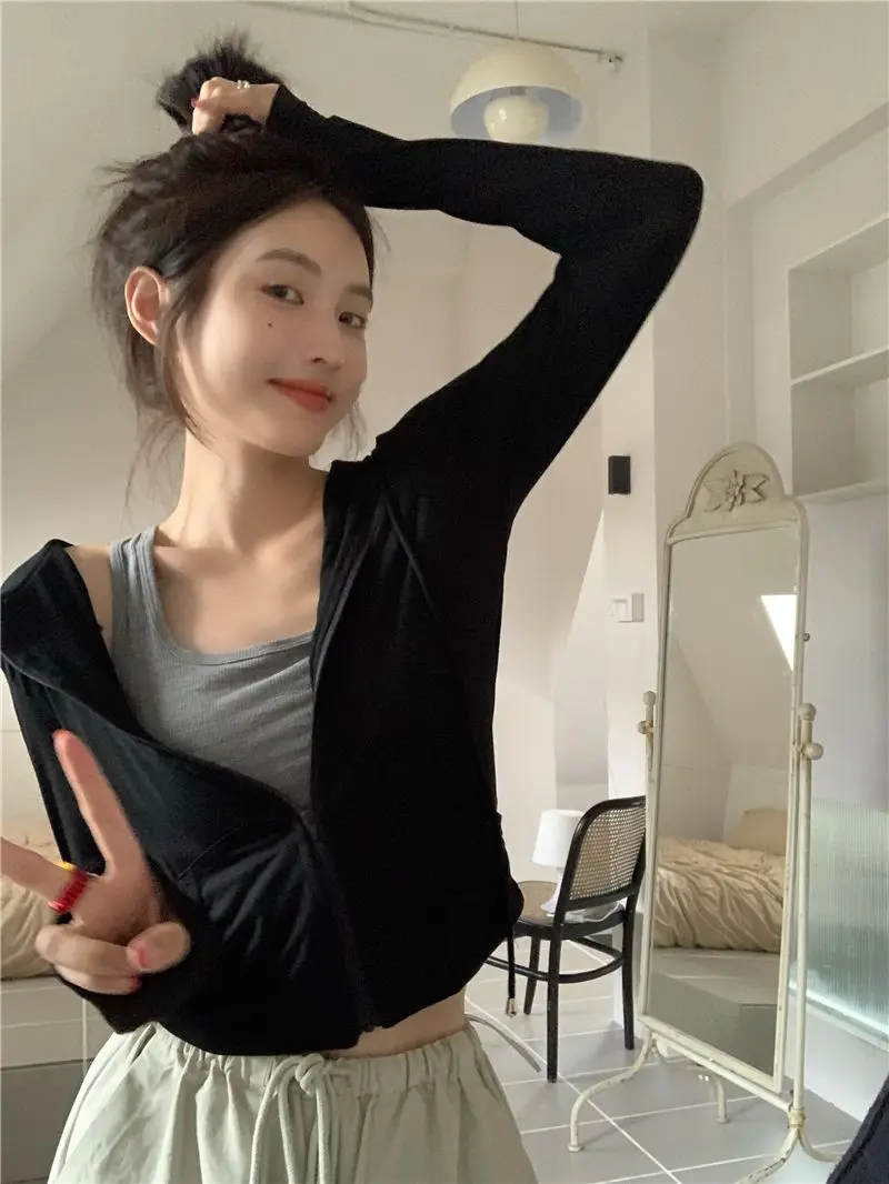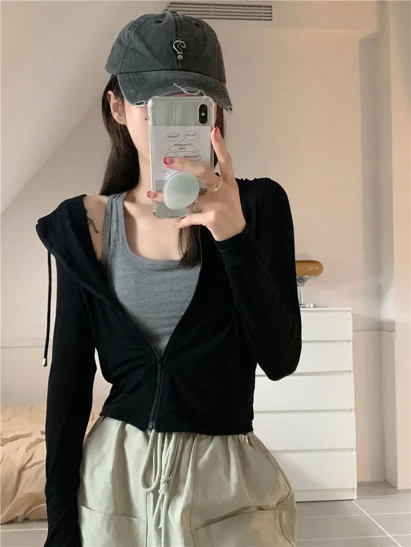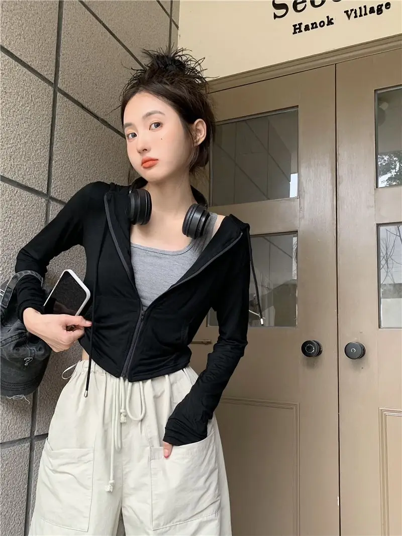 Hooded Jackets Women Thin Sunscreen Solid Fashion Summer Long Sleeve Cropped Coats All-match College Breathable Sporty Popular