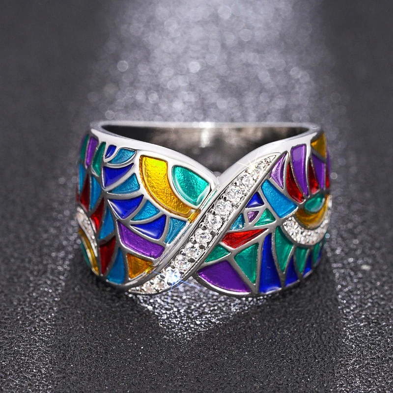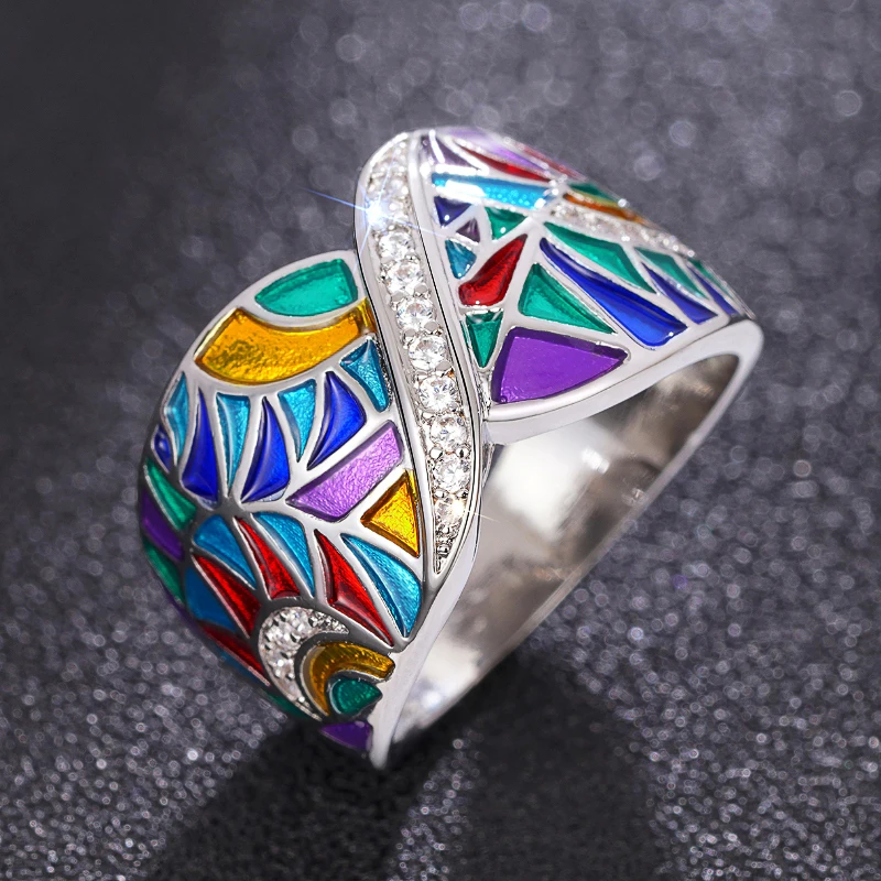 Huitan Novel Colorful Rings for Women Delicate Charming Shiny Finger Accessories Fashion Noble Creative Attractive Party Jewelry