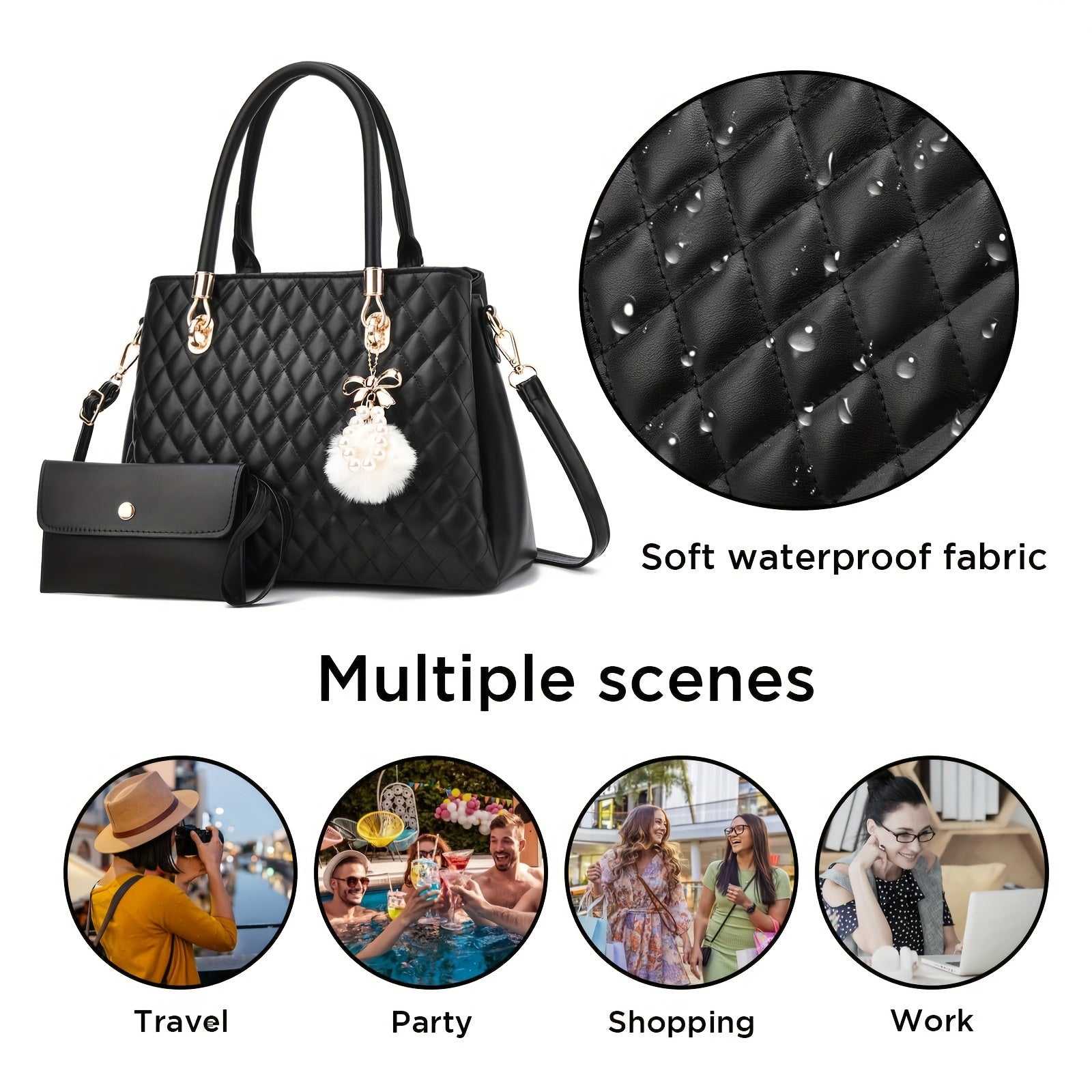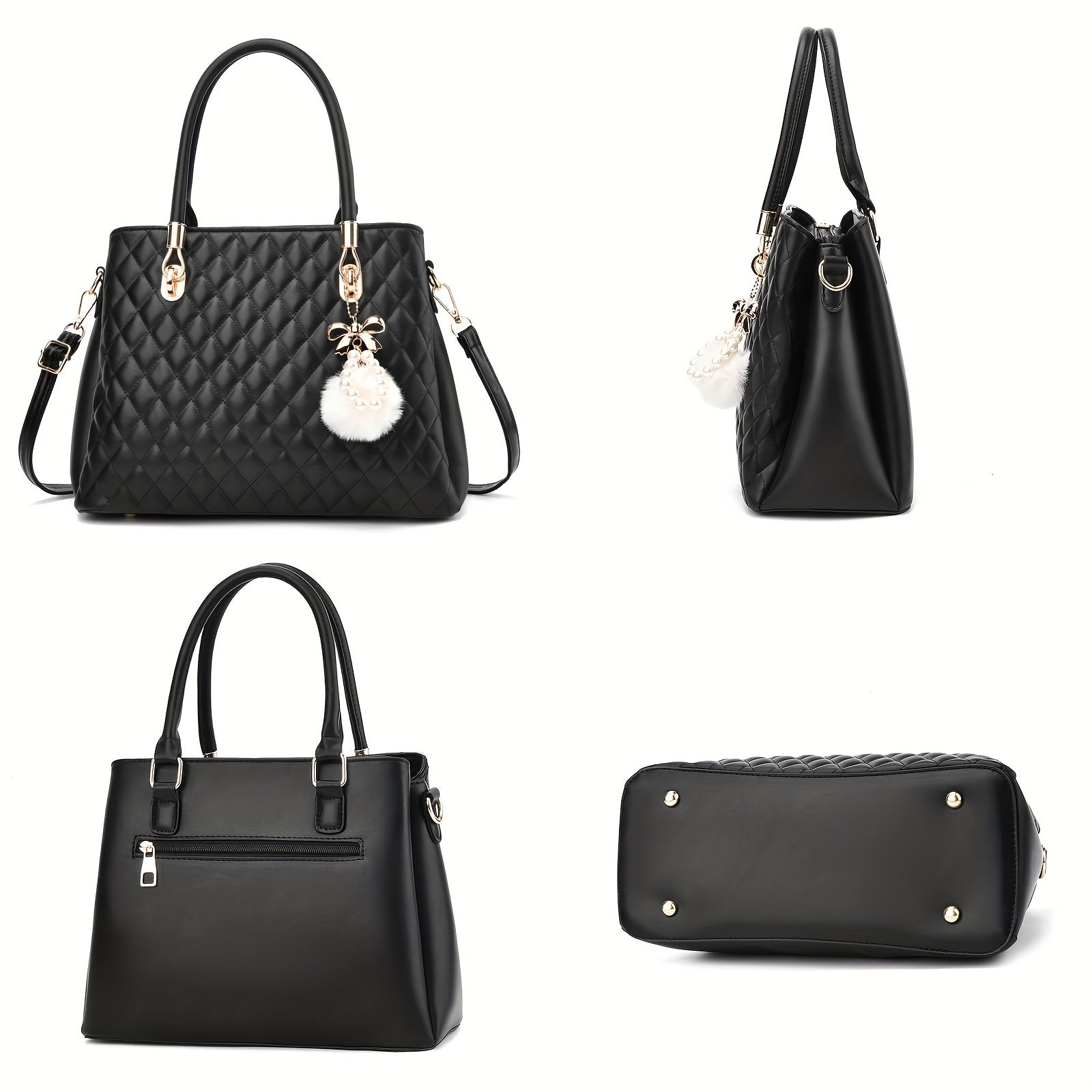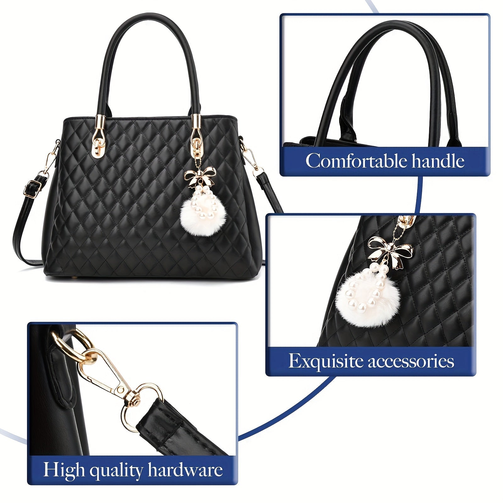 I IHAYNER Womens Leather Handbags Purses Top-handle Totes Satchel Shoulder Bag for Ladies with Pompon