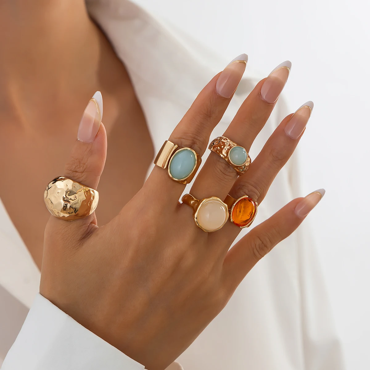 Ingemark 5Pcs/Set Retro Gold Color Irregular Metal Ring for Women Bohemian Open Adjustable Wide Ring Aesthetic Y2K Jewelry Gift