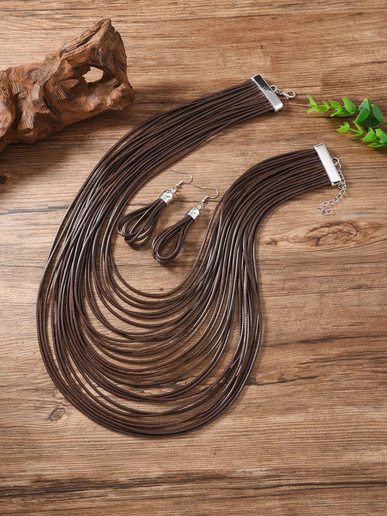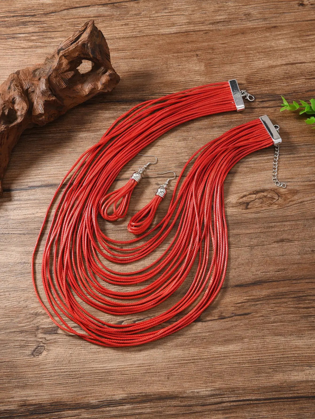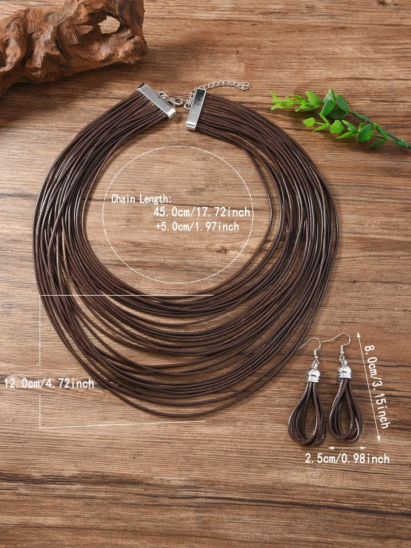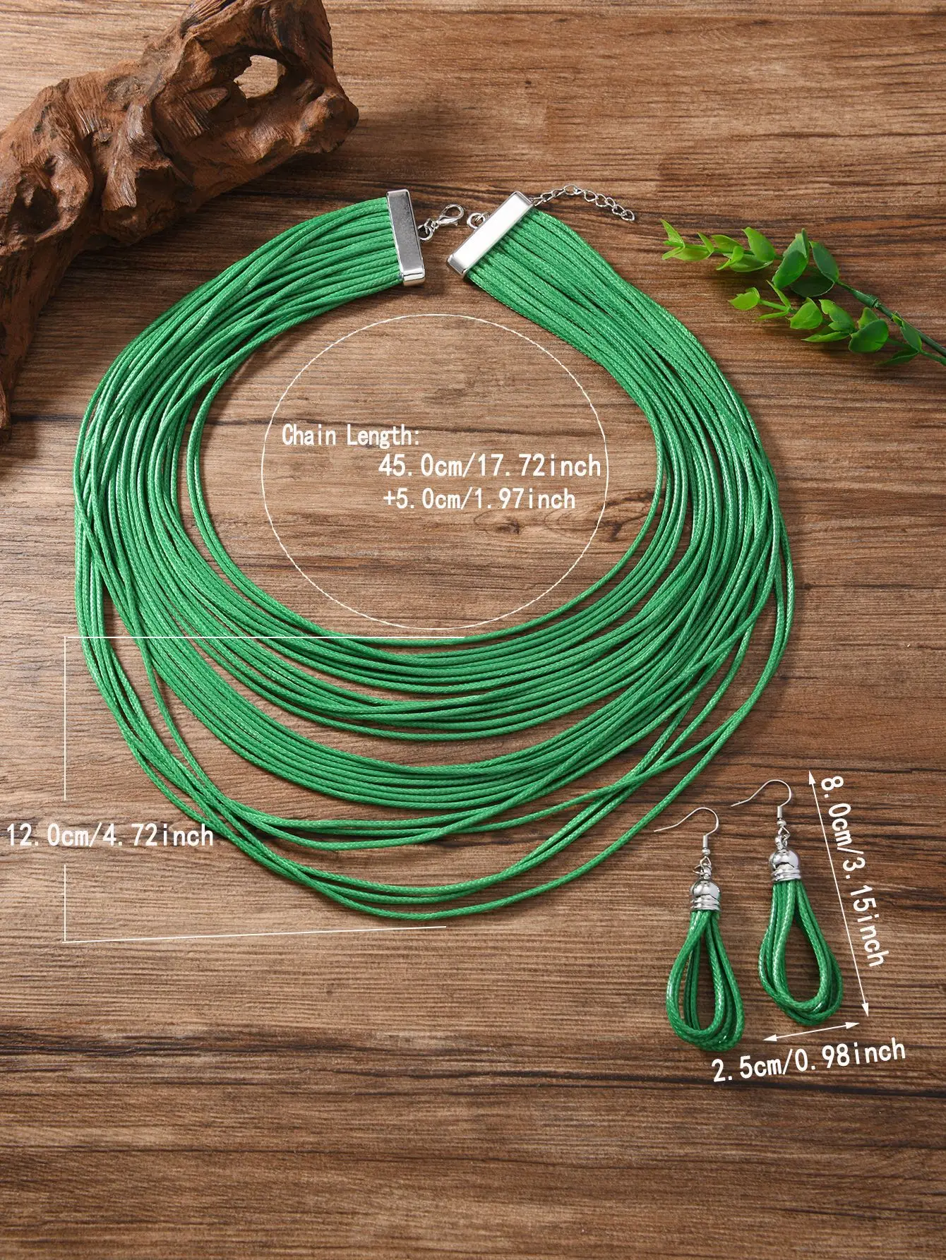 Jewelry Sets for Women, Multi-layer Wax Thread Hand-woven Necklace, Fashion and Personality Choker + Dangle Earrings