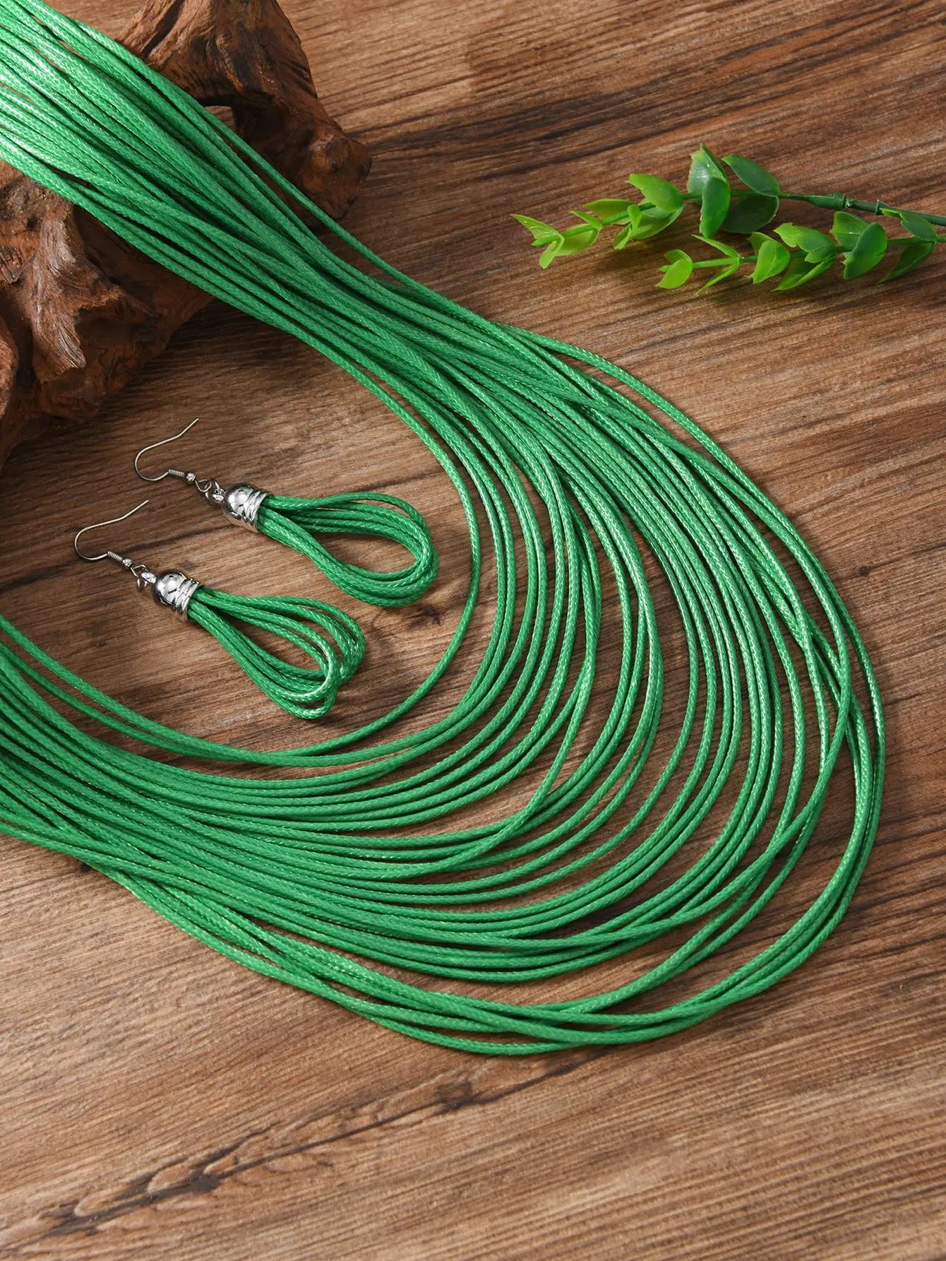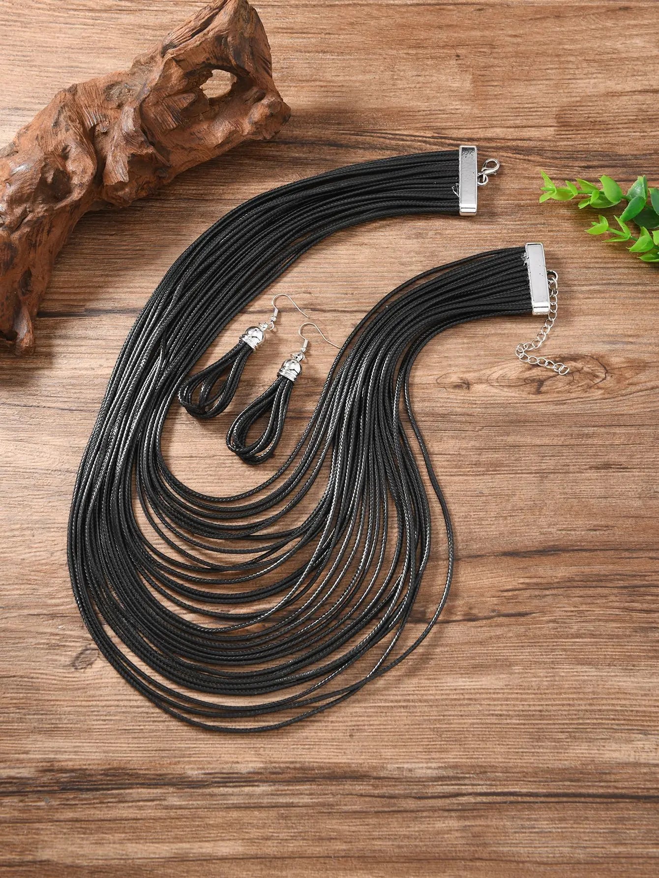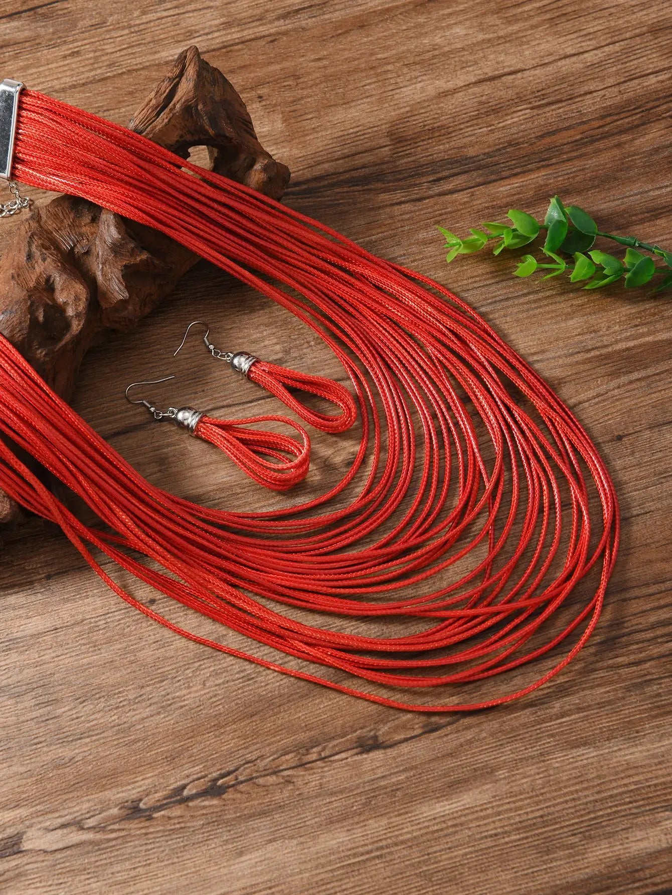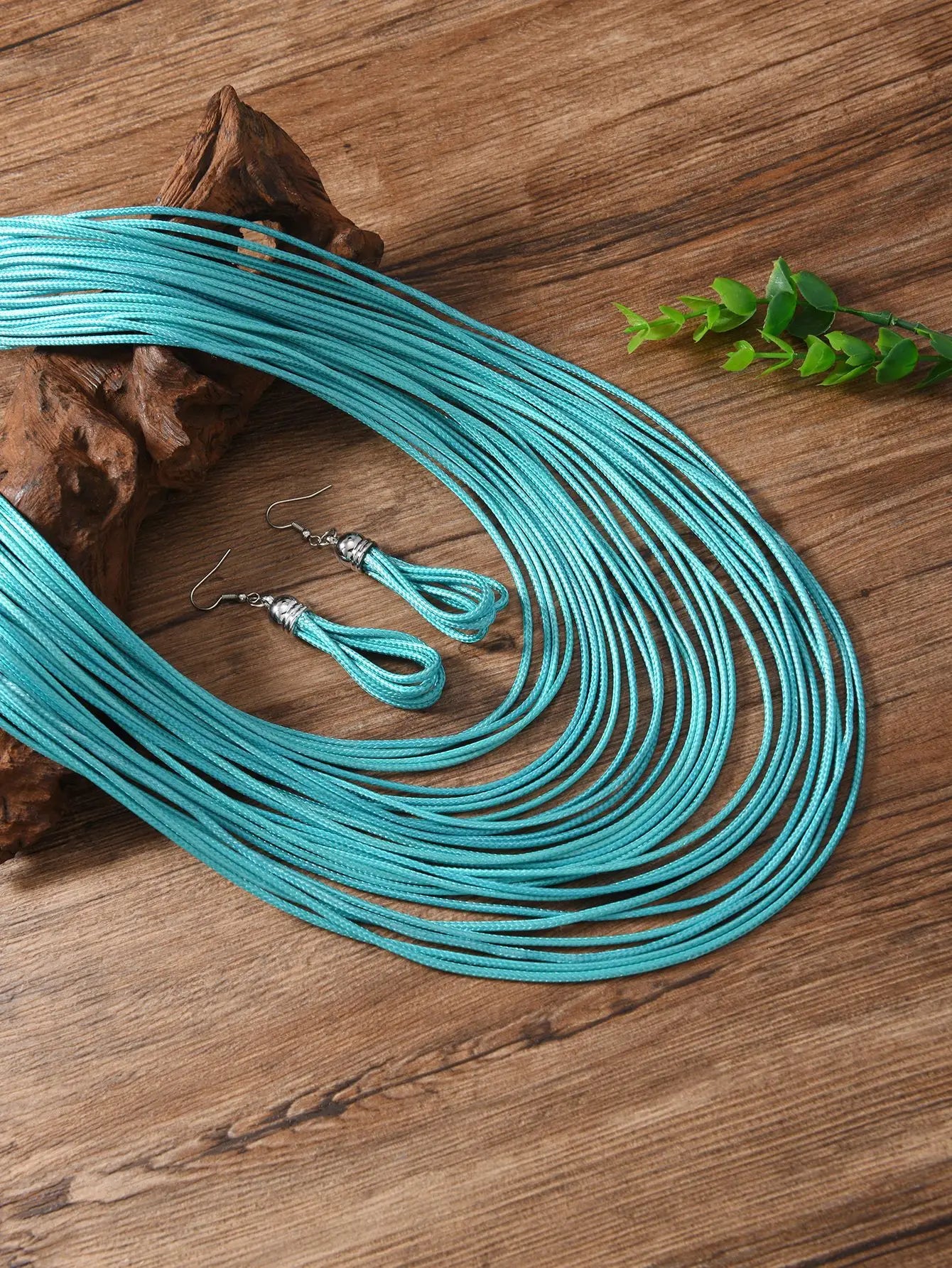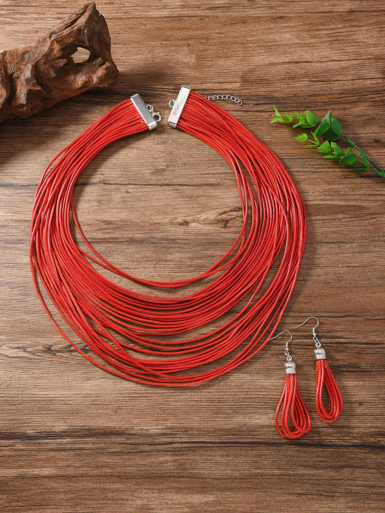 Jewelry Sets for Women, Multi-layer Wax Thread Hand-woven Necklace, Fashion and Personality Choker + Dangle Earrings