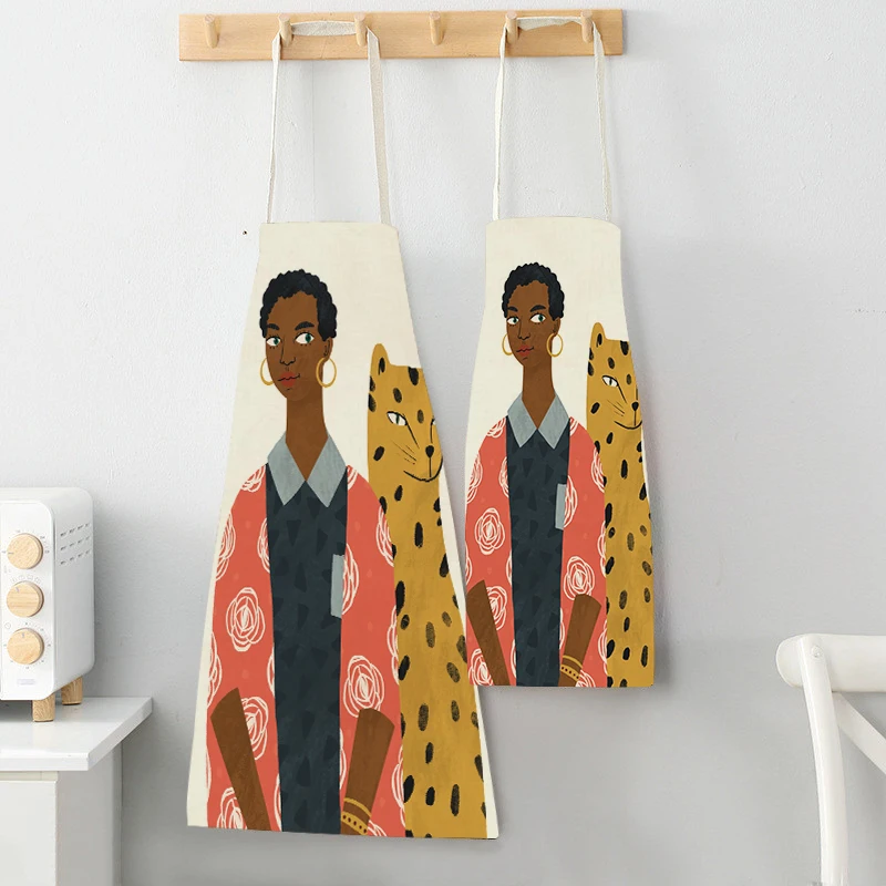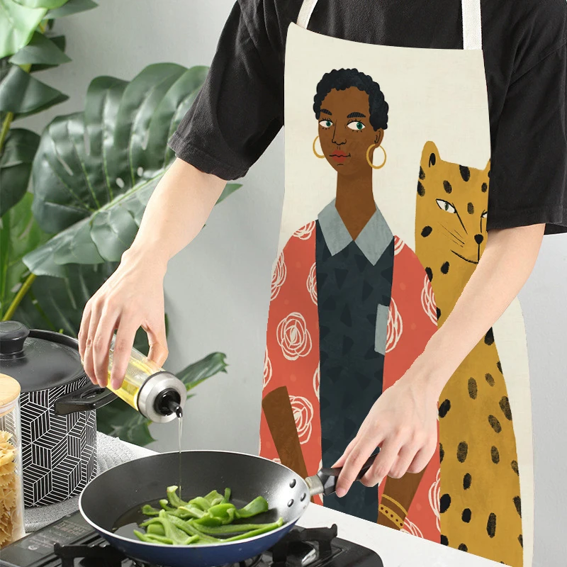 Kitchen Apron Modern Girl Plants Pattern Linen Aprons for Women Men Household Cleaning Apron Cooking Baking Accessories