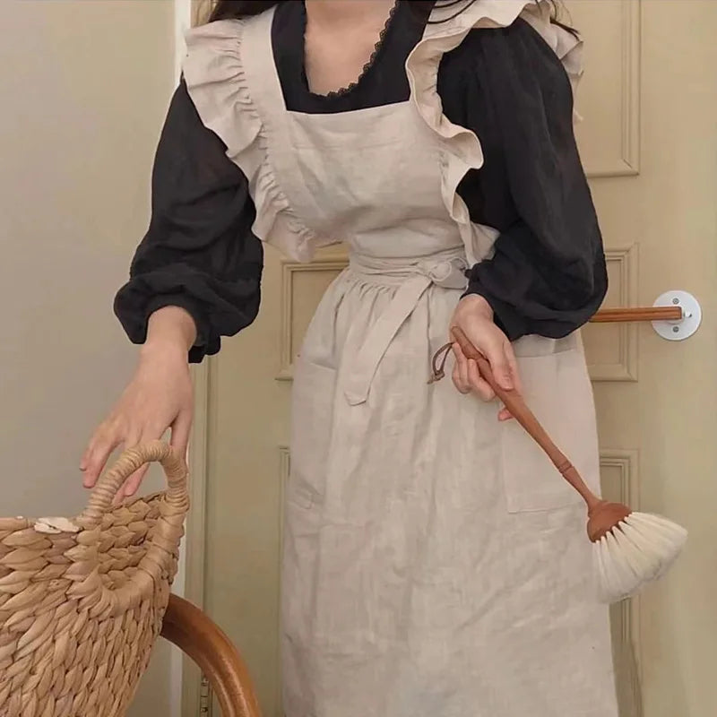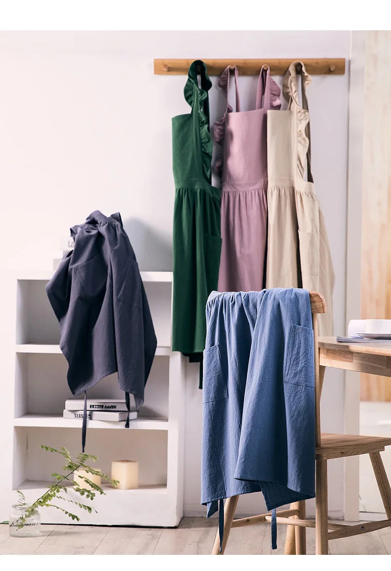 Design: Shoulder ruffled design, simple and practical, comfortable to wear, easy to clean. Comes with 2 pockets, easy to store keys, mobile phones, MP3 and other small objects.