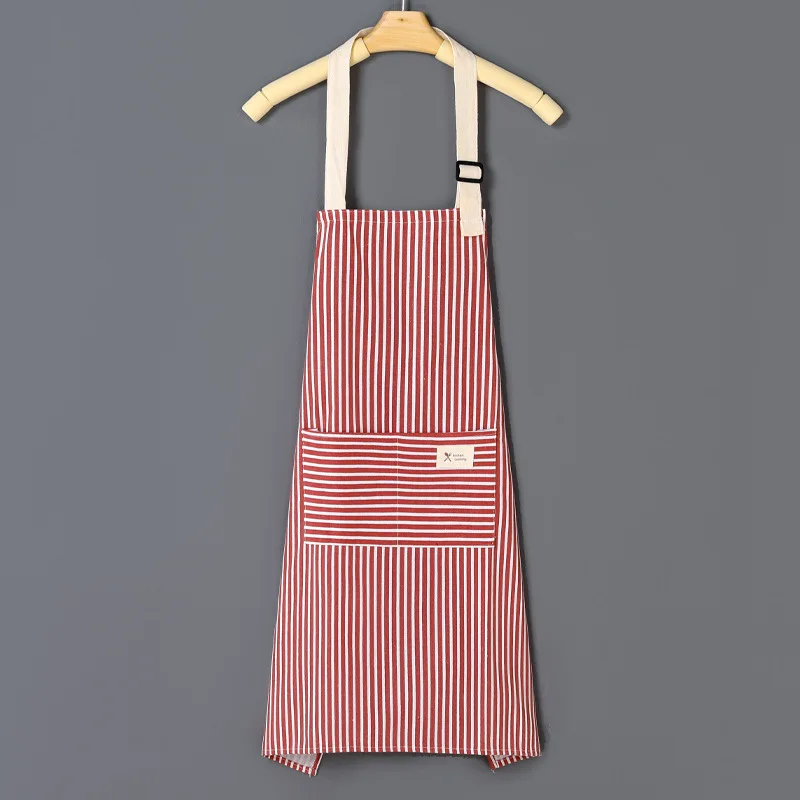Kitchen Cooking Apron Cotton Linen Stripe Printed Anti-oil Sleeveless Aprons for Men Women Cooking Baking Waist Apron