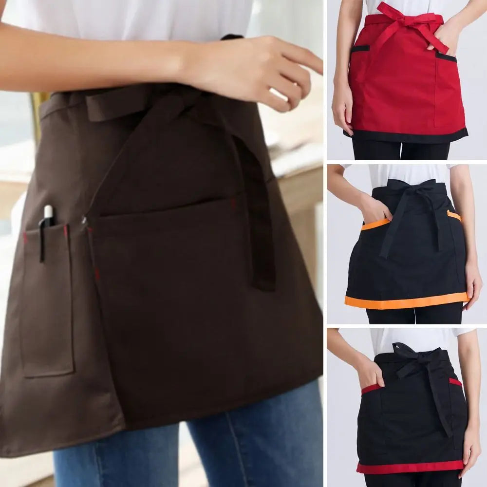 Kitchen Short Half Waist Apron Women Waitress Antifouling Work Bar Pub Cafe Cooking Men Short Waist Aprons