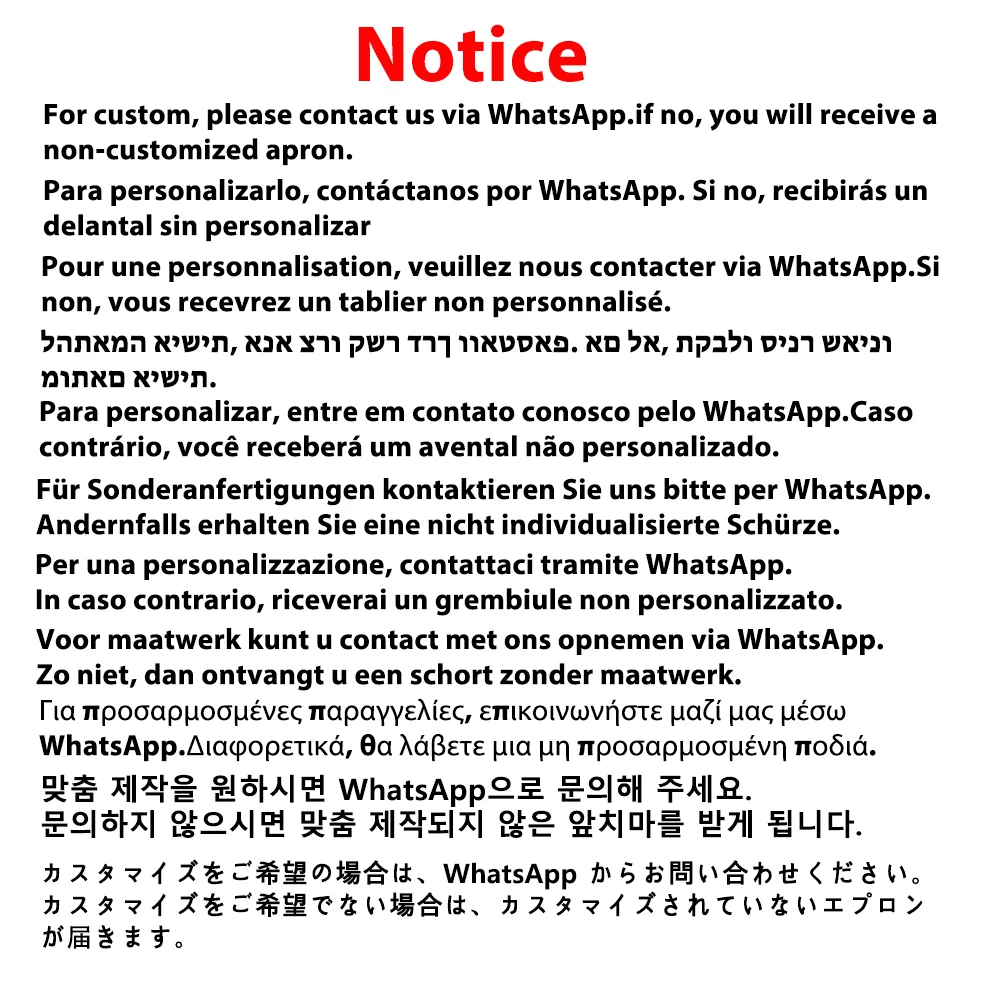 If you need special apron, please contact us by WhatsApp +86 176 8192 8678