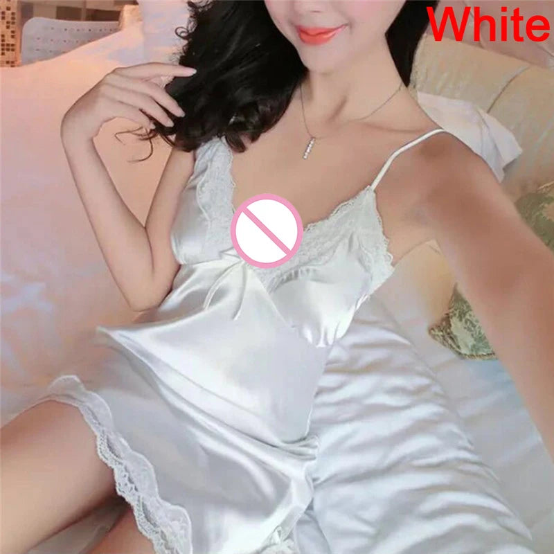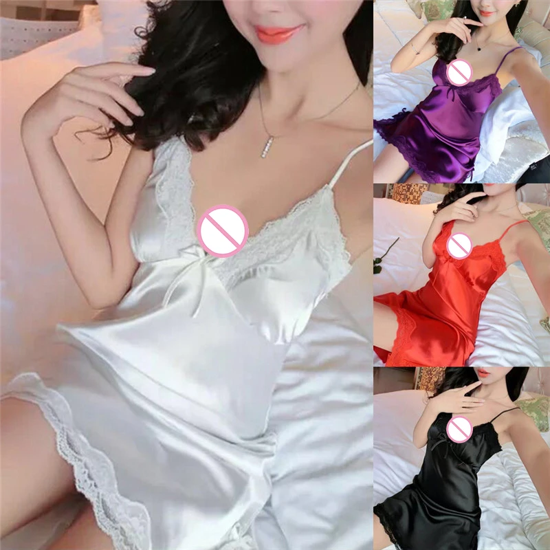 Ladies Sexy Silk Satin Night Dress Sleeveless Nighties V-neck Nightgown Nightdress Lace Sleepwear Nightwear For Women