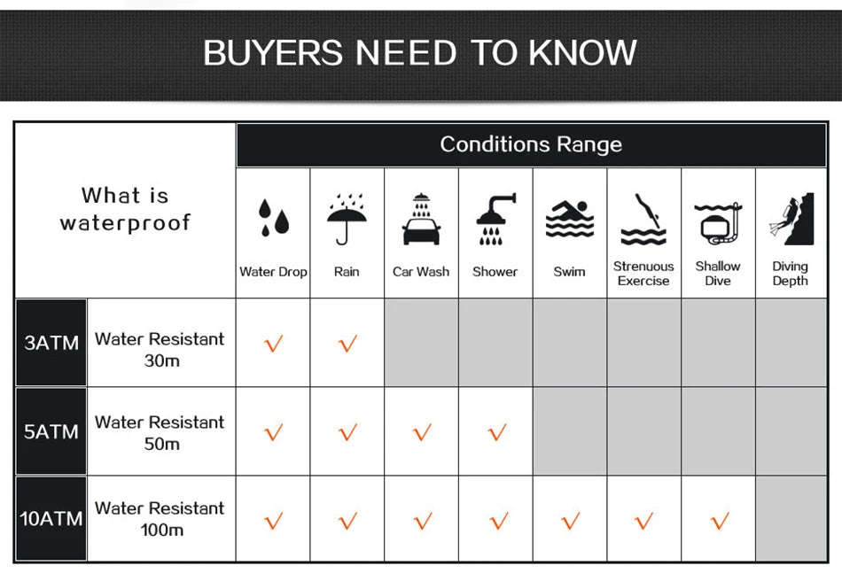 • 50m Waterproof :Can withstand water splashes and rain, making it suitable for outdoor activities.