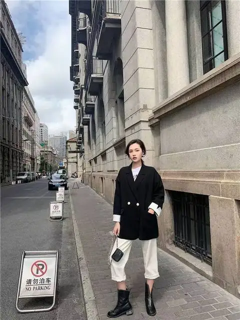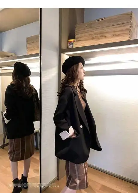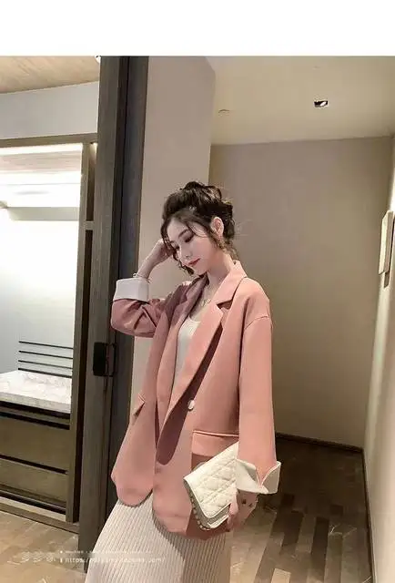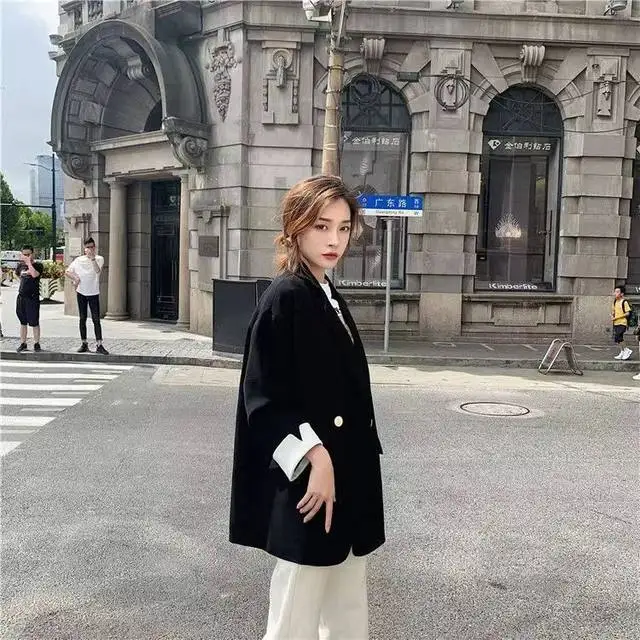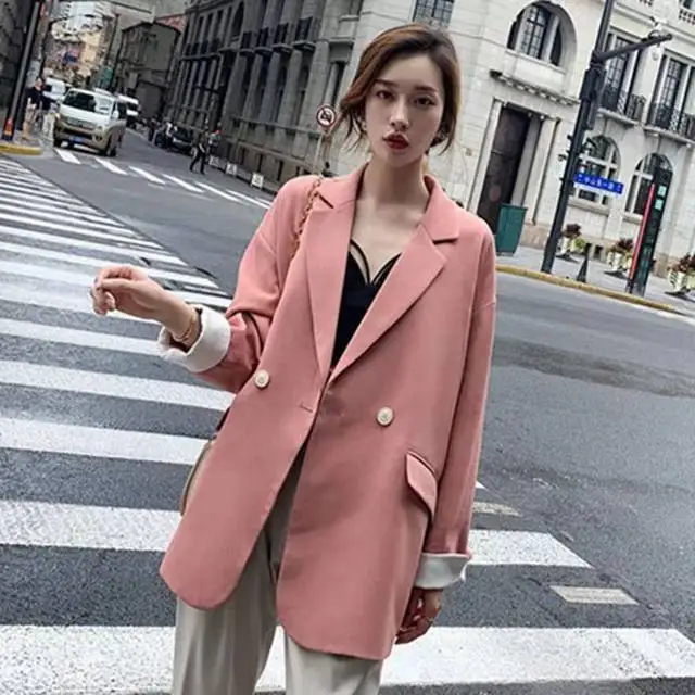 Long Blazers Woman Spring Casual Office Lady Lapel Double-breasted Slim-fit Elegant Solid Color Fashion Outerwear Minimalist