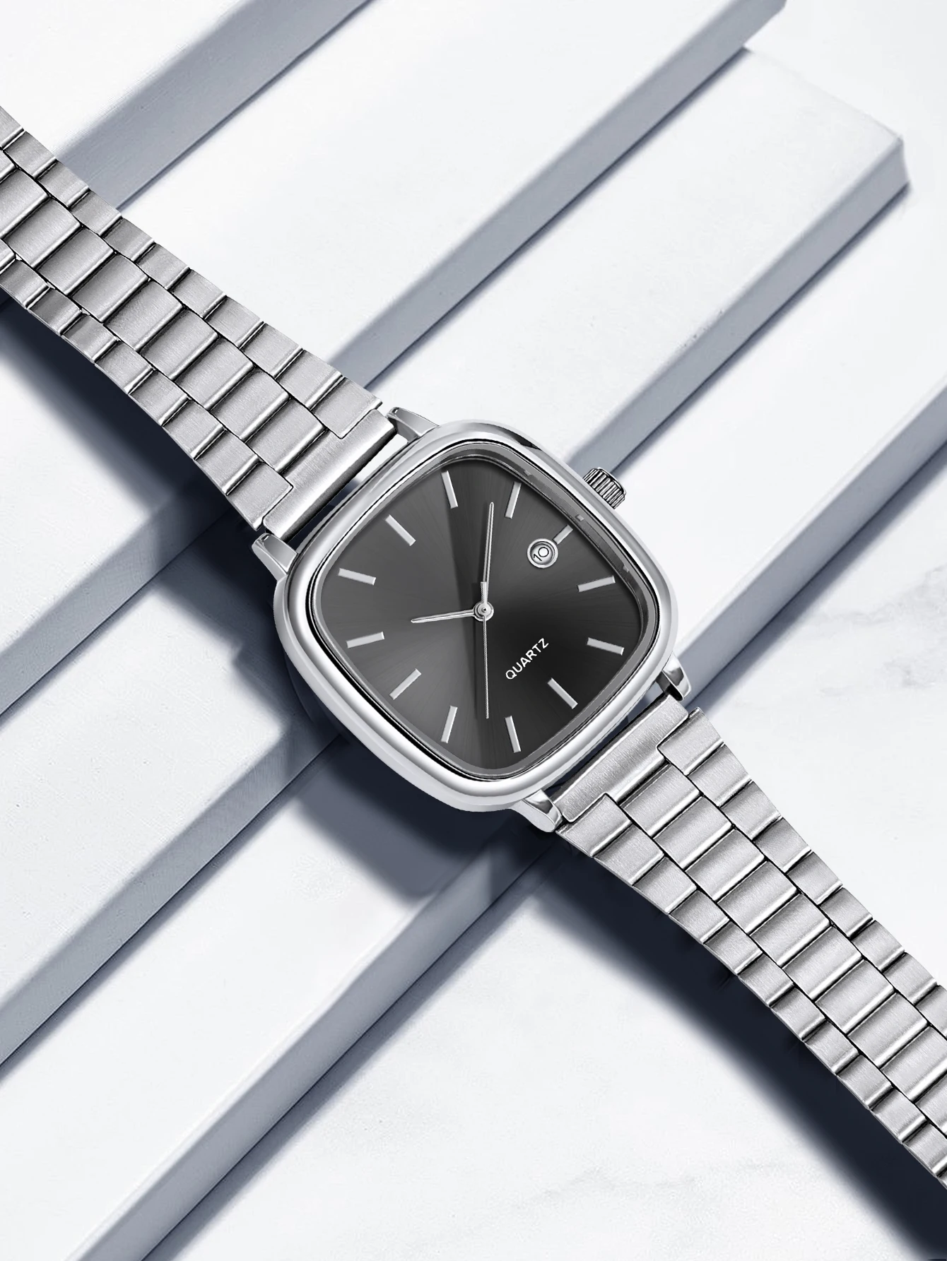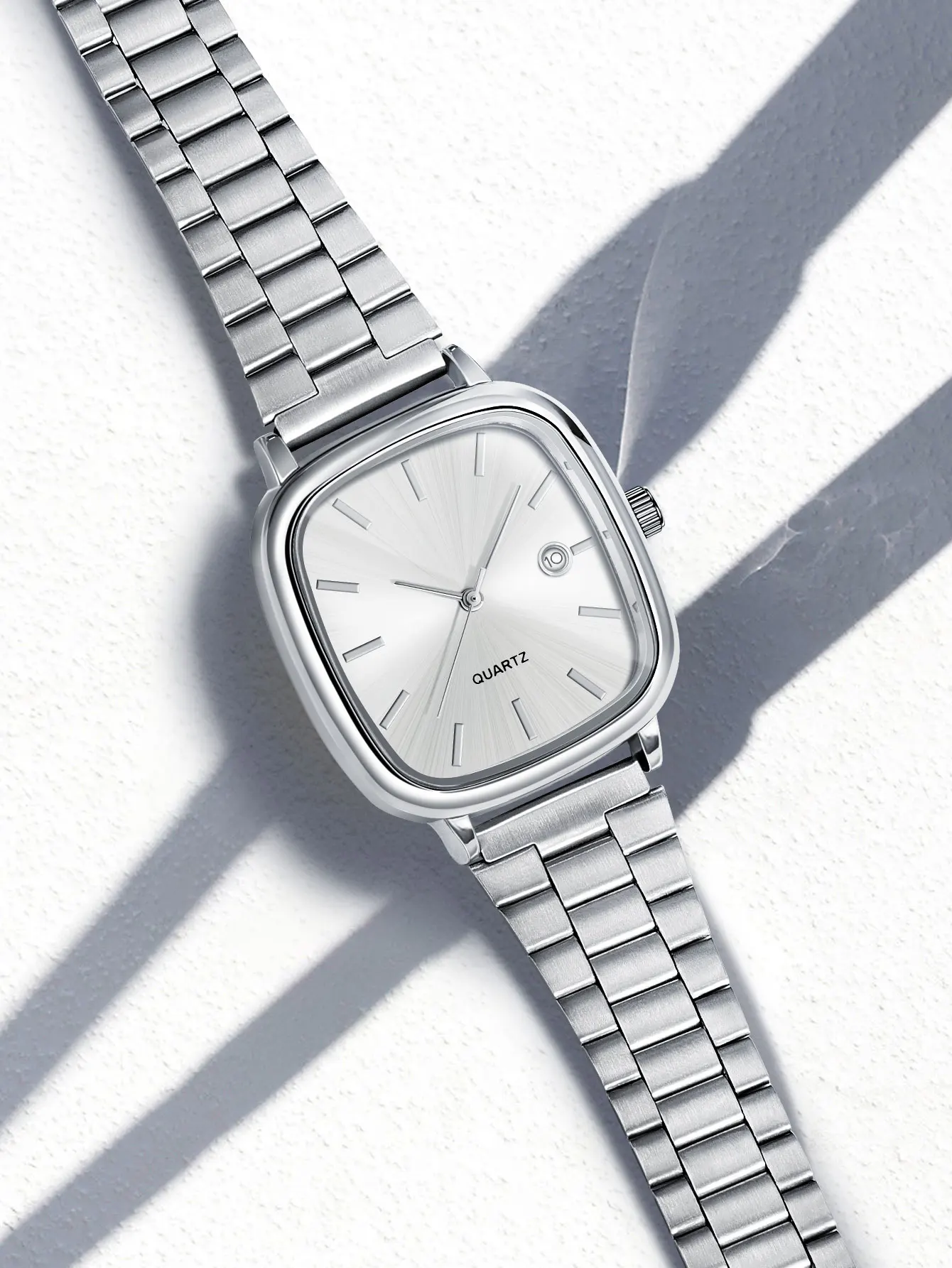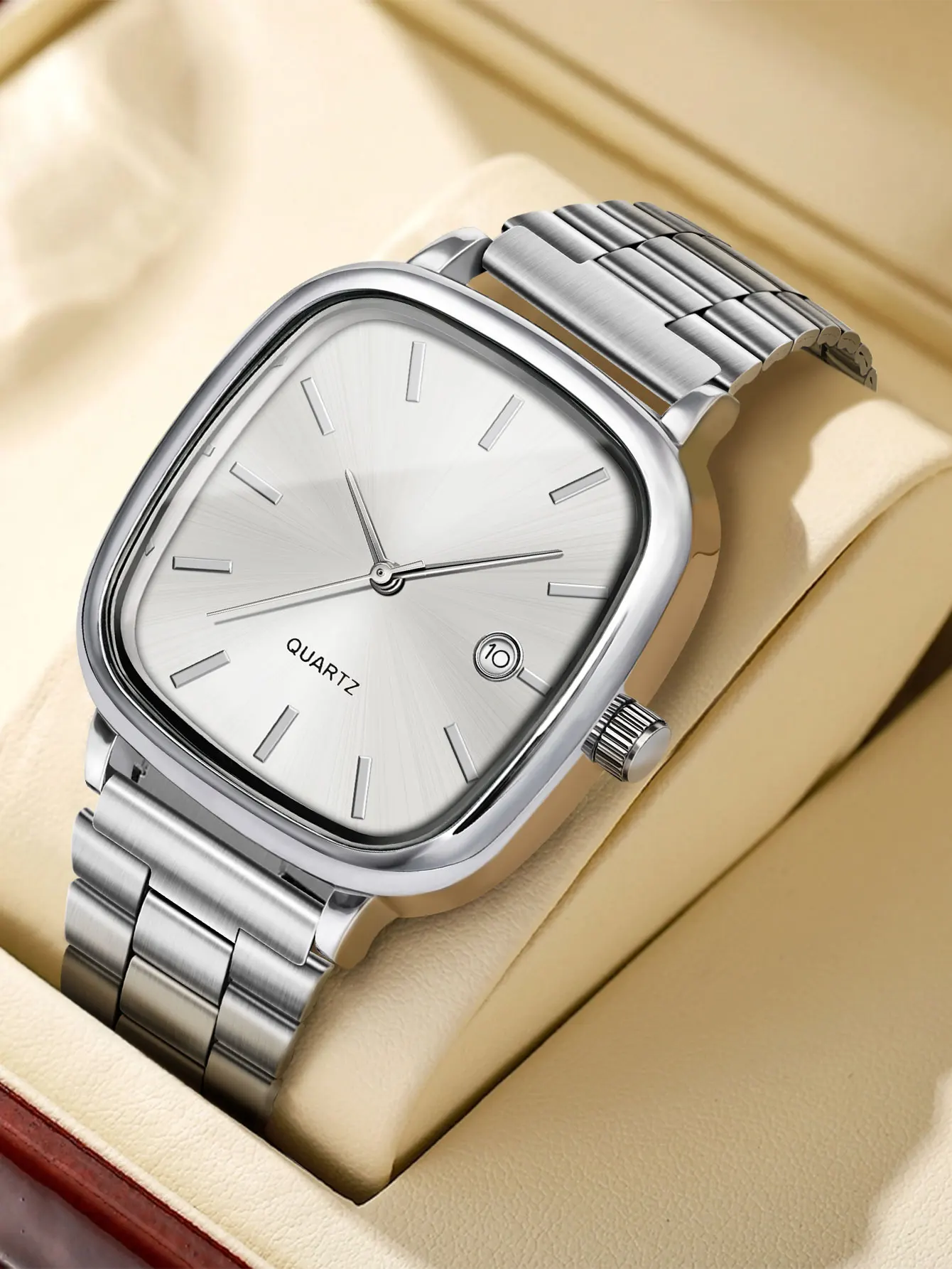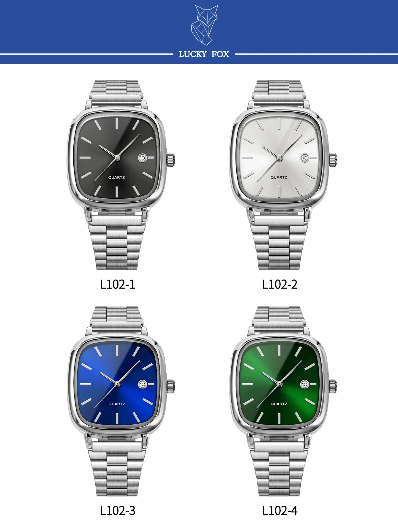 LUCKY FOX Modern minimalist square watch Business mens metal watch stainless steel chain multi-scene commuter watch