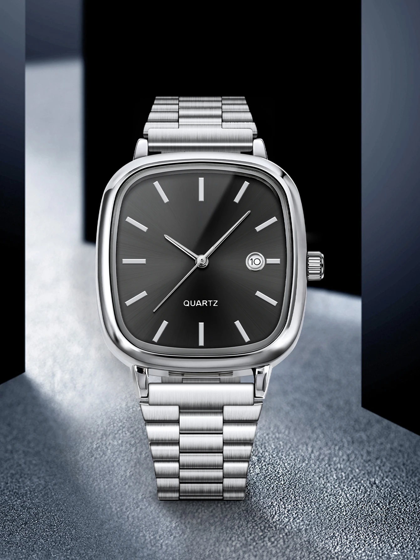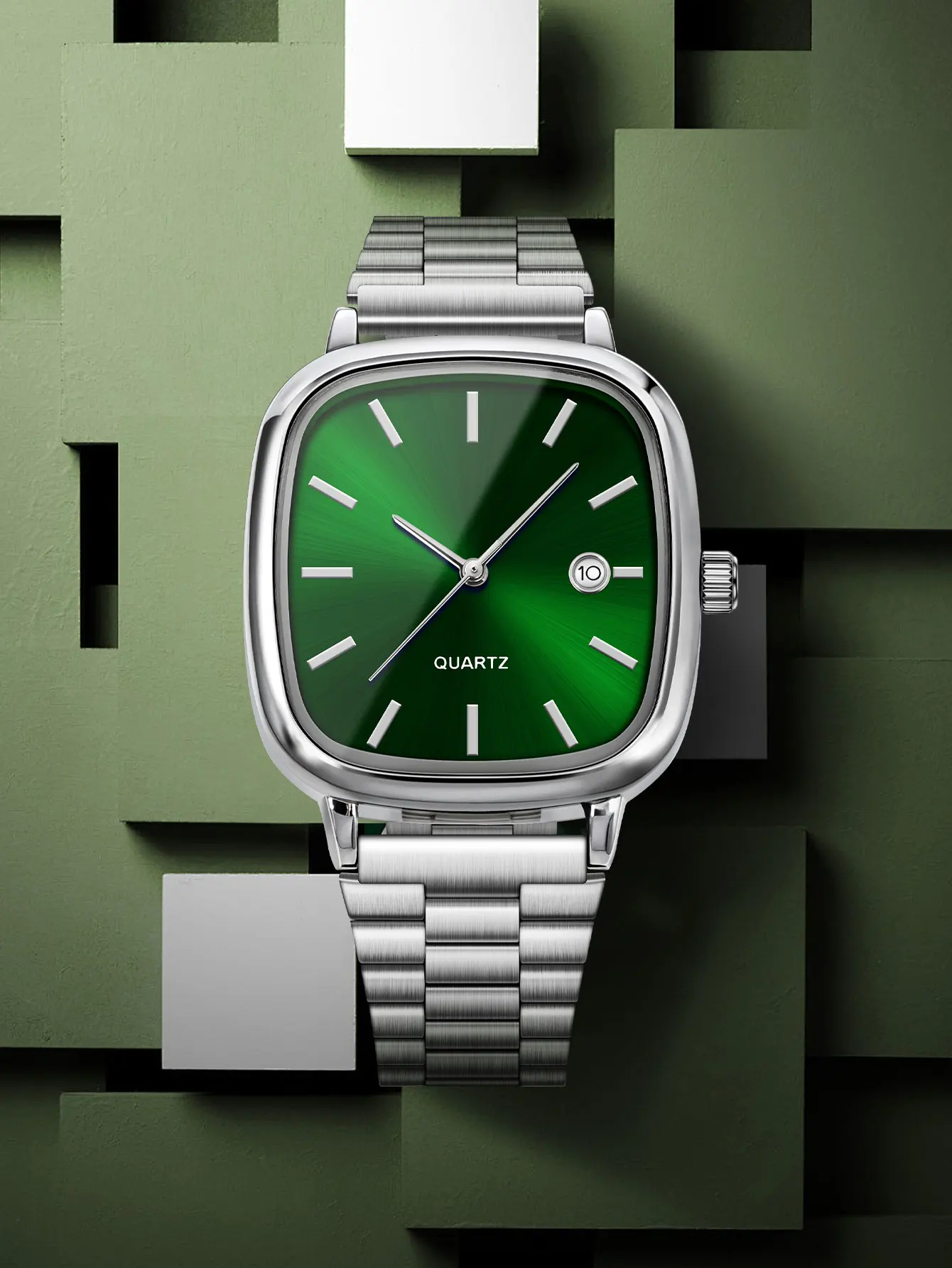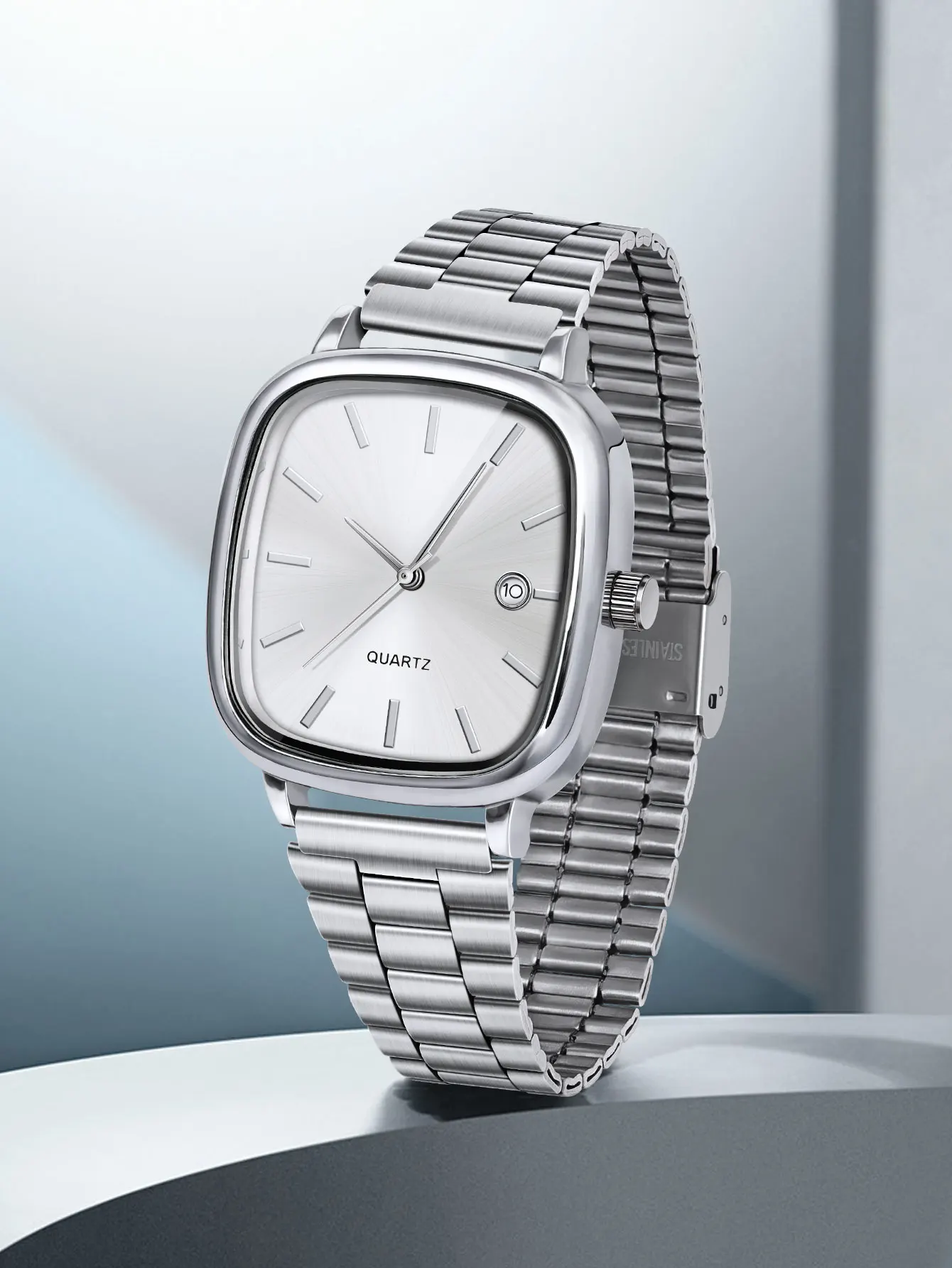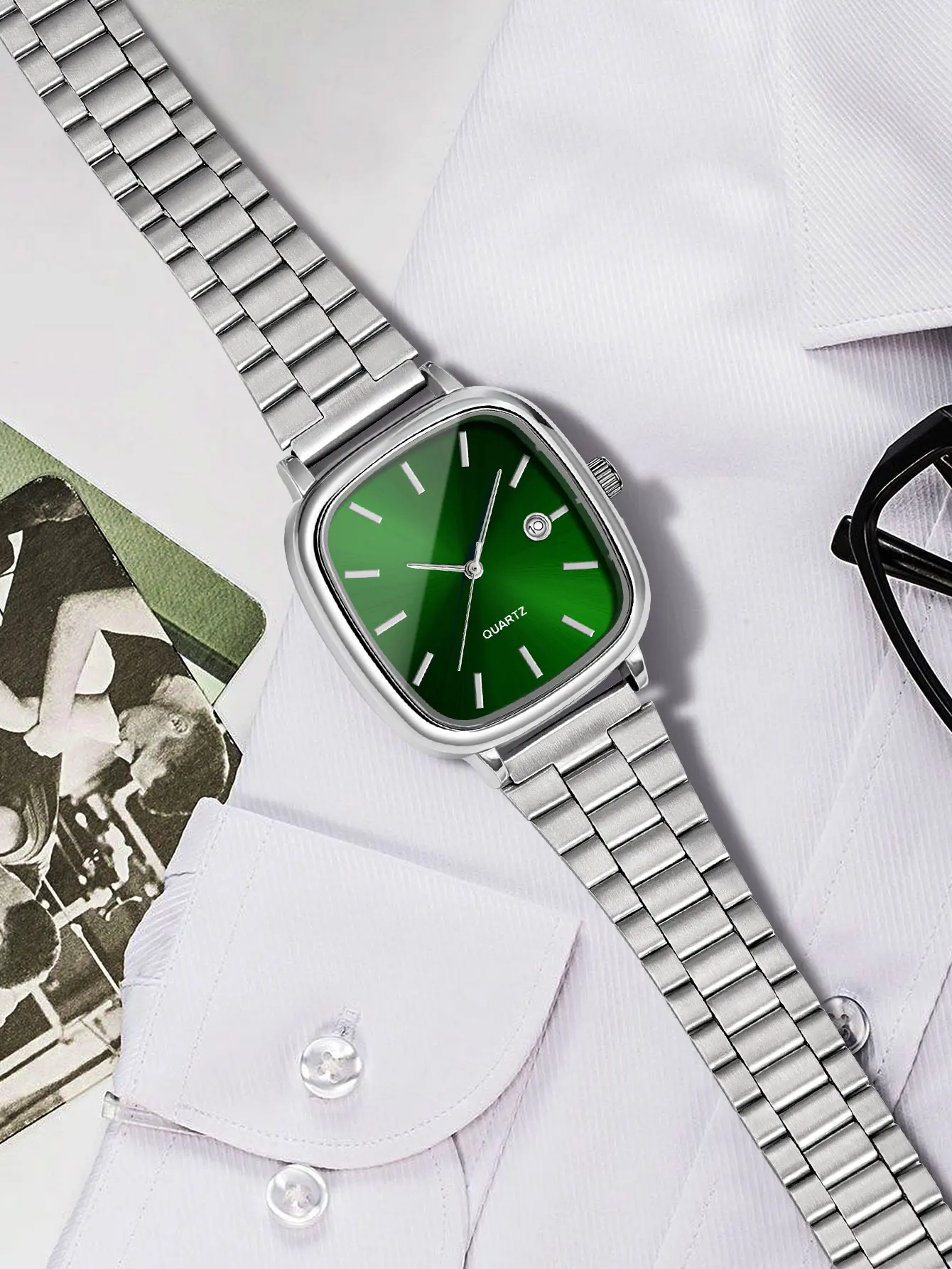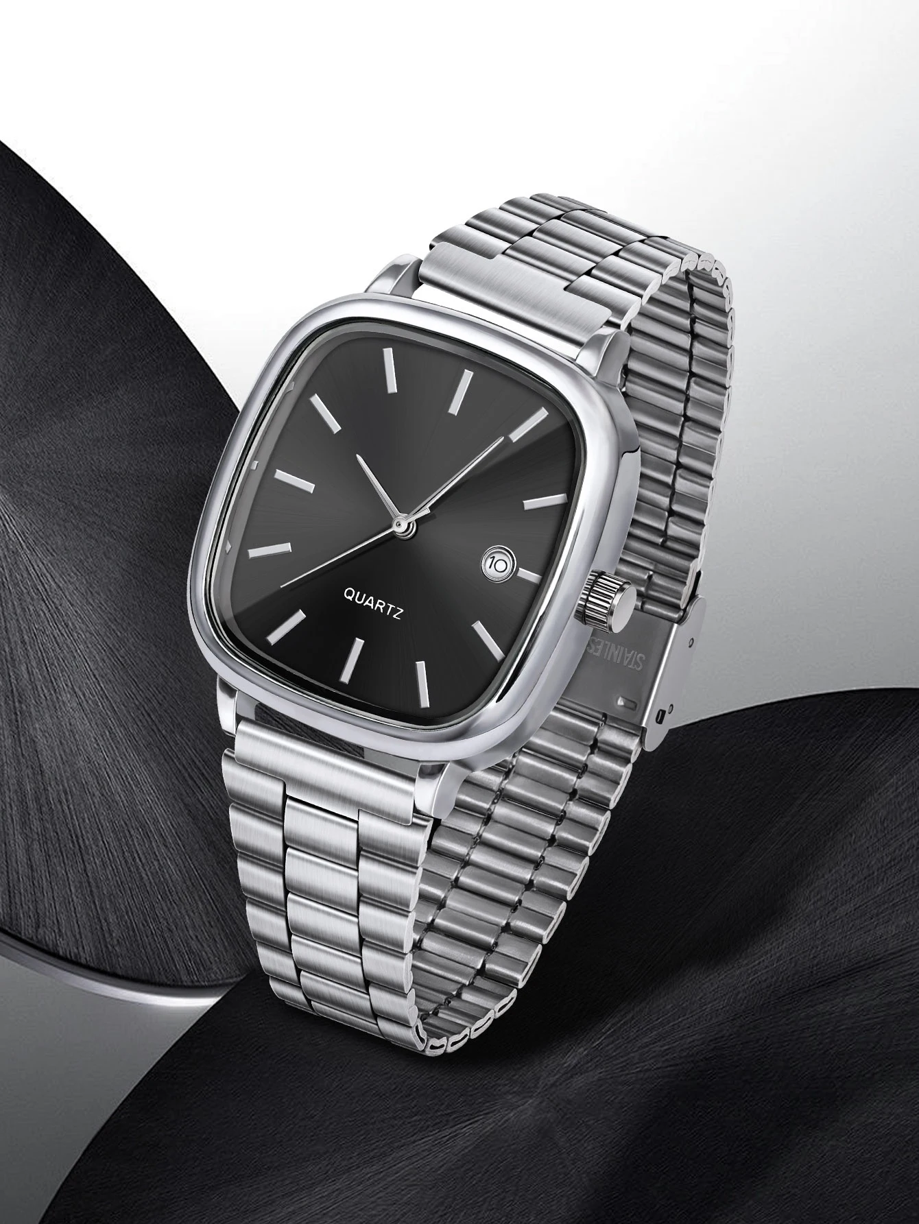 LUCKY FOX Modern minimalist square watch Business mens metal watch stainless steel chain multi-scene commuter watch