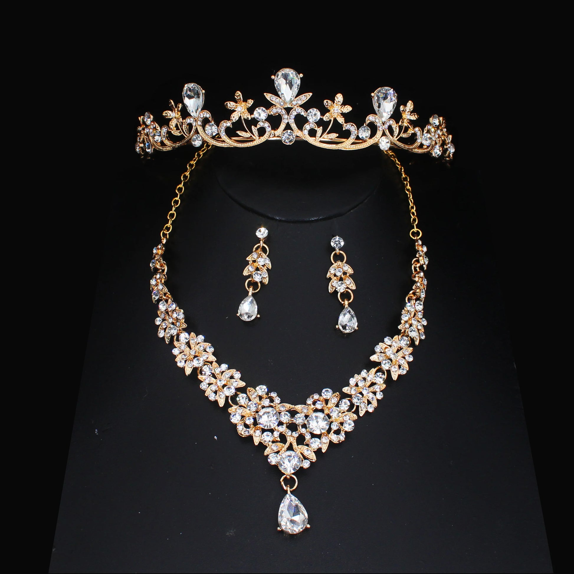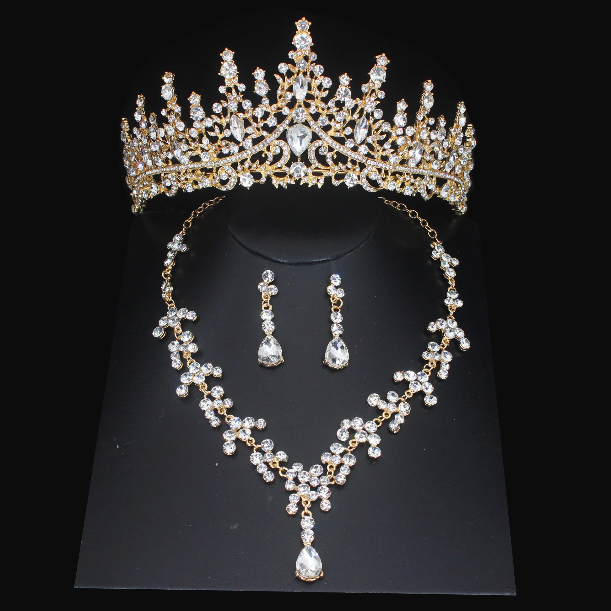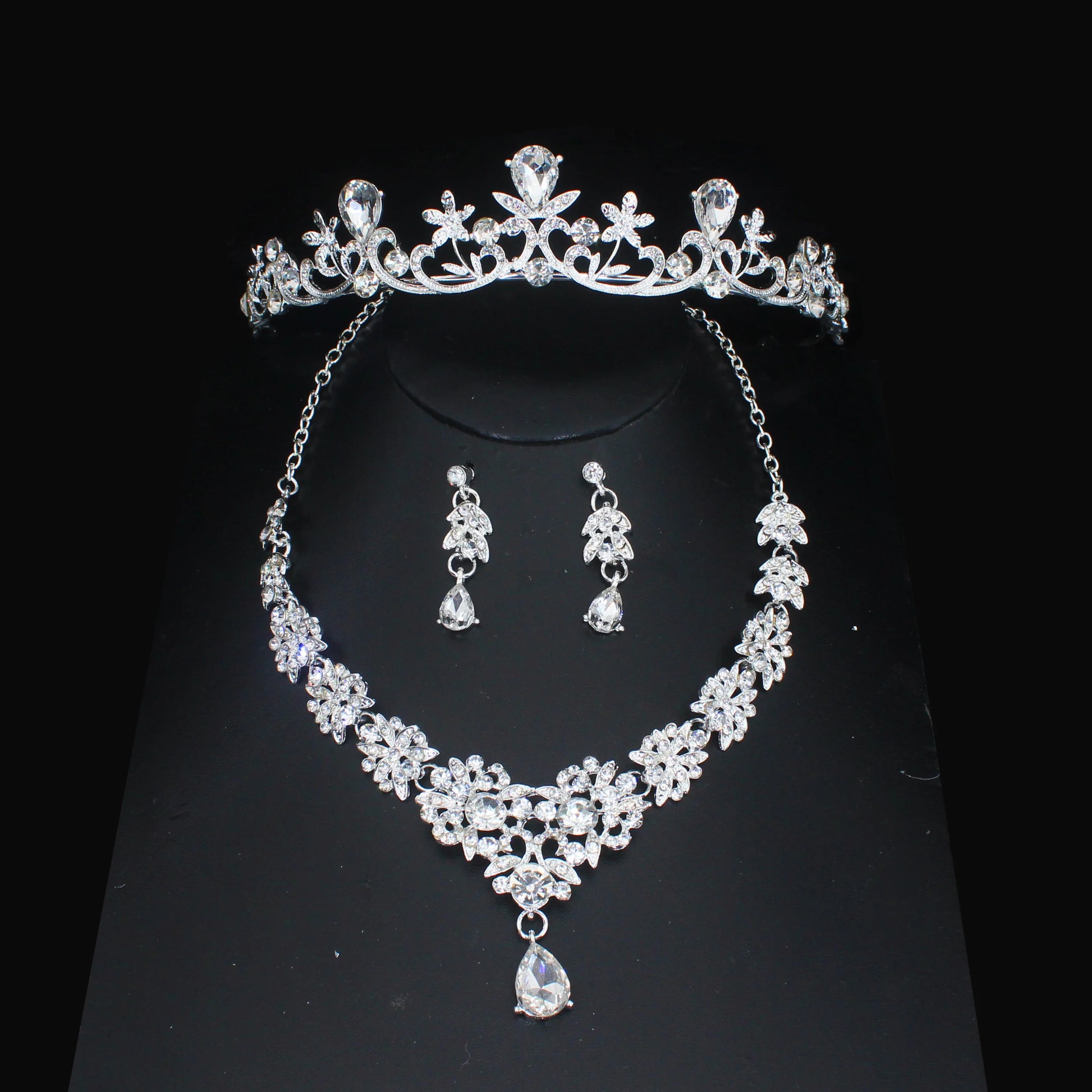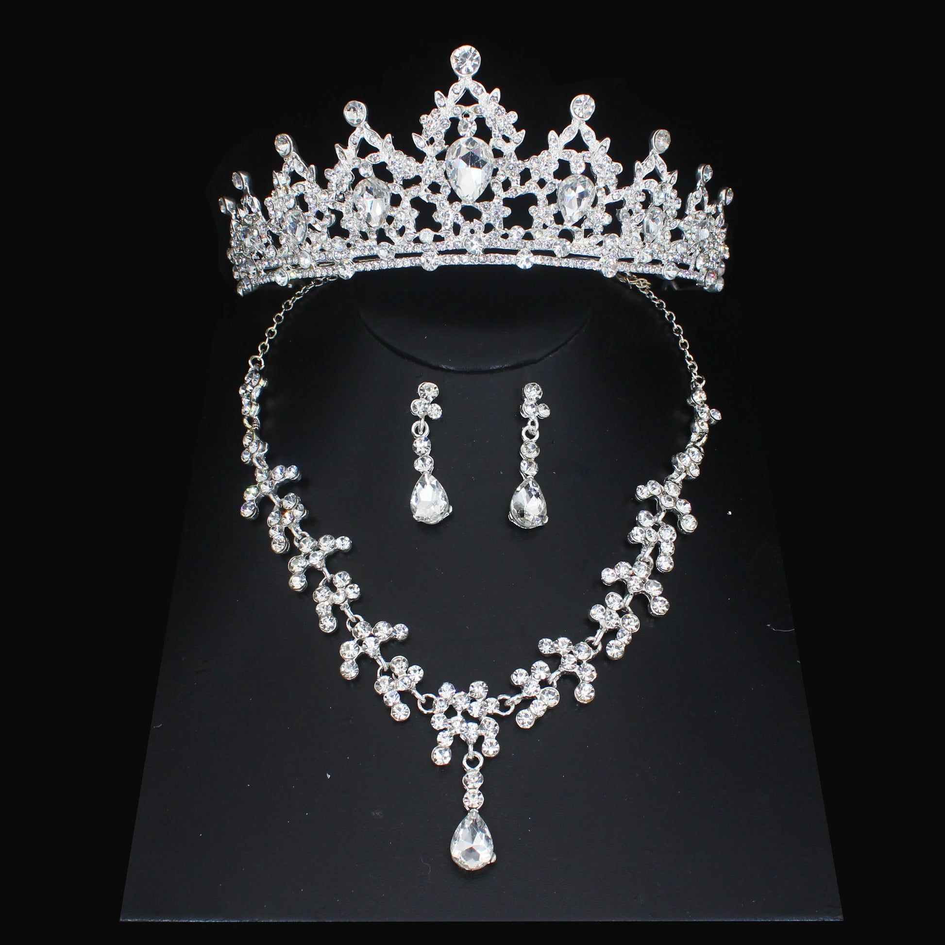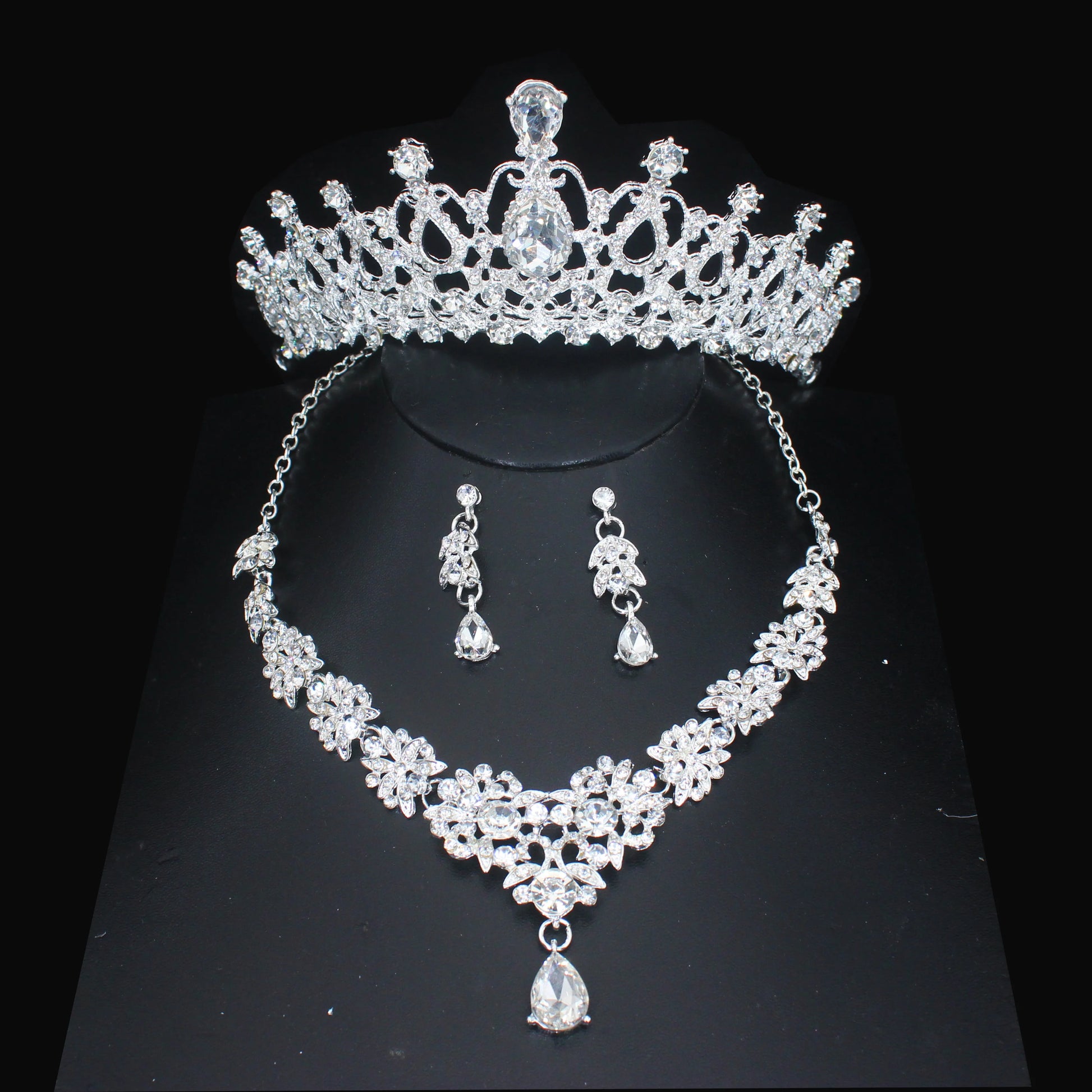 High Quality Fashion Crystal Wedding Bridal Jewelry Sets Women Bride Tiara Crowns Earring Necklace Wedding Jewelry Accessories