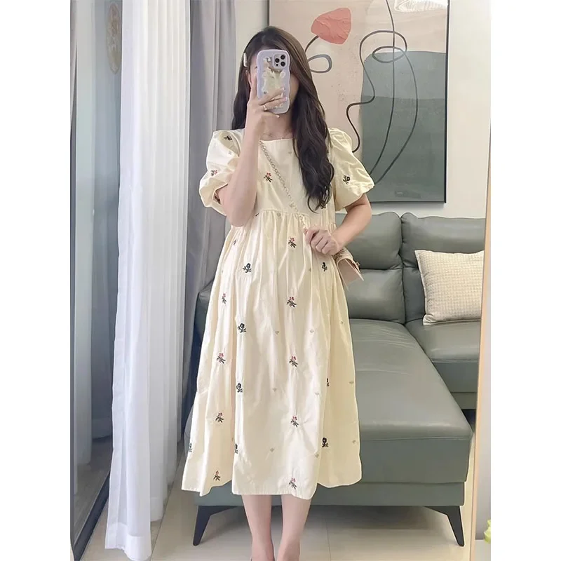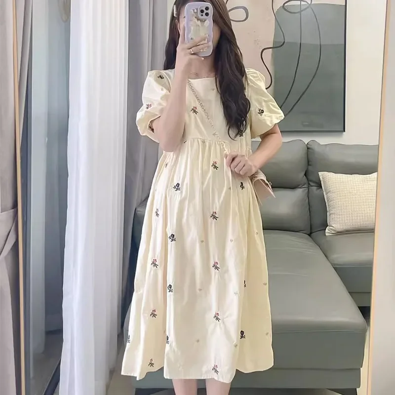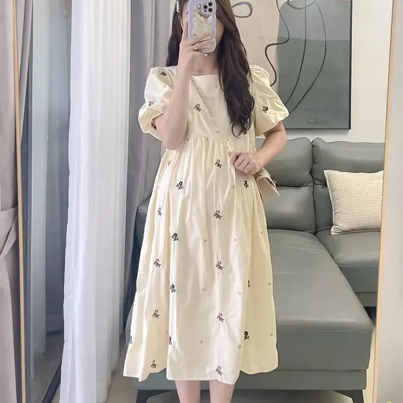Maternity Chiffon Floral Dress Summer Sweet Ruffled Collar Fashion Printing Pregnant Women Dress Elegant Clothes