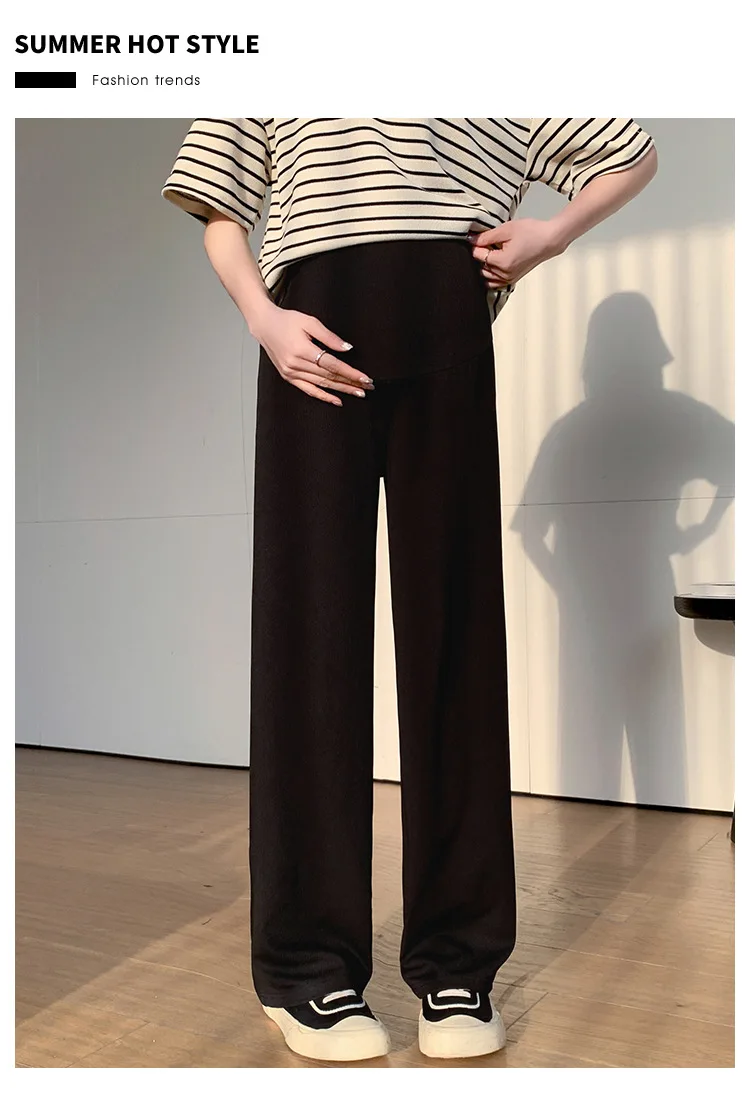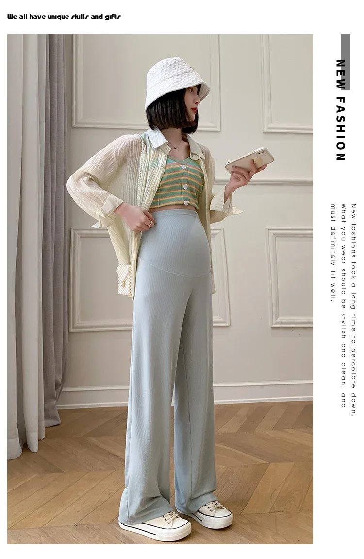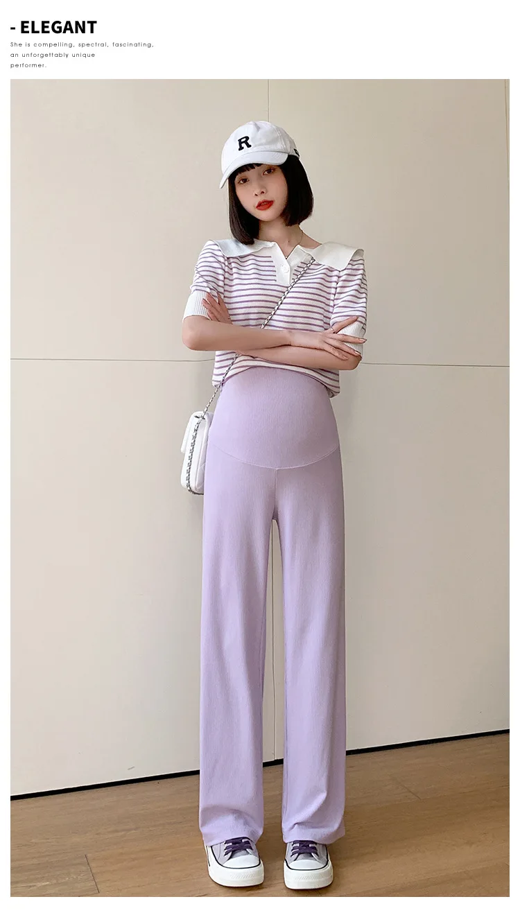Maternity Clothings Maternity Wide Leg Pregnancy Pants Wear Trousers with Vertical Stripes Clothes for Pregnant Women