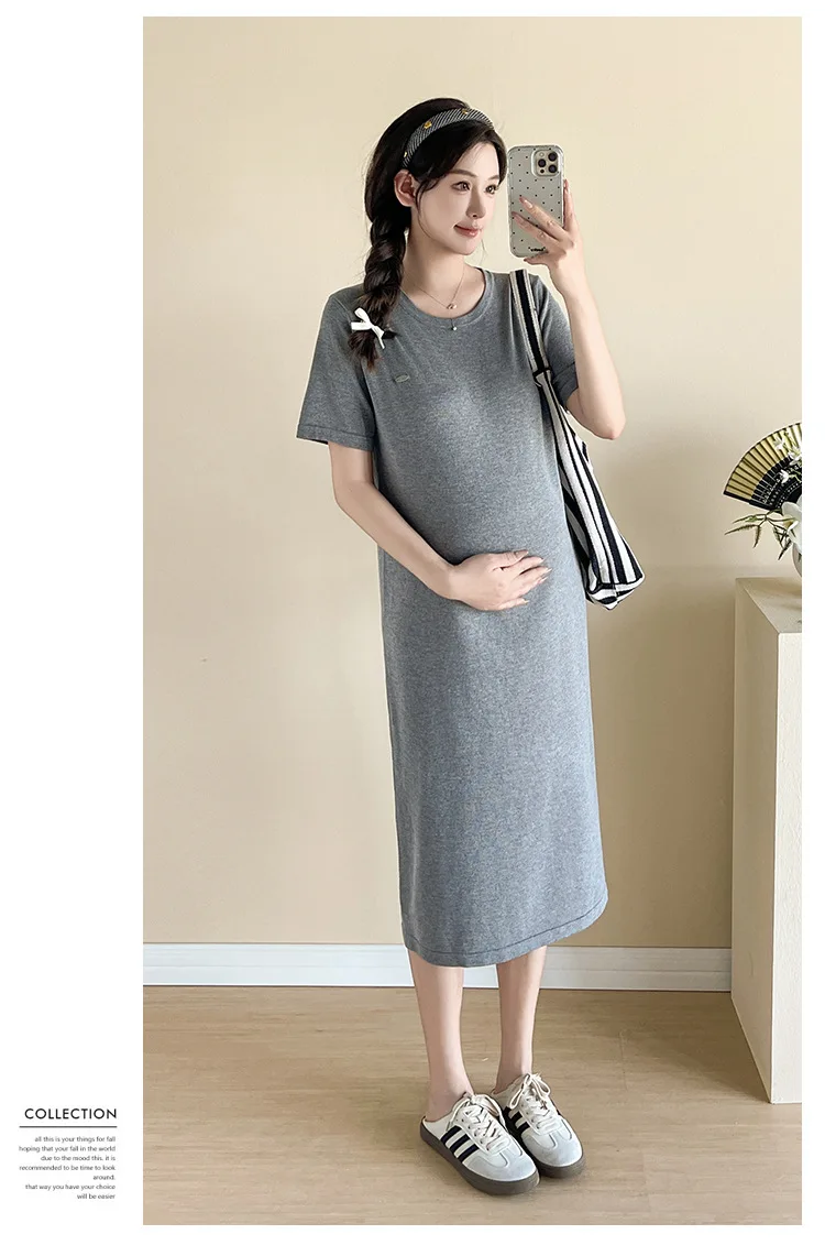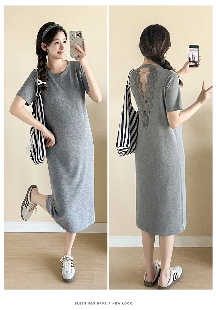 Maternity Dress: Back-Cutout Knit &Lace Maxi - Sophisticated Pregnancy Gown with Designer Details for Fashionable Expecting Moms