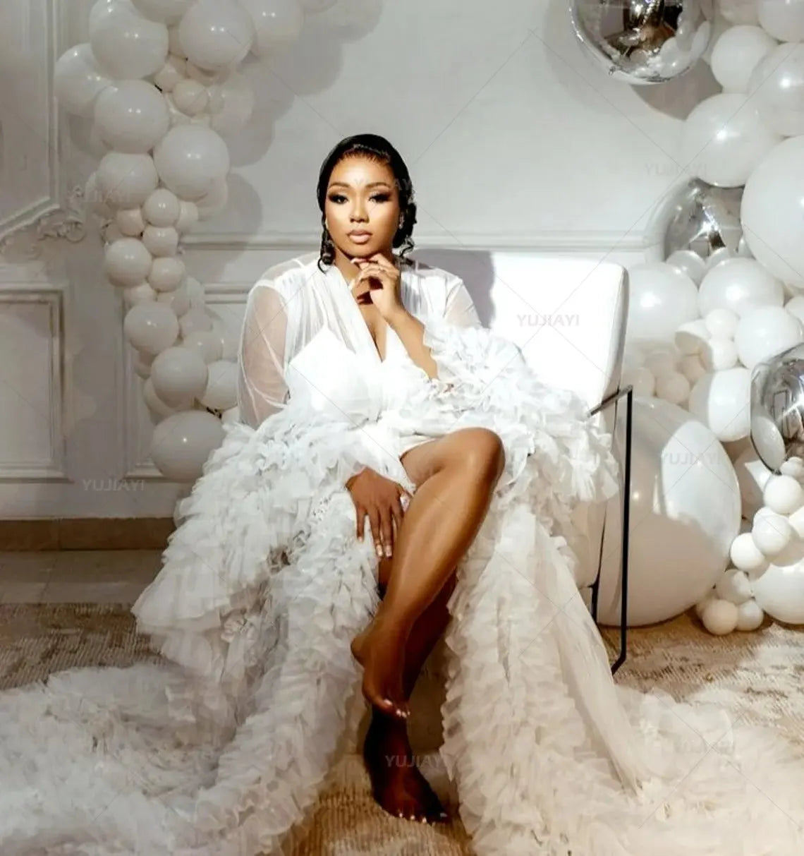 Maternity Gown for Baby Shower Dressing Gown Perspective Sheer Skirt Long Tulle Bridal Robe Puffy Sleepwear for Women Nightwear