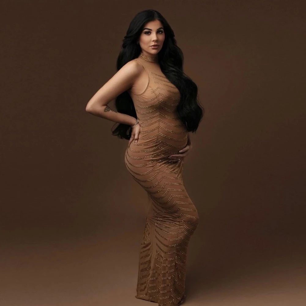 Maternity Gown For Party Sexy Shiny Goddess Bodysuit Hot Rhinestone For Photo Shoot Props Plus Size Senior Pregnant