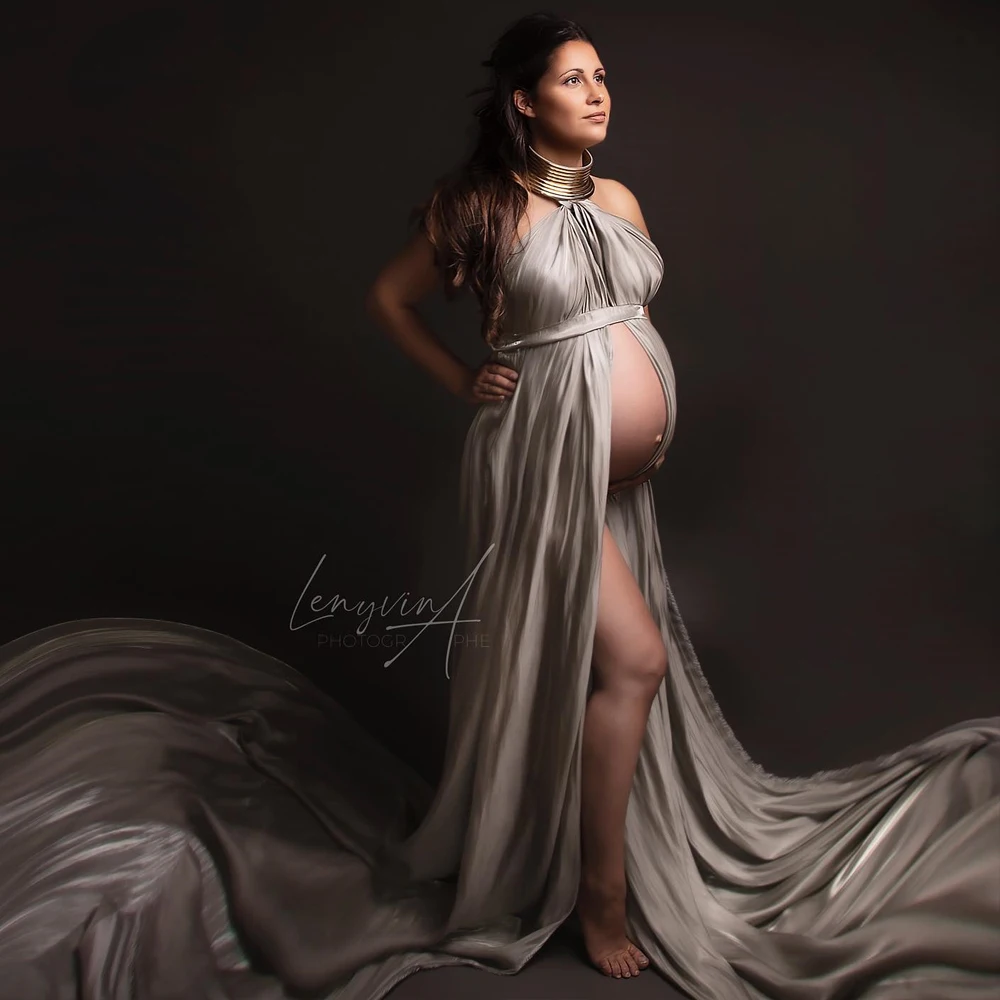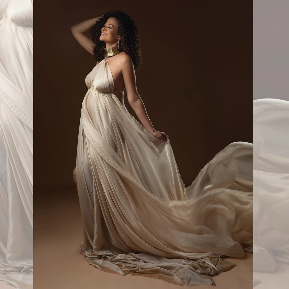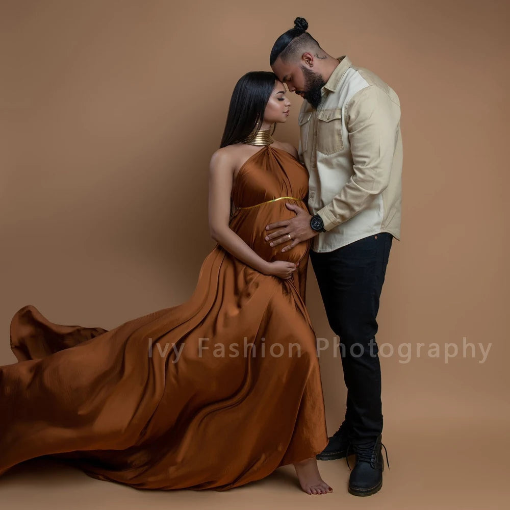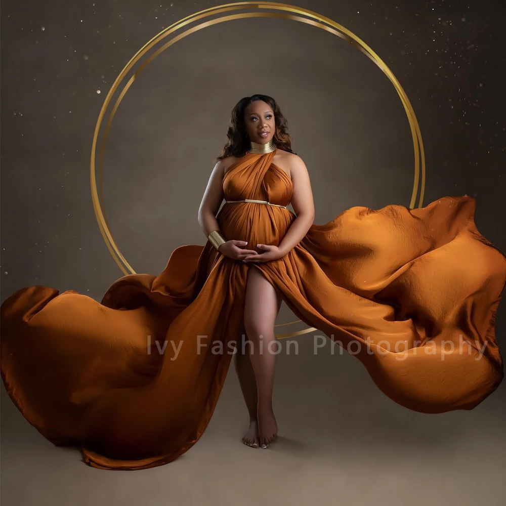 Maternity Photography Gown Sexy Elegant Long Dresses Gold Color Leather African Posing Props For Pregnant Women Photography